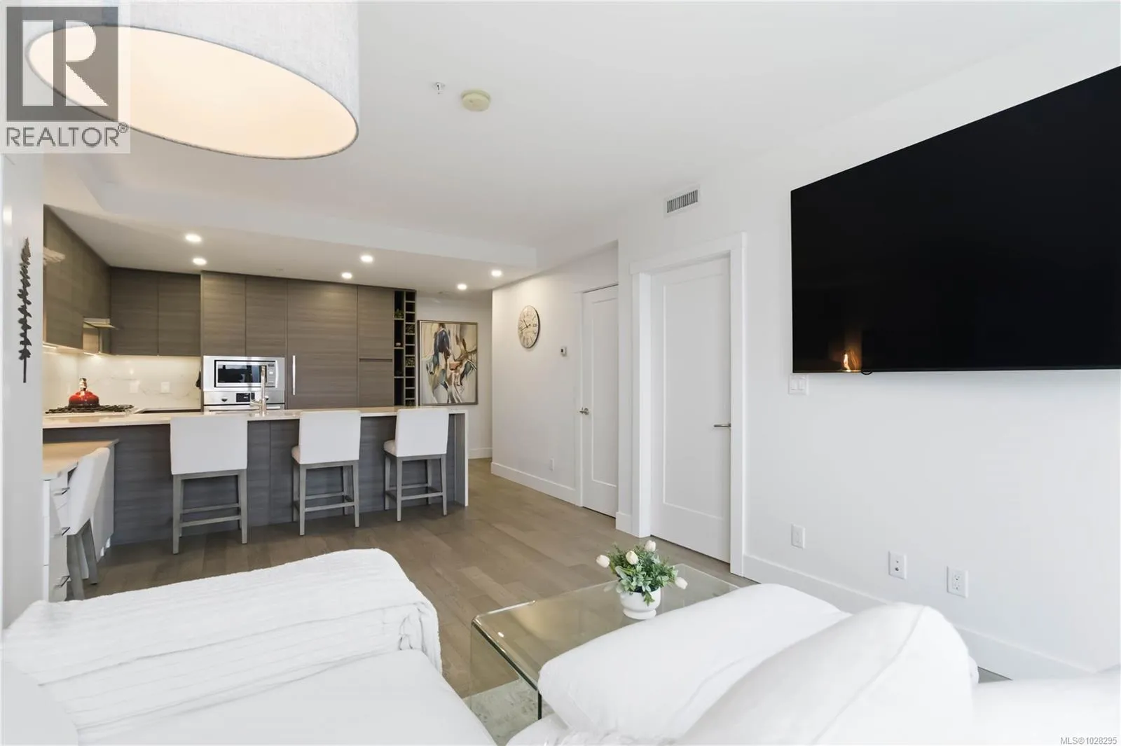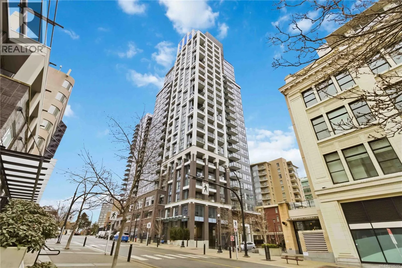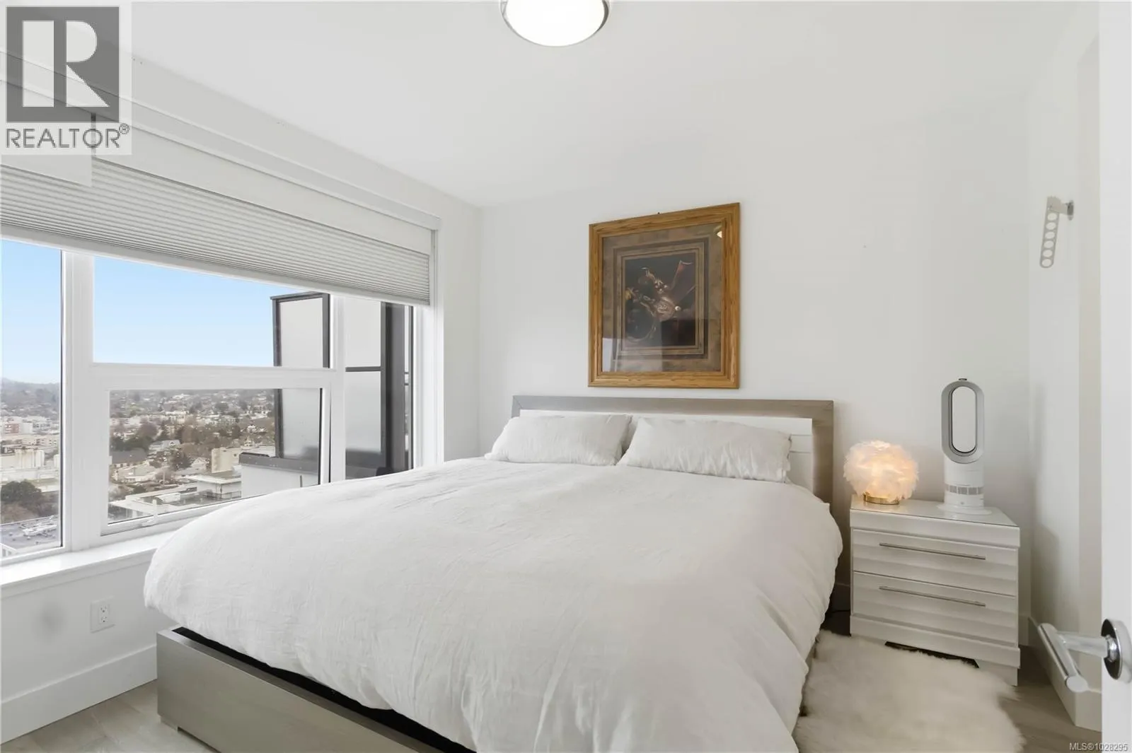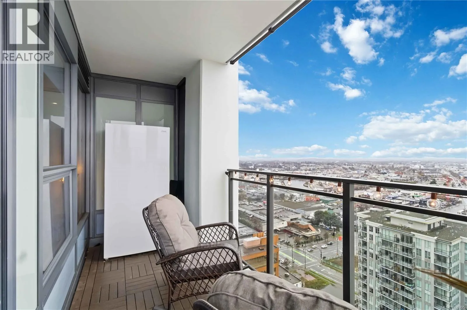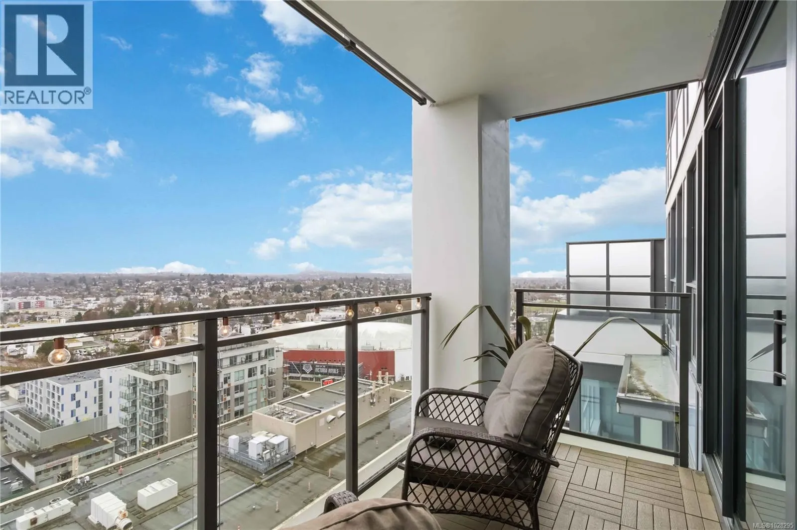 Welcome to the Executive 21st Floor at 777 Herald Street, where water, city, and mountain views create an exceptional downtown living experience. This executive two-bedroom, two-bathroom residence offers the rare bonus of two side-by-side secure underground parking stalls, a highly sought-after feature in the city. The thoughtfully designed open-concept layout is both stylish and functional, ideal for everyday living and entertaining. The modern kitchen features a spacious island with quartz countertops, built-in appliances, and sleek cabinetry, flowing seamlessly into the bright living room. Expansive floor-to-ceiling windows fill the home with natural light while showcasing the stunning surrounding views. This home includes several custom upgrades, including built-in closet organizers, a dedicated built-in desk/workspace, and stylish deck flooring that enhances the outdoor living area. Custom designed Restoration Hardware Cloud couch and matching linen chairs are available for purchase, offering a convenient turnkey opportunity. Residents enjoy access to an impressive range of amenities designed to complement urban living. These include a full time concierge, fully equipped fitness centre, yoga studio, sauna, business centre, hobby room, and a spacious resident lounge with a full kitchen, perfect for hosting gatherings. The landscaped outdoor terrace features BBQs, a large dining table, childrenâs play area, and cozy outdoor fire pits. A private guest suite is also available, providing comfortable accommodation for visiting family and friends. The location is unbeatable. With a grocery store just steps away and the vibrant downtown core at your doorstep, you are within easy walking distance to the Inner Harbour, cafés, restaurants, shops, and countless amenities that make downtown Victoria such a desirable place to live. This is executive downtown living at its finest, stunning views, thoughtful upgrades, outstanding amenities, and an unbeatable location. (id:27476)