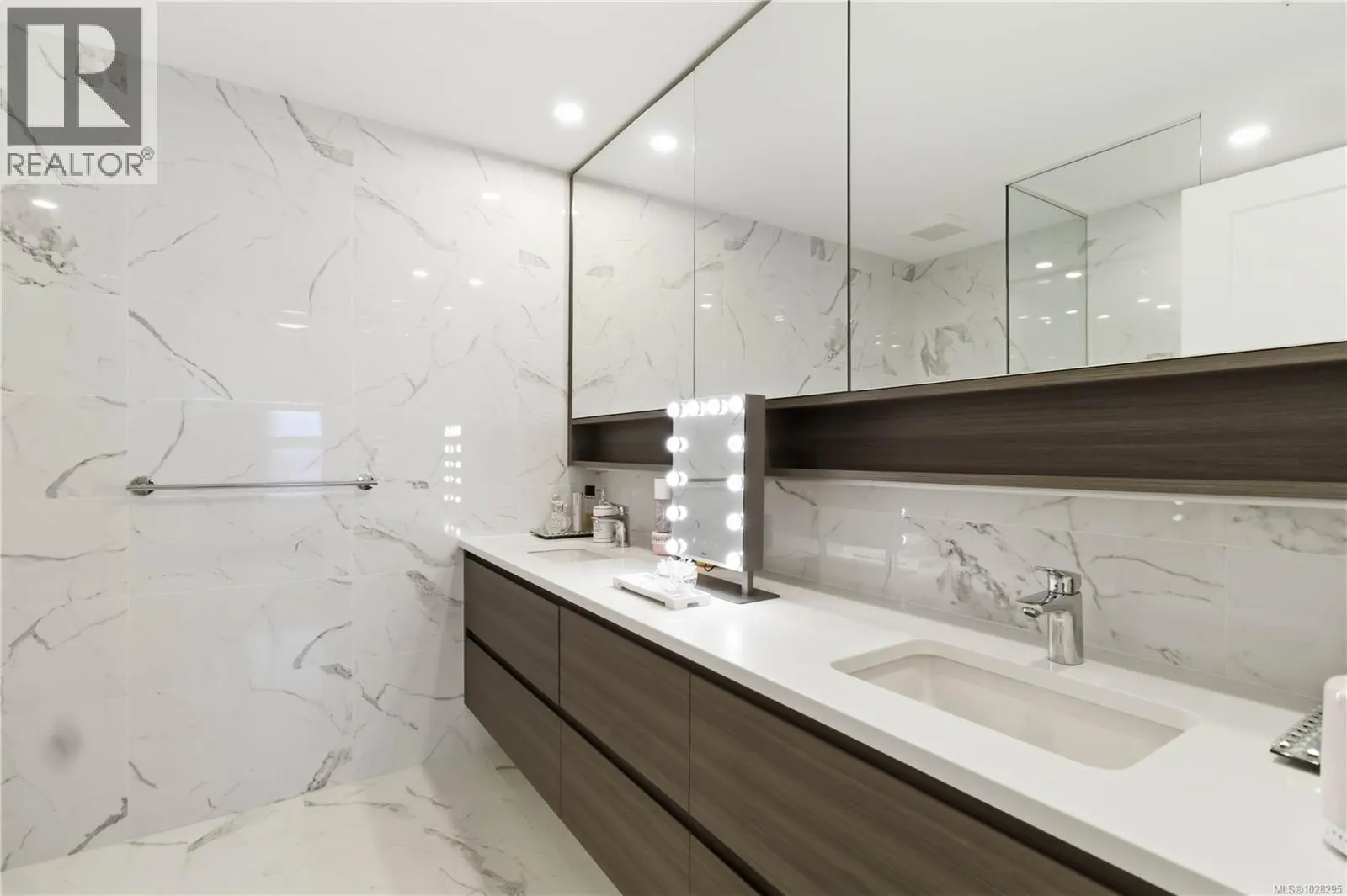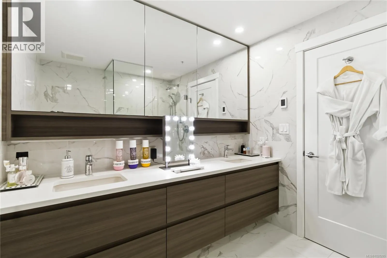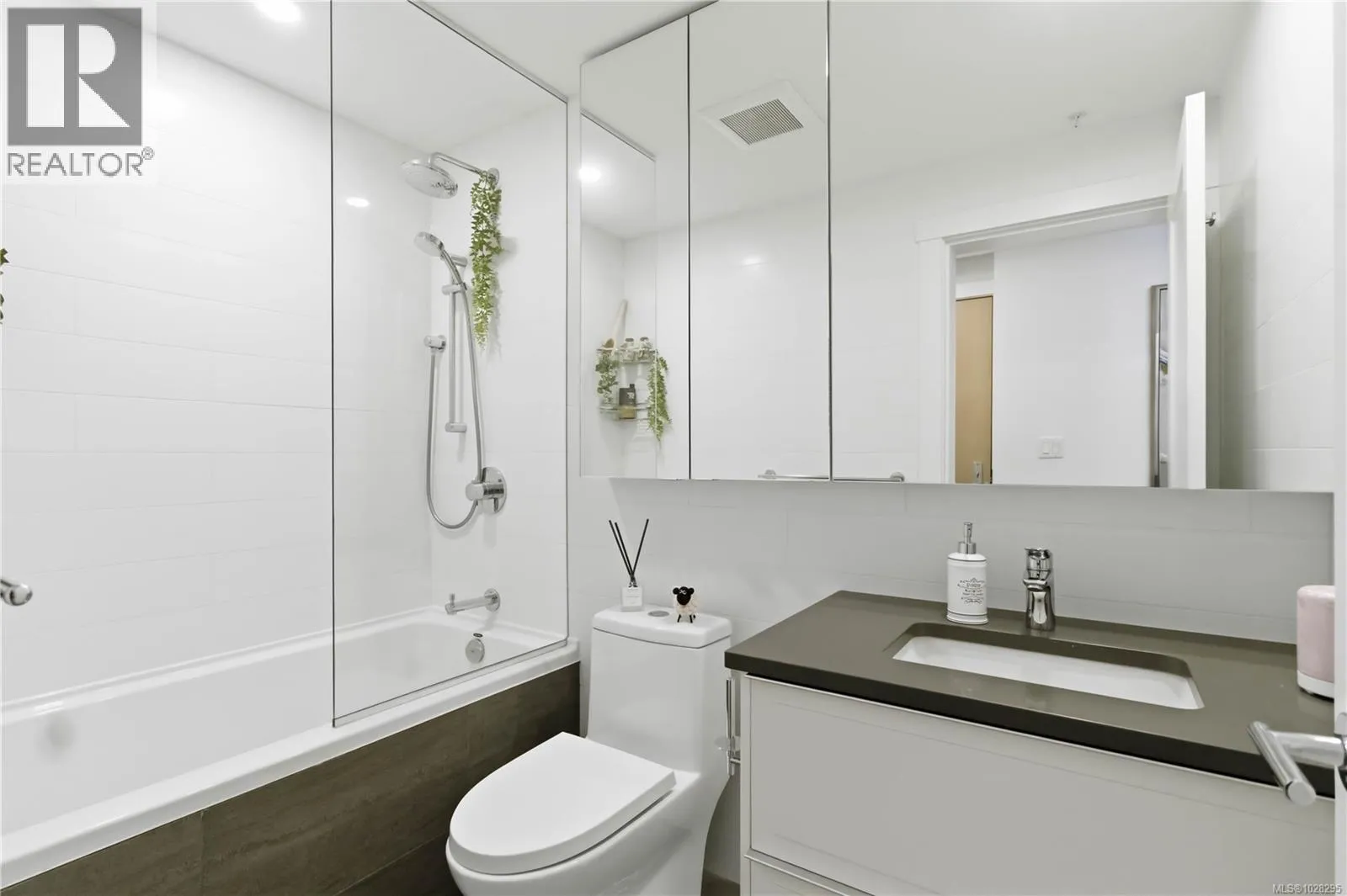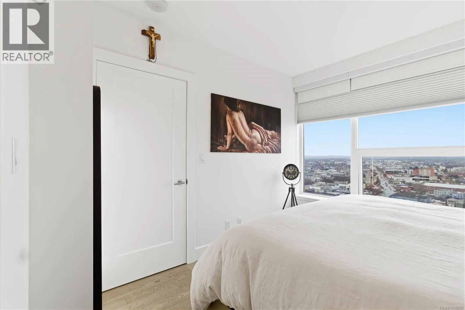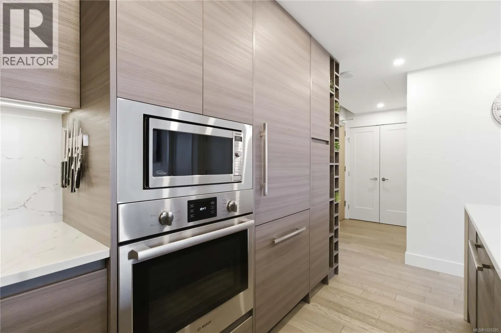 Welcome to the Executive 21st Floor at 777 Herald Street, where water, city, and mountain views create an exceptional downtown living experience. This executive two-bedroom, two-bathroom residence offers the rare bonus of two side-by-side secure underground parking stalls, a highly sought-after feature in the city. The thoughtfully designed open-concept layout is both stylish and functional, ideal for everyday living and entertaining. The modern kitchen features a spacious island with quartz countertops, built-in appliances, and sleek cabinetry, flowing seamlessly into the bright living room. Expansive floor-to-ceiling windows fill the home with natural light while showcasing the stunning surrounding views. This home includes several custom upgrades, including built-in closet organizers, a dedicated built-in desk/workspace, and stylish deck flooring that enhances the outdoor living area. Custom designed Restoration Hardware Cloud couch and matching linen chairs are available for purchase, offering a convenient turnkey opportunity. Residents enjoy access to an impressive range of amenities designed to complement urban living. These include a full time concierge, fully equipped fitness centre, yoga studio, sauna, business centre, hobby room, and a spacious resident lounge with a full kitchen, perfect for hosting gatherings. The landscaped outdoor terrace features BBQs, a large dining table, childrenâs play area, and cozy outdoor fire pits. A private guest suite is also available, providing comfortable accommodation for visiting family and friends. The location is unbeatable. With a grocery store just steps away and the vibrant downtown core at your doorstep, you are within easy walking distance to the Inner Harbour, cafés, restaurants, shops, and countless amenities that make downtown Victoria such a desirable place to live. This is executive downtown living at its finest, stunning views, thoughtful upgrades, outstanding amenities, and an unbeatable location. (id:27476)