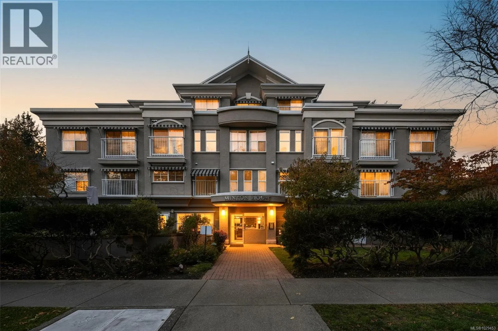 Welcome to this beautiful, move-in ready one-bedroom condo at Minton Houseâa rare 55+ community-oriented strata offering optional partial assisted-living services, including a daily three-course dinner and weekly housekeeping (fees apply; buyer to verify). Located on the third floor with an off street Westerly exposure, this well-maintained 565 sq. ft. residence features an ample sized kitchen that flows seamlessly into a bright and spacious dining/living areaâideal for comfortable daily living and entertaining. The adjoining bedroom is generous in size and is complemented by a three-piece bathroom with a 5 foot walk-in shower. Residents of Minton House enjoy a strong sense of community, with access to a large common lounge complete with library and TV area, perfect for socializing or relaxing. Step outside and you are just a short stroll to Cook Street Village, Beacon Hill Park, and all the amenities this sought-after neighbourhood is known for. Minton House is pet-friendly, allows rentals, and the building amenities include a guest suite, rentable parking (subject to waitlist), and a convenient shared laundry room. A wonderful opportunity for independent living with limited supportive services in one of Victoriaâs most desirable locations. (id:27476)