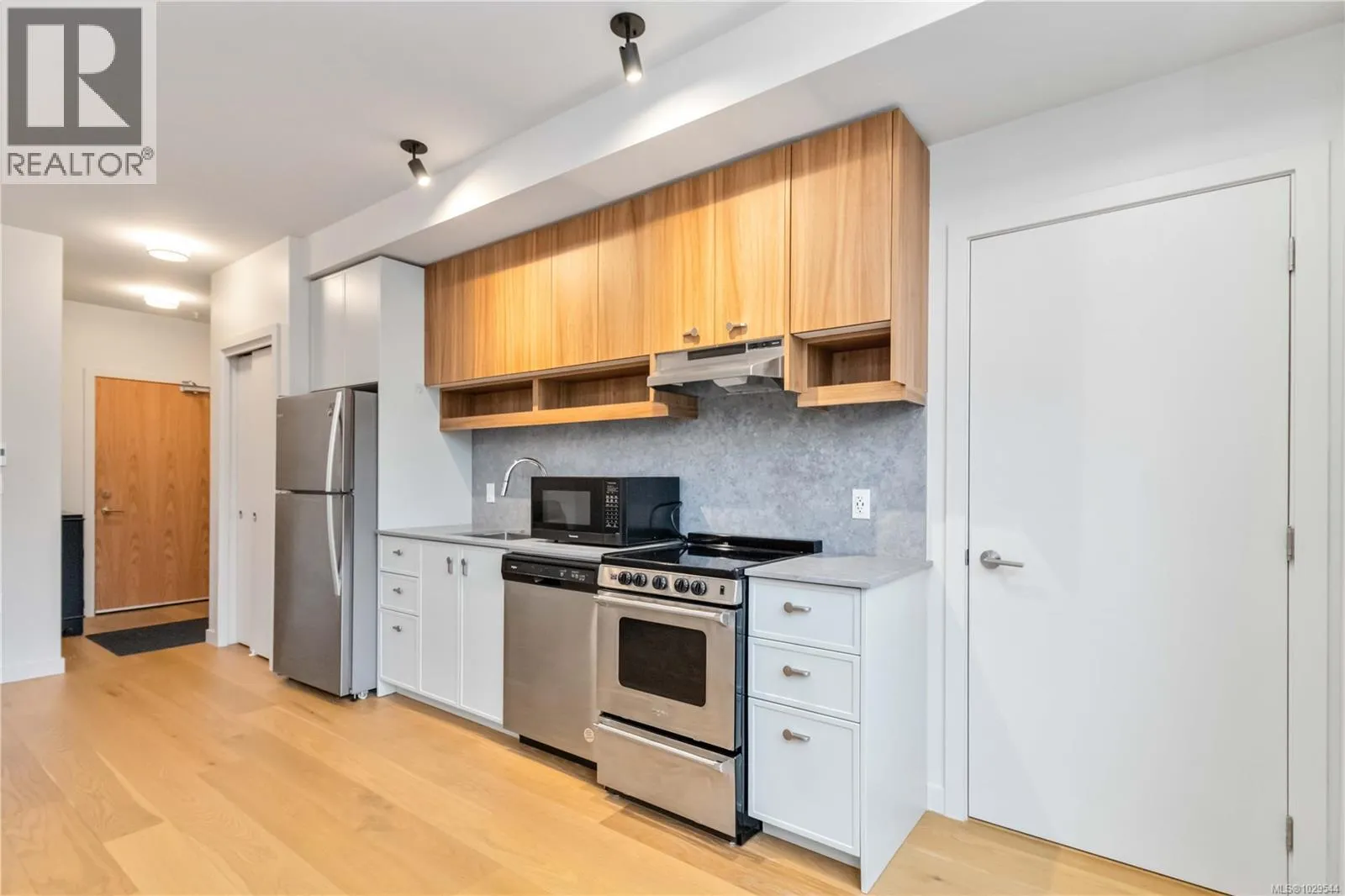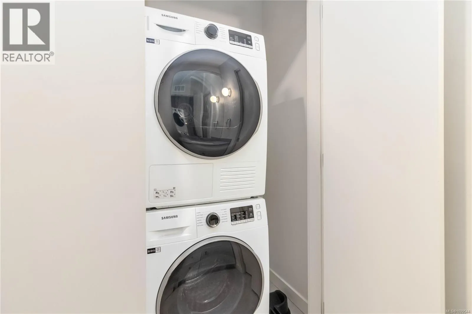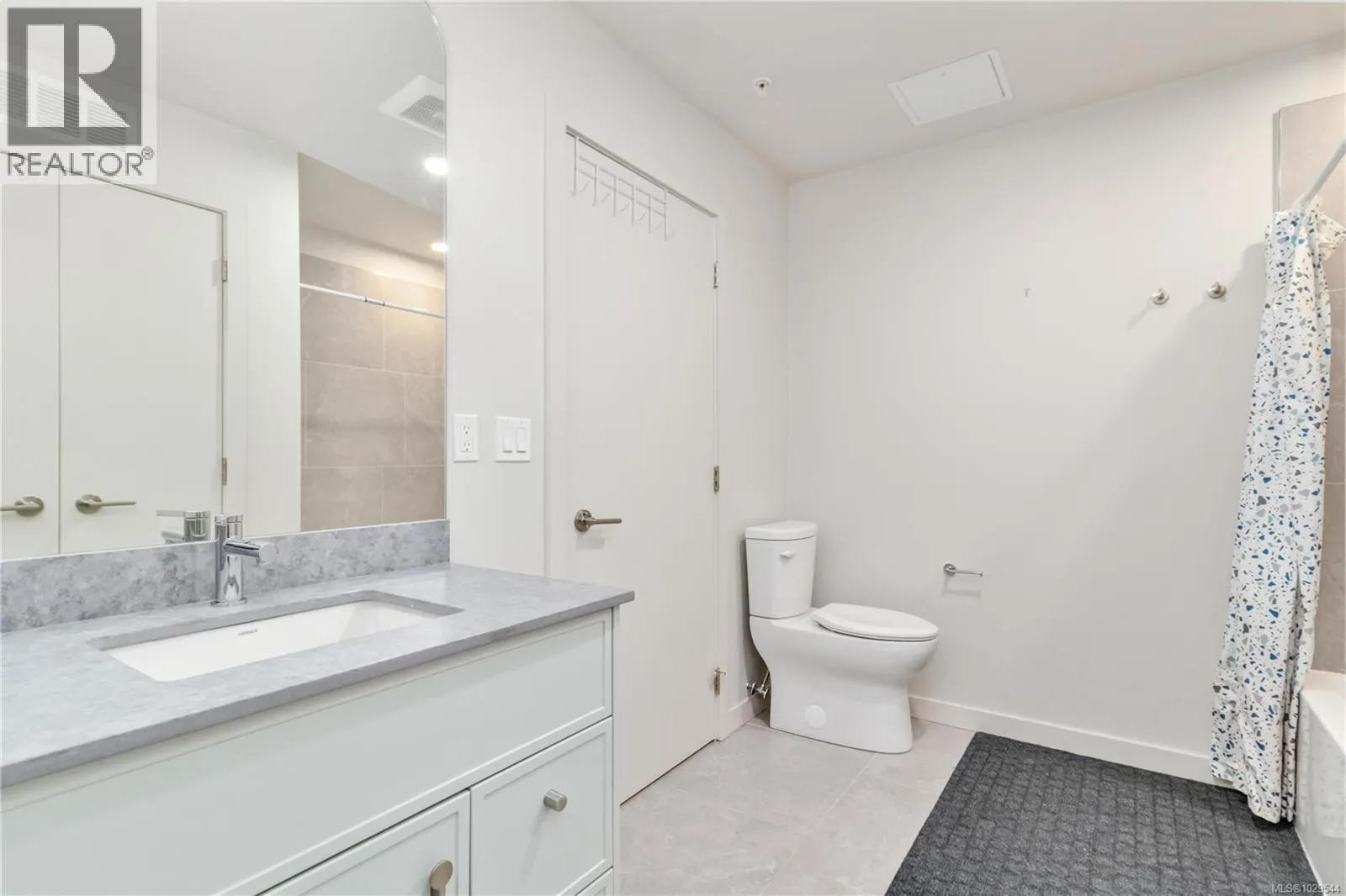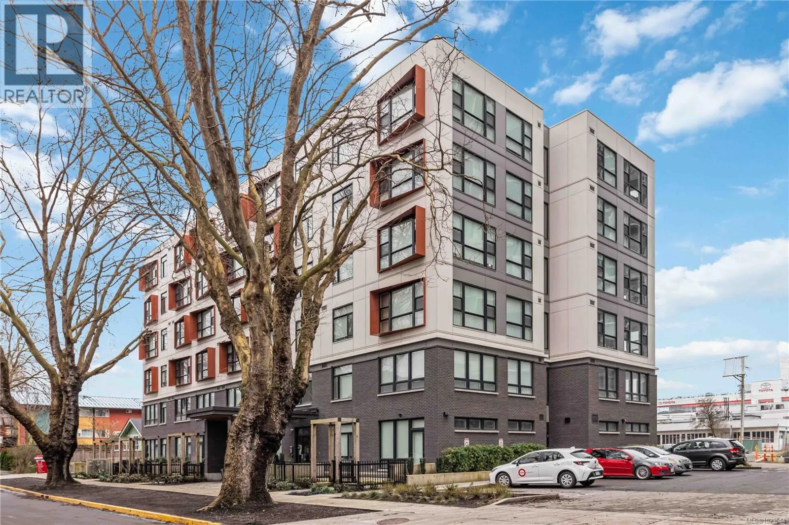 Welcome to this relatively new one bed and den unit at Tresah East, a contemporary condo community ideally located in Victoriaâs vibrant Midtown, just minutes to downtown, the Galloping Goose Trail, and the Gorge Waterway. The open-concept layout features nearly 9-foot ceilings, wide-plank oak flooring, and modern finishes throughout.The stylish kitchen includes quartz countertops and a stainless steel appliance package, seamlessly flowing into the oversized living space filled with natural light from multiple exposures. Additional features include in-suite laundry and enhanced soundproofing for added comfort. Tresah East offers secure bike storage and MODO car share accessâan ideal opportunity to enjoy modern urban living in one of Victoriaâs most convenient locations. (id:27476)