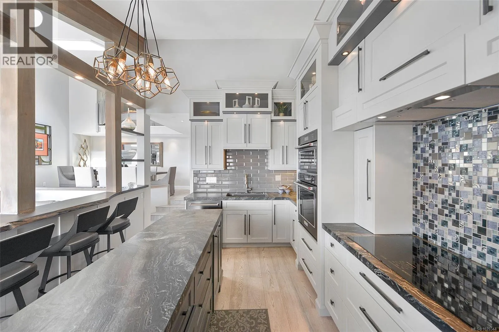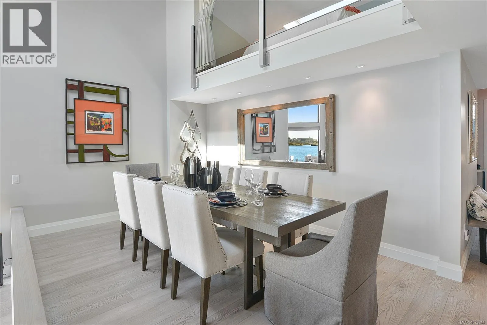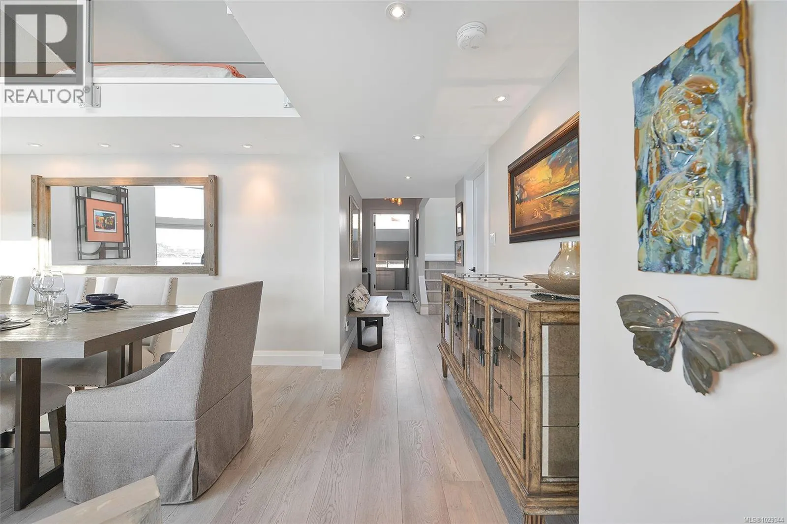 An exceptional waterfront residence set along the coveted Westsong Walkwayâwhere seaside strolls, harbour views, and easy access to downtown Victoria define an elevated lifestyle. One of only four townhomes within a well-managed waterfront complex, this rare offering blends the privacy of a house with the convenience of professional management. Perfectly positioned to capture sweeping south and west-facing views, the home overlooks the Inner Harbour, stretching to Ogden Point, the Olympic Mountains, and West Bay Marinaâan ever-changing coastal backdrop that brings a sense of calm and connection to nature. Inside, the home has been thoughtfully reimagined to enhance both livability and its connection to the water. A beautifully designed custom kitchen anchors the main living space, creating a natural flow for everyday living and entertaining. Warm engineered oak flooring runs throughout, while vaulted ceilings and skylights draw in natural light and enhance the sense of space. The upper level offers a loft-style primary suiteâan inviting retreat with ensuite and elevated harbour views. A second bedroom and flexible den provide space for guests, work, or relaxation. Residents enjoy the benefits of a well-managed building, with strata fees including heat and hot water, while maintaining the exclusivity of the limited townhouse offering. Just steps to the waterfront pathway, with dining at Spinnakers and Boom + Batten moments away and downtown Victoria within easy reach, this is a rare opportunity to enjoy the very best of coastal living. An ideal offering for those seeking a sophisticated, lock-and-leave lifestyle in one of Victoriaâs most sought-after waterfront settings. (id:27476)