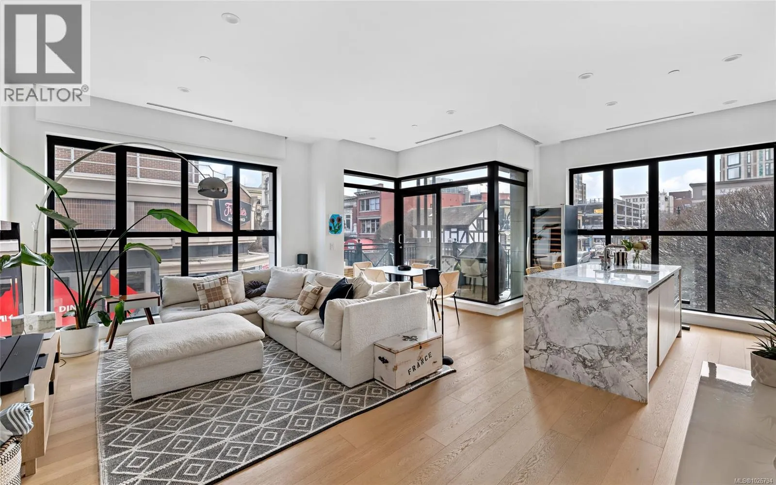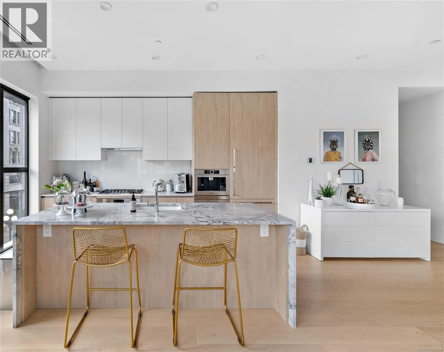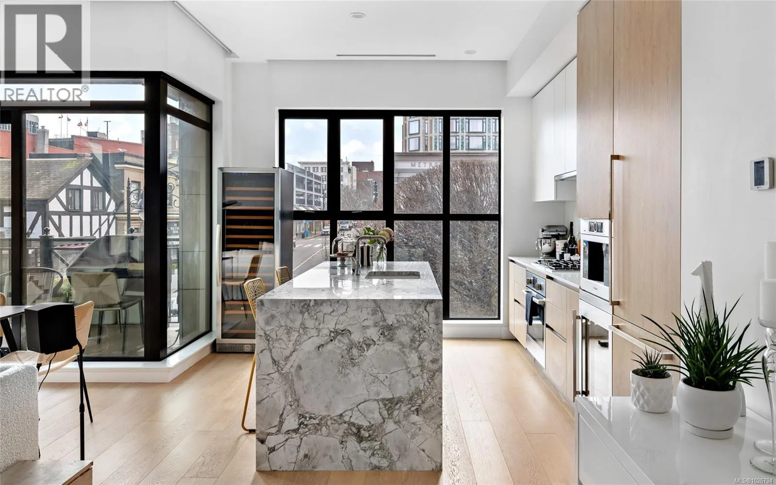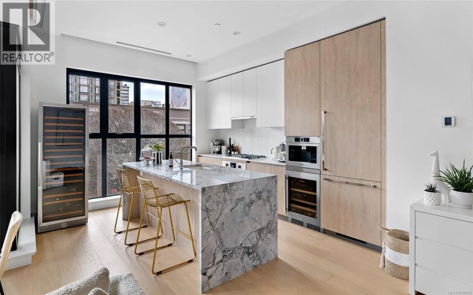 Experience refined downtown living at the iconic Customs House, where timeless architecture meets contemporary luxury. This elegantly appointed residence offers an open concept design enhanced by engineered hardwood floors, floor to ceiling New York style windows and bespoke motorized blinds that frame captivating urban outlooks. The chef inspired kitchen is thoughtfully designed with a farm house sink, gas range, built in wine cooler and coffee machine, allowing seamless environment for both everyday living and sophisticated entertaining. The tranquil primary bath evokes a private spa feel, complete with a deep soaker tub and sleek glass enclosed shower. Customs House offers a full suite of premium amenities including concierge service, fitness centre, steam room and sauna, secure underground parking and a storage locker. Don't miss your opportunity to own in downtown Victoria's finest building, perfectly positioned to access the very best Victoria has to offer. (id:27476)