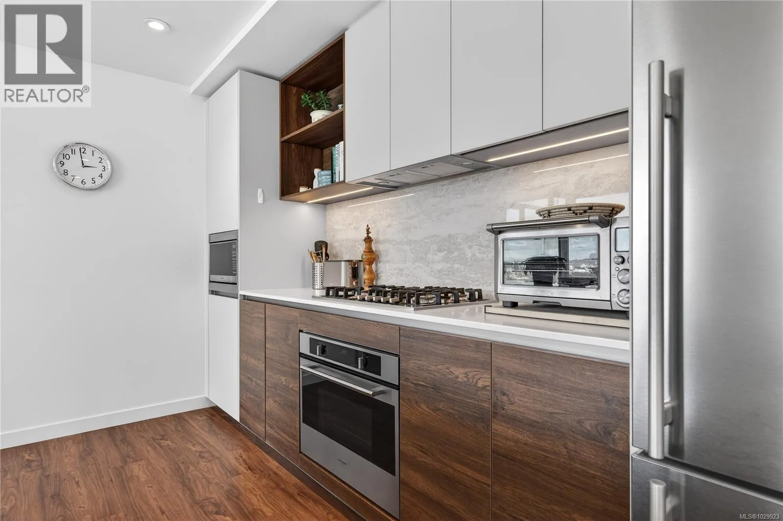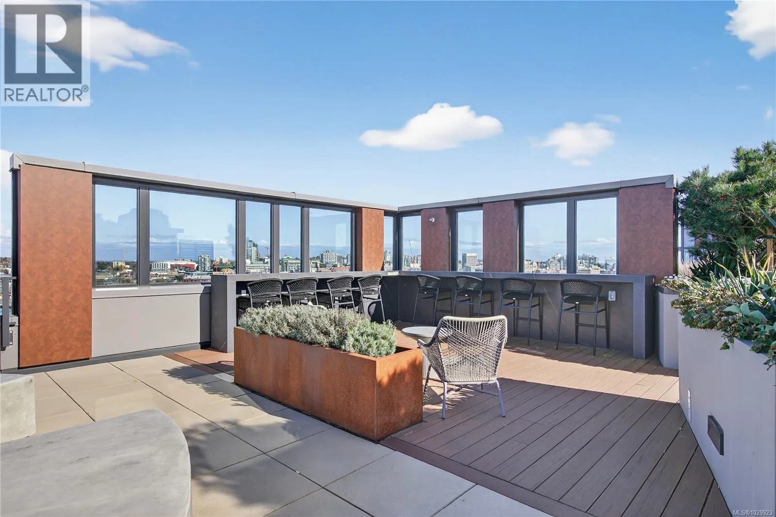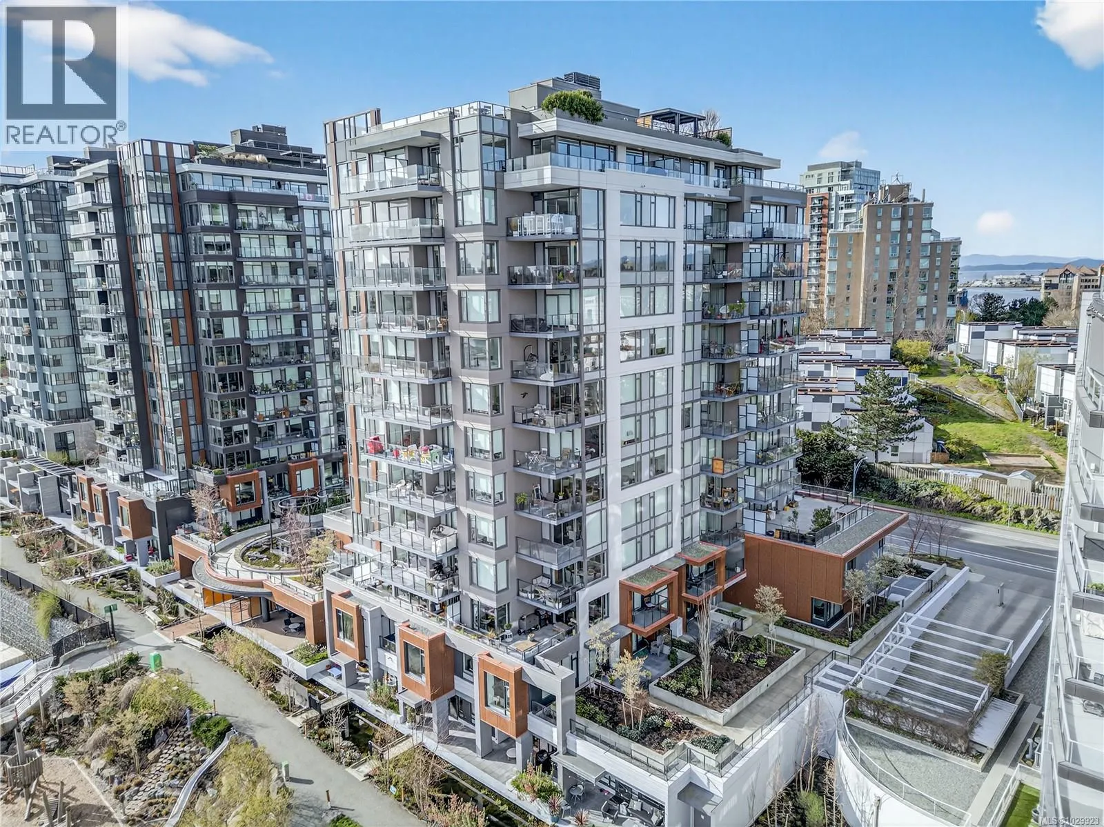 Steps to Everything you Love! Welcome to 1001-369 Tyee Rd, a stunning 2 bed, 2 bath corner suite offering 1,101 sqft of refined living in VicWest. Built in 2023 by Bosa Developments, this LEED Platinum Certified residence blends modern design with eco-conscious living. Enjoy expansive ocean and city skyline views from the 10th floor and a spacious private patioâperfect for summer entertaining. The open layout features Stosa Italian cabinetry, quartz countertops, premium appliances, luxury vinyl plank flooring, and a spa-inspired primary with ensuite and custom closet organizers. Comfort is enhanced by efficient hydronic heating and ERV ventilation. Includes secure parking and separate storage. Exceptional amenities include a multi zoned rooftop patio with two BBQ areas, a complete fitness centre, a multi zoned social lounge, exceptional bike storage and dog wash. Just steps to the harbour, Galloping Goose and downtown. Easy to show. (id:27476)