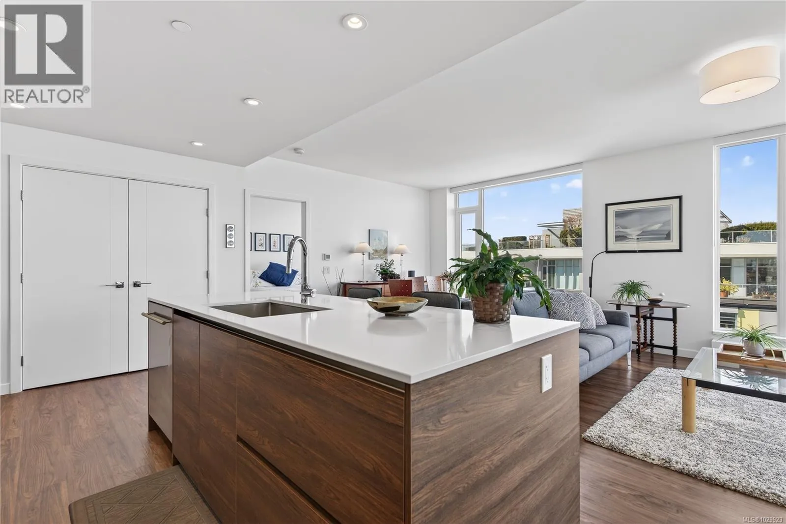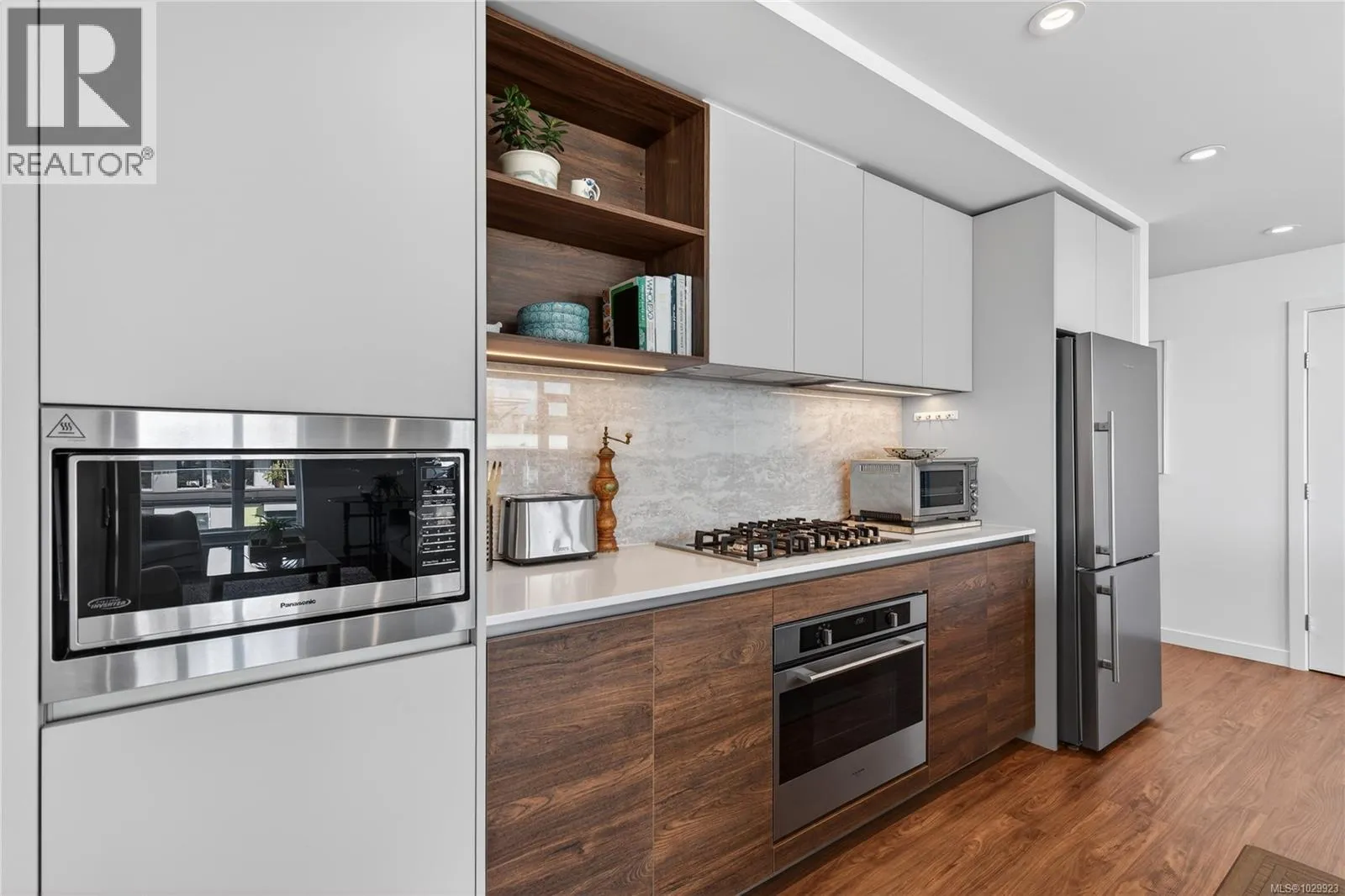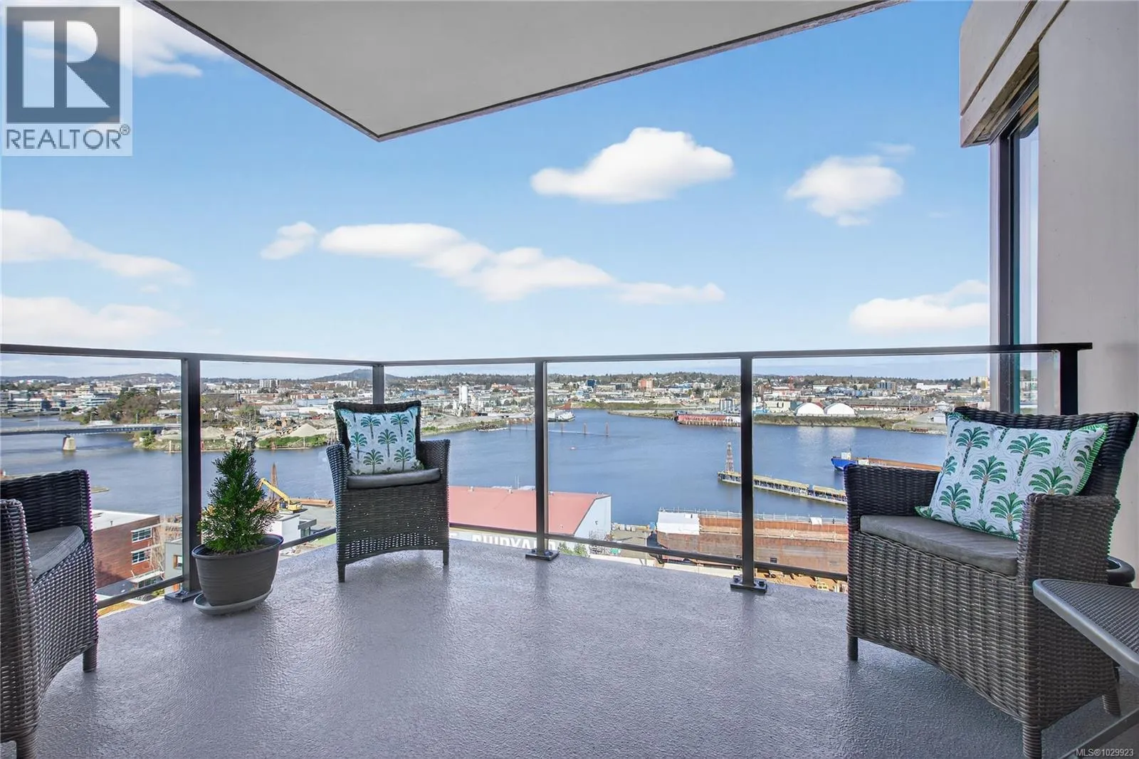 Steps to Everything you Love! Welcome to 1001-369 Tyee Rd, a stunning 2 bed, 2 bath corner suite offering 1,101 sqft of refined living in VicWest. Built in 2023 by Bosa Developments, this LEED Platinum Certified residence blends modern design with eco-conscious living. Enjoy expansive ocean and city skyline views from the 10th floor and a spacious private patioâperfect for summer entertaining. The open layout features Stosa Italian cabinetry, quartz countertops, premium appliances, luxury vinyl plank flooring, and a spa-inspired primary with ensuite and custom closet organizers. Comfort is enhanced by efficient hydronic heating and ERV ventilation. Includes secure parking and separate storage. Exceptional amenities include a multi zoned rooftop patio with two BBQ areas, a complete fitness centre, a multi zoned social lounge, exceptional bike storage and dog wash. Just steps to the harbour, Galloping Goose and downtown. Easy to show. (id:27476)