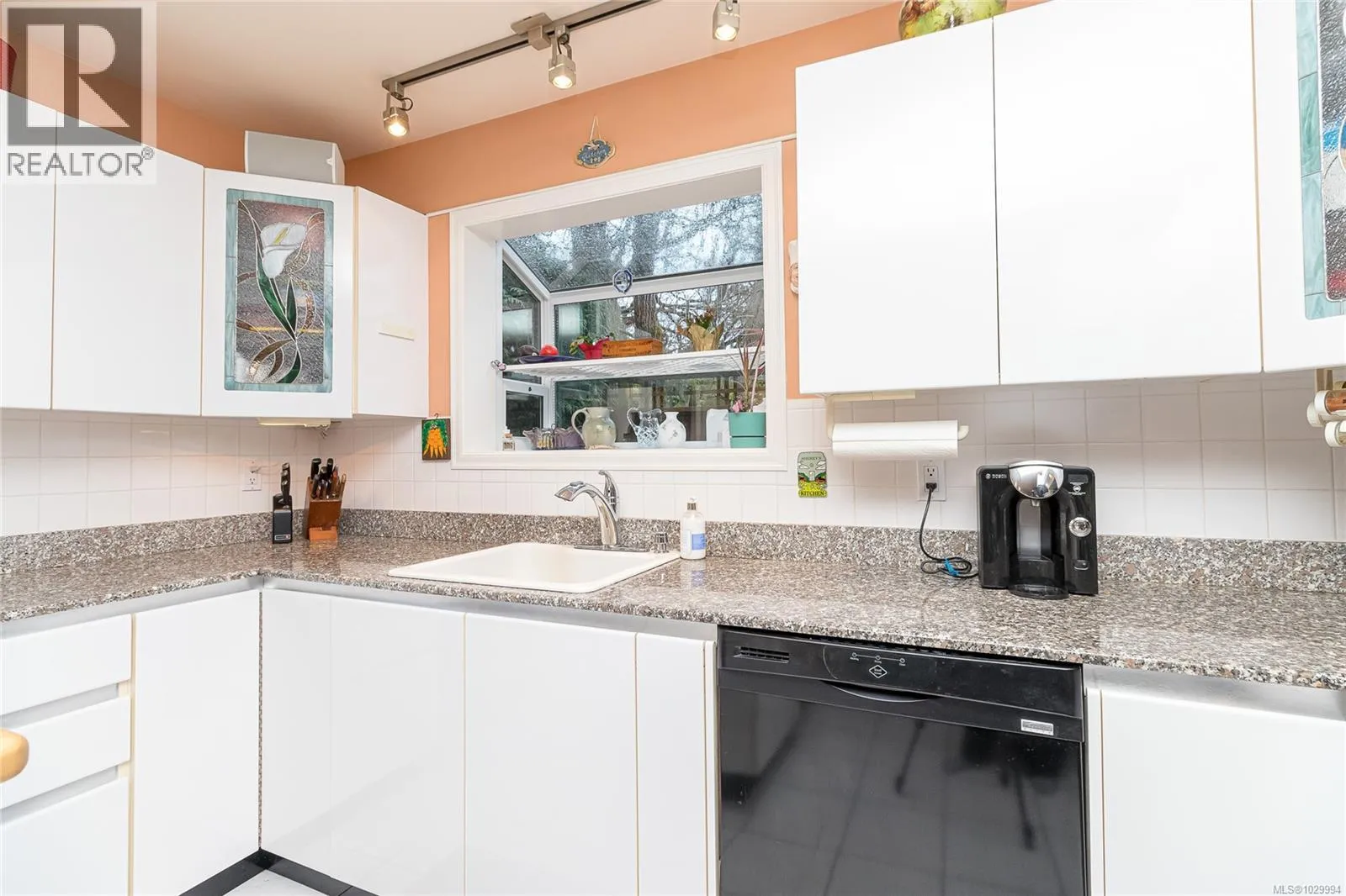 Rare Rockland gem! First time on the market in 30 years. Perched on a hill in a serene, park-like setting, this beautifully custom-built 4-bedroom, 3 bathroom home (1985) showcases thoughtful design and quality construction throughout. Lovingly maintained and updated over the years, the home offers a spacious and functional layout, including a bright living room with a charming wood-burning fireplace, skylights that bring in natural light, and a large primary bedroom complete with ensuite. The kitchen offers ample storage and opens onto a patio, perfect for everyday living and entertaining. A laundry/mud room on the main floor adds convenience, along with a single-car garage. Enjoy the perfect balance of city convenience and peaceful surroundings, with amenities close by while still feeling like a private oasis. Take in stunning sunsets and city lights from the front courtyard or relax in the private backyard with a beautiful patio and easy-care garden. Offering a low-maintenance lifestyle without the constraints of strata living, this is a rare opportunity in one of Rocklandâs most sought-after locations. (id:27476)