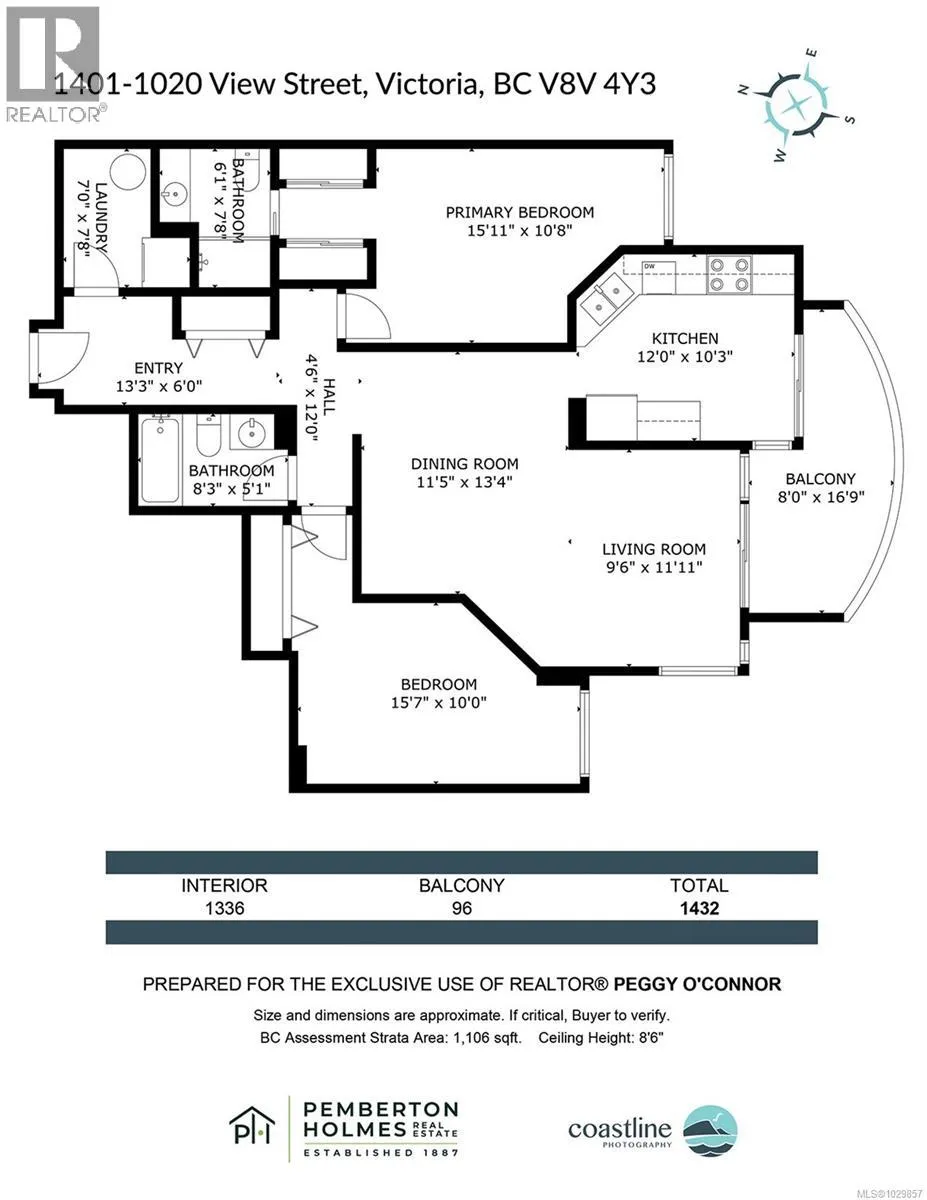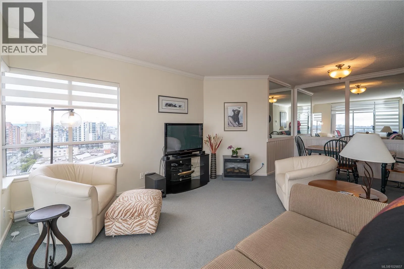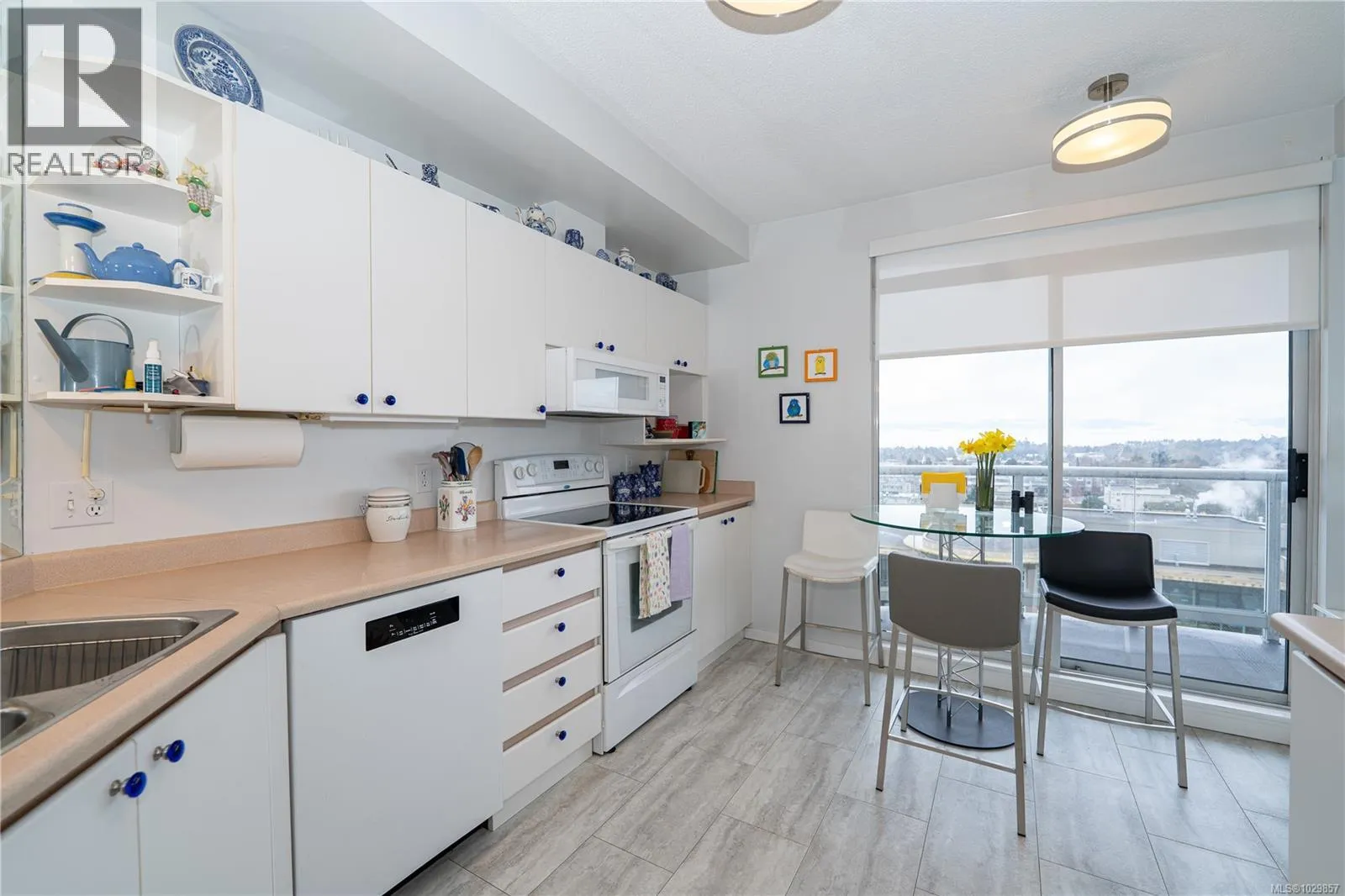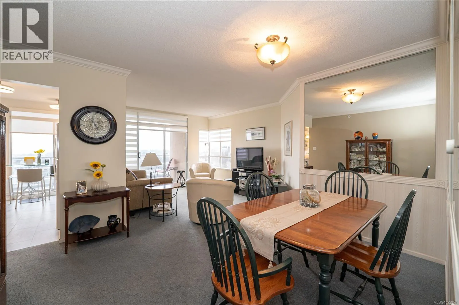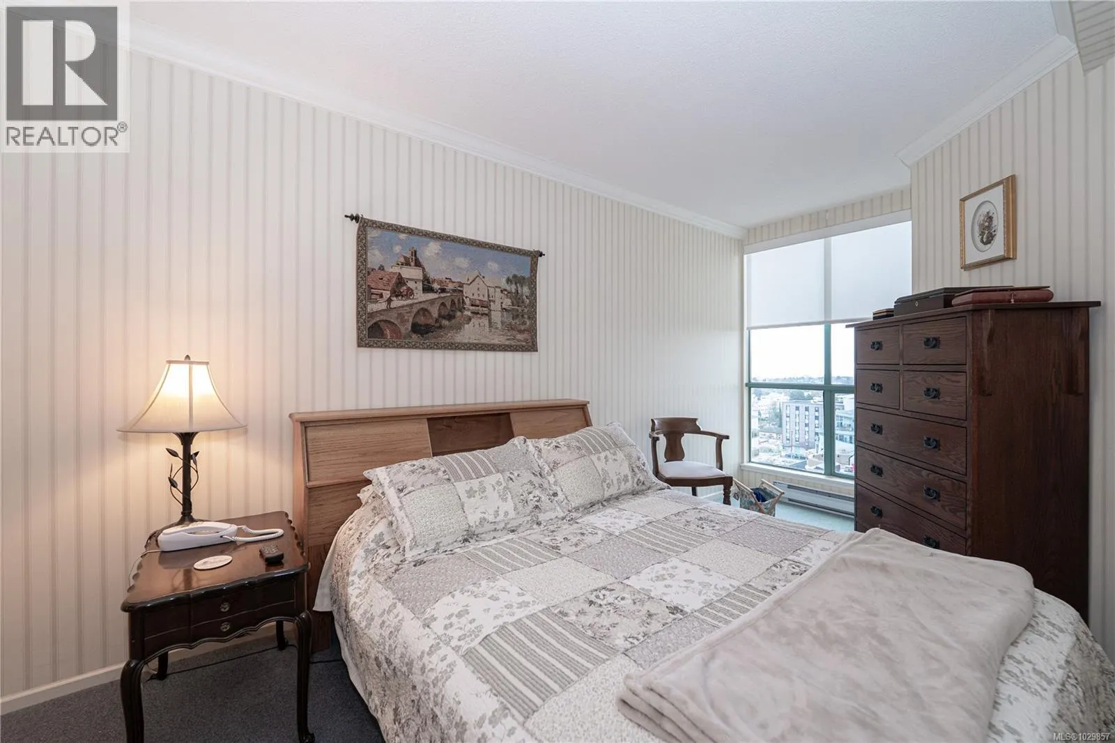 Built in 1992 as the City's Prestigious 'Regents Park' offering the finest Steel & Cast in place concrete construction and quality finishings with 8'6'' ceilings, award winning spacious design, the finest in amenities, with incomparable views and location. Considered the best view offered of both towers this unit directly faces south with 180 degree views incorporating East and West exposure as well. View on a clear day and the Ocean & Olympic Mountains will take your breath away. Unique because this view is unlikely to change as primarily new builds already in place. The layout offers exceptional space and separation with bedrooms at either end and spacious open living/dining great for entertaining. The kitchen has a separate eating area to sip your morning coffee with the best views in town. The primary bedroom offers views, walk through closets and 3pc ensuite. There is an actual laundry room and space for all your furniture. Yes there are plans to revitalize the exterior to new. (id:27476)
