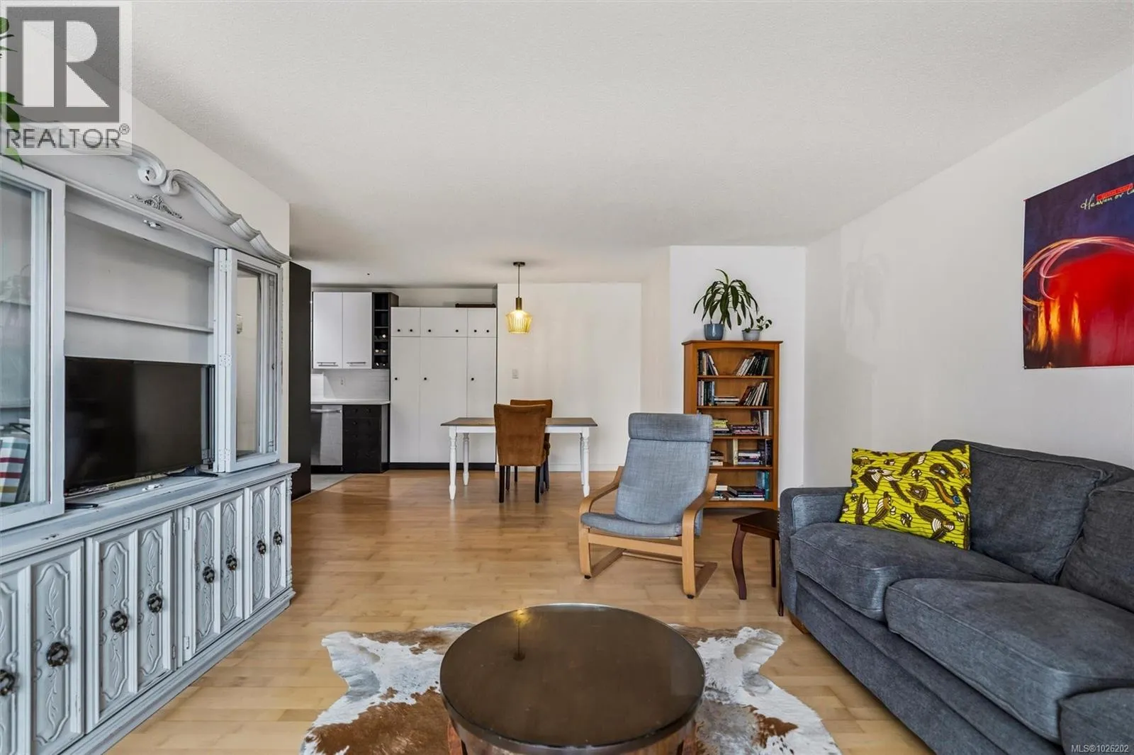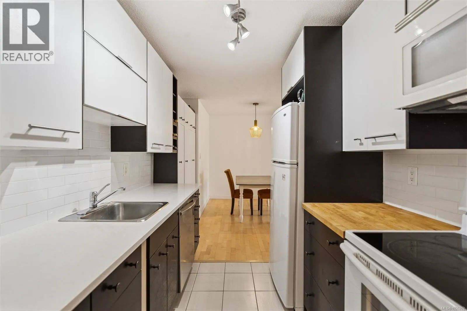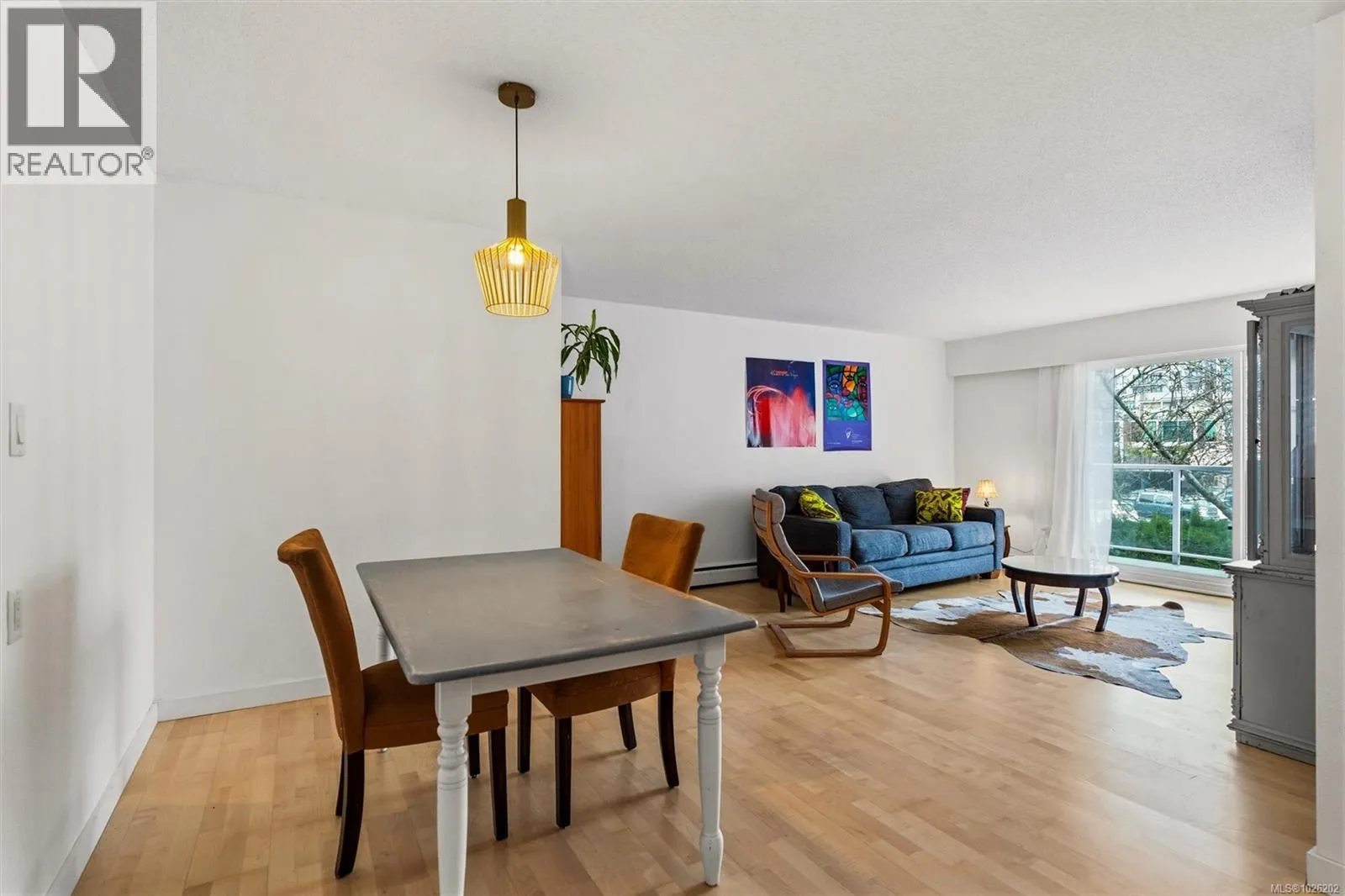 Perfectly positioned between Downtown and Cook Street Village, this beautifully refreshed 2 bed, 2 bath condo offers an exceptional blend of lifestyle and location. Thoughtfully updated throughout, the home features a spacious, well-designed layout with excellent storage, a stylish kitchen, laminate flooring, and contemporary bathrooms. The kitchen flows effortlessly into the bright living and dining areas, opening onto a sunny balcony that fills the space with natural light. The generous primary bedroom includes a convenient 2-piece ensuite, while the second bedroom is well-sized with ample closet space. Additional highlights include a covered parking stall, oversized storage locker, secure bike storage, and a rec room. Set in one of the cityâs most desirable neighbourhoods, youâre just steps to shops, cafés, groceries, the YMCA, Beacon Hill Park, and everything downtown has to offer! (id:27476)