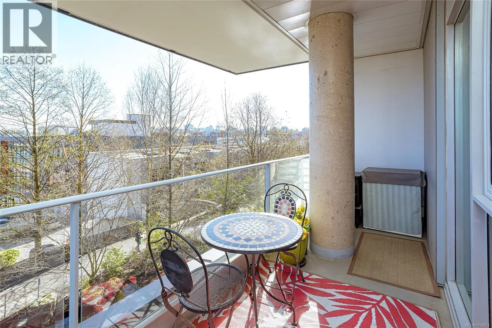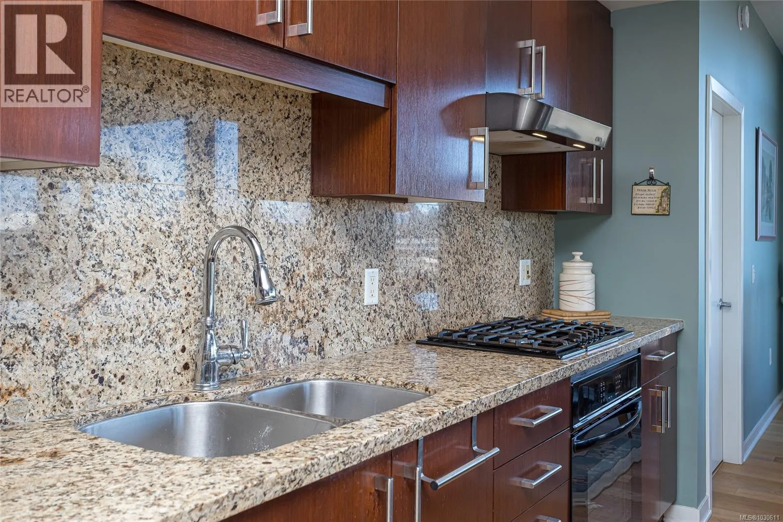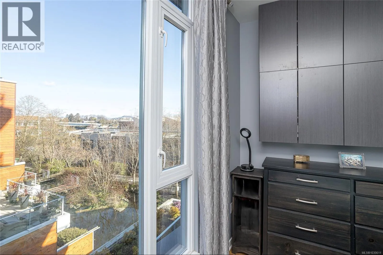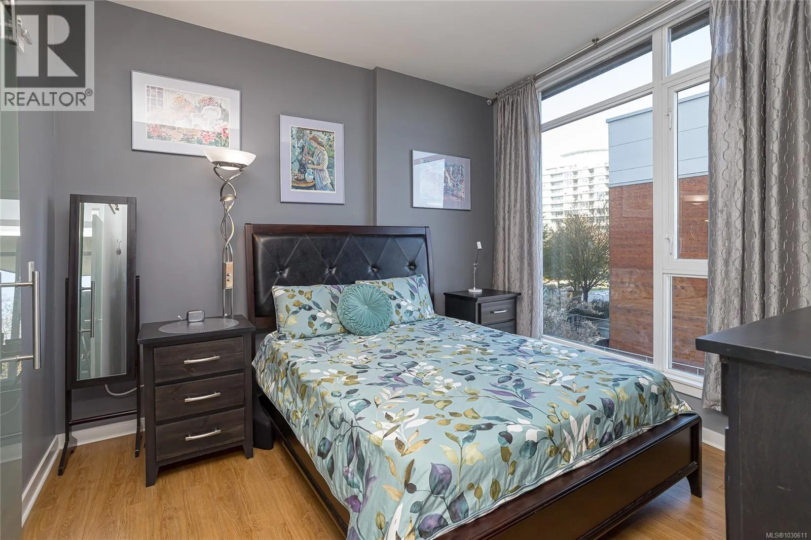 Ocean views, quality finishes, and an exceptional Dockside Green location define this beautifully updated 2 bed, 2 bath condo. Offering 1,042 sq ft, the home features granite countertops, newer stainless steel appliances, updated flooring and light fixtures, custom window treatments, a generous balcony, and smart built-ins including custom storage in the primary suite and a Murphy bed in the second bedroom. Steel and concrete construction, in-unit laundry, separate storage, and two secure underground parking stalls, one for a car and one ideal for a scooter or bike, add to the appeal. Just steps to the Galloping Goose, the Selkirk waterfront, shops, restaurants, and an easy walk to downtown Victoria, this is stylish urban living in one of the cityâs most connected neighbourhoods. (id:27476)