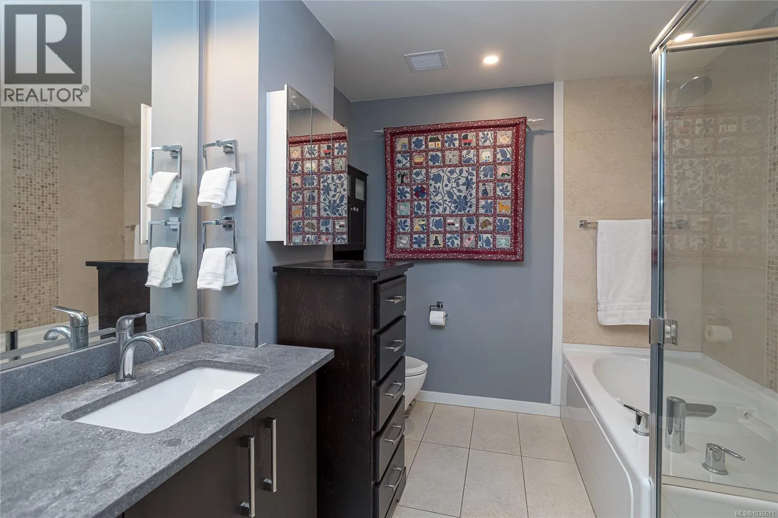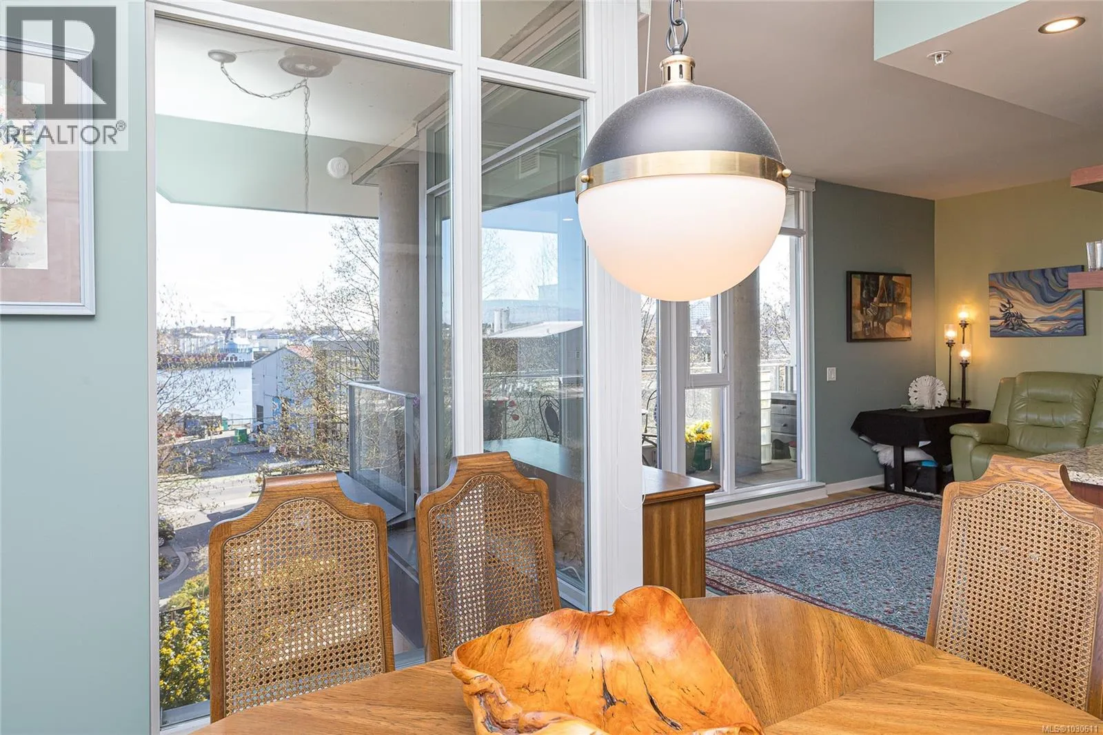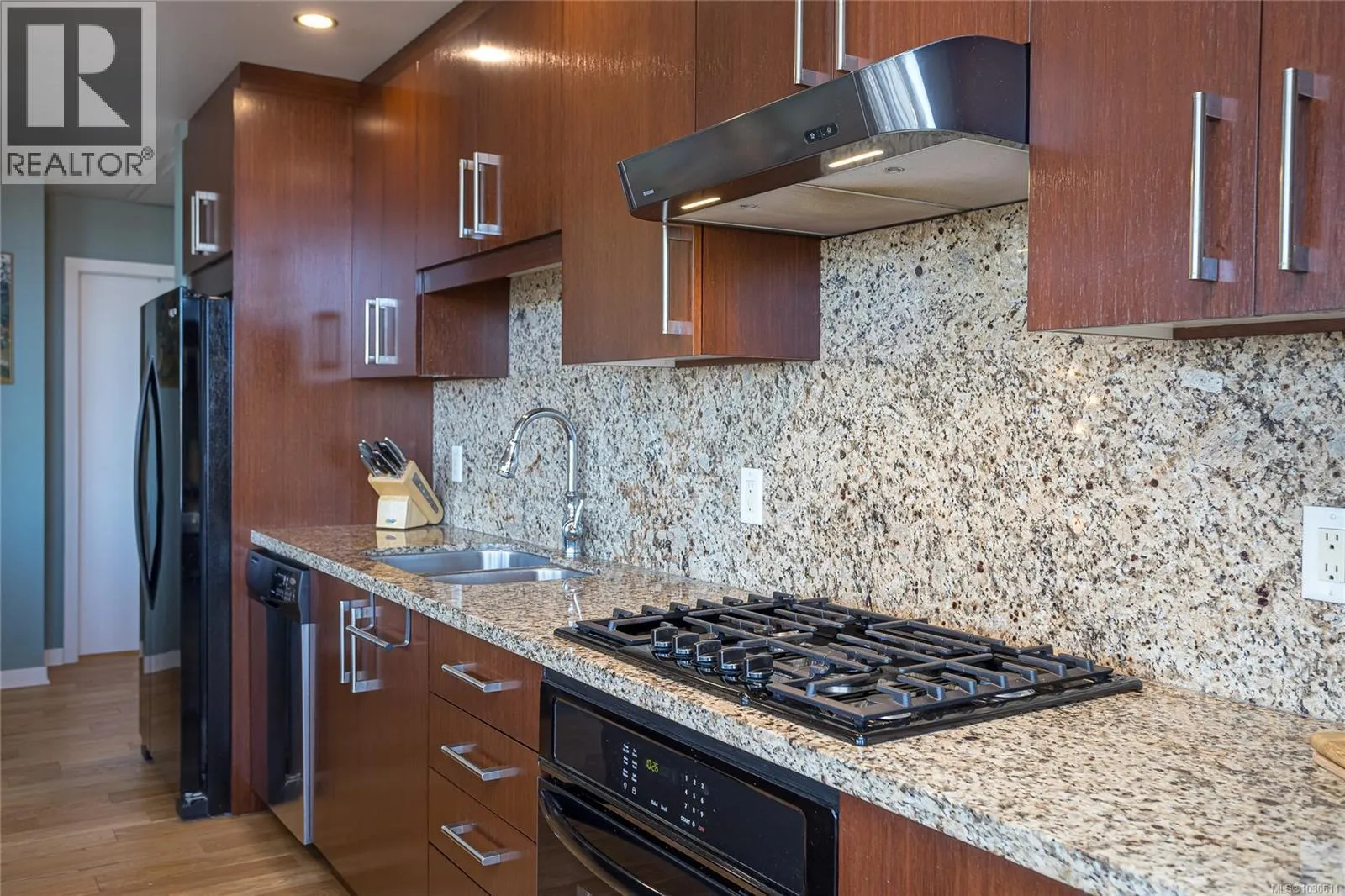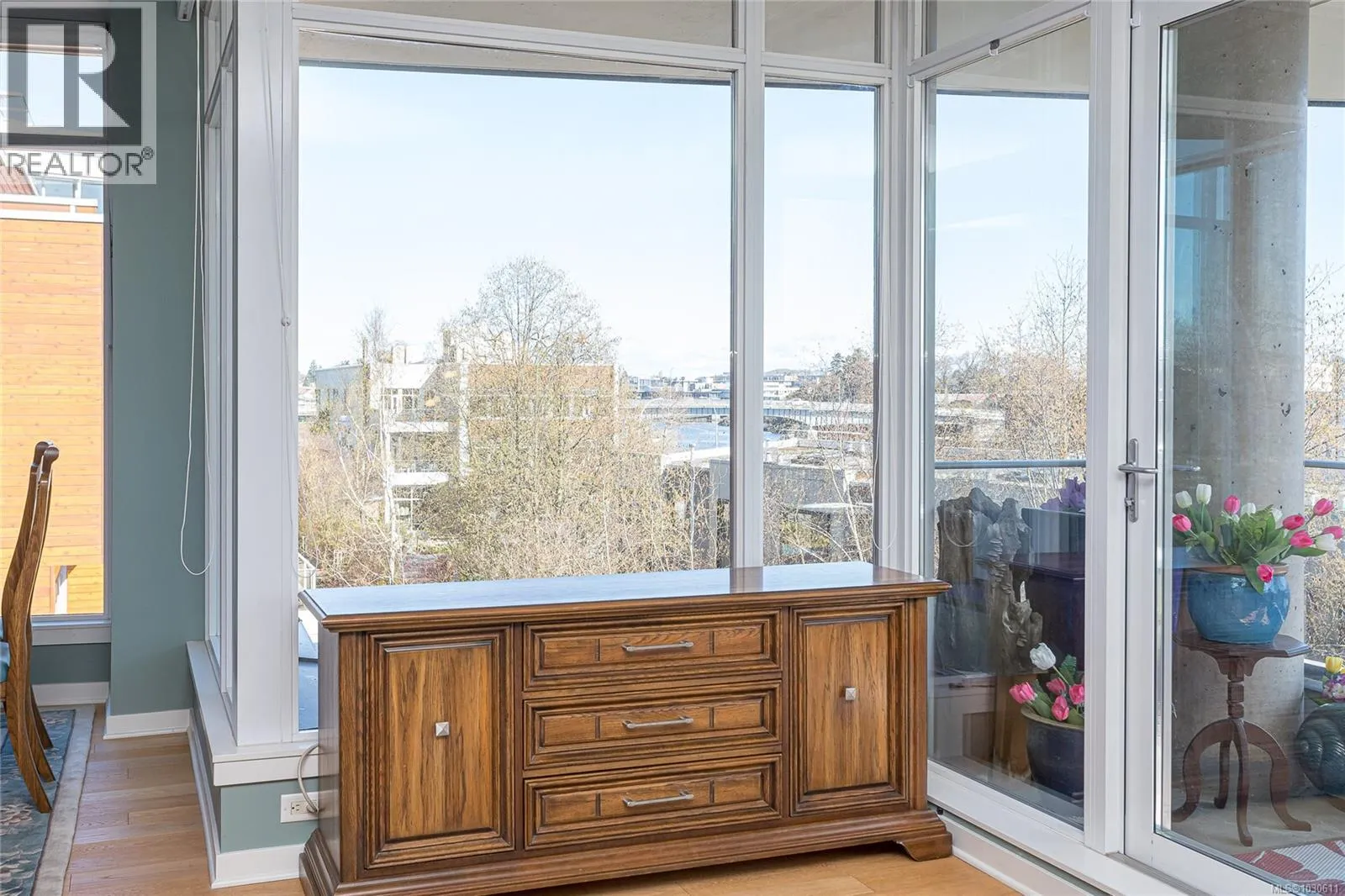 Ocean views, quality finishes, and an exceptional Dockside Green location define this beautifully updated 2 bed, 2 bath condo. Offering 1,042 sq ft, the home features granite countertops, newer stainless steel appliances, updated flooring and light fixtures, custom window treatments, a generous balcony, and smart built-ins including custom storage in the primary suite and a Murphy bed in the second bedroom. Steel and concrete construction, in-unit laundry, separate storage, and two secure underground parking stalls, one for a car and one ideal for a scooter or bike, add to the appeal. Just steps to the Galloping Goose, the Selkirk waterfront, shops, restaurants, and an easy walk to downtown Victoria, this is stylish urban living in one of the cityâs most connected neighbourhoods. (id:27476)