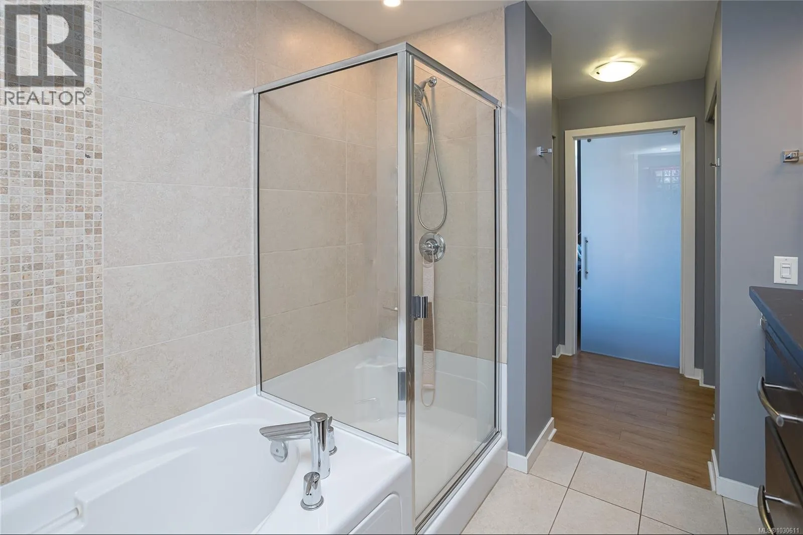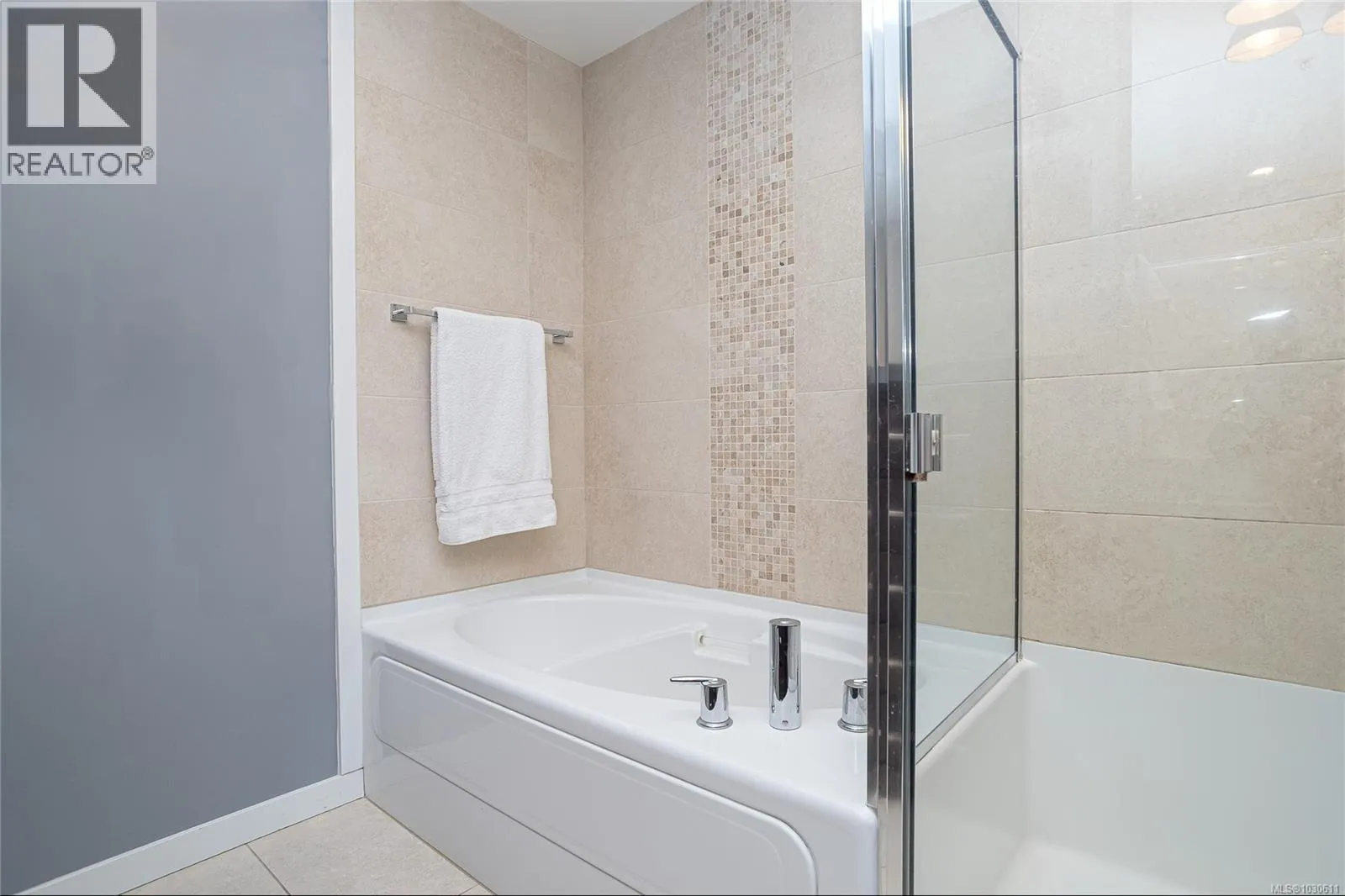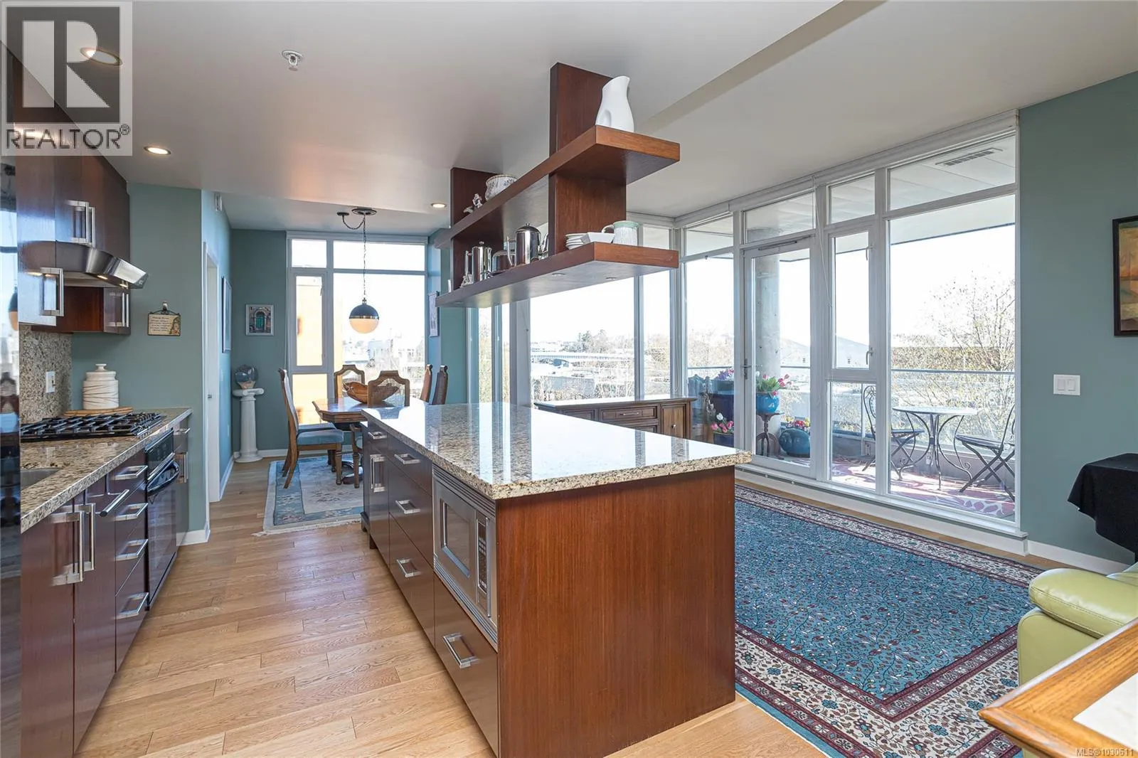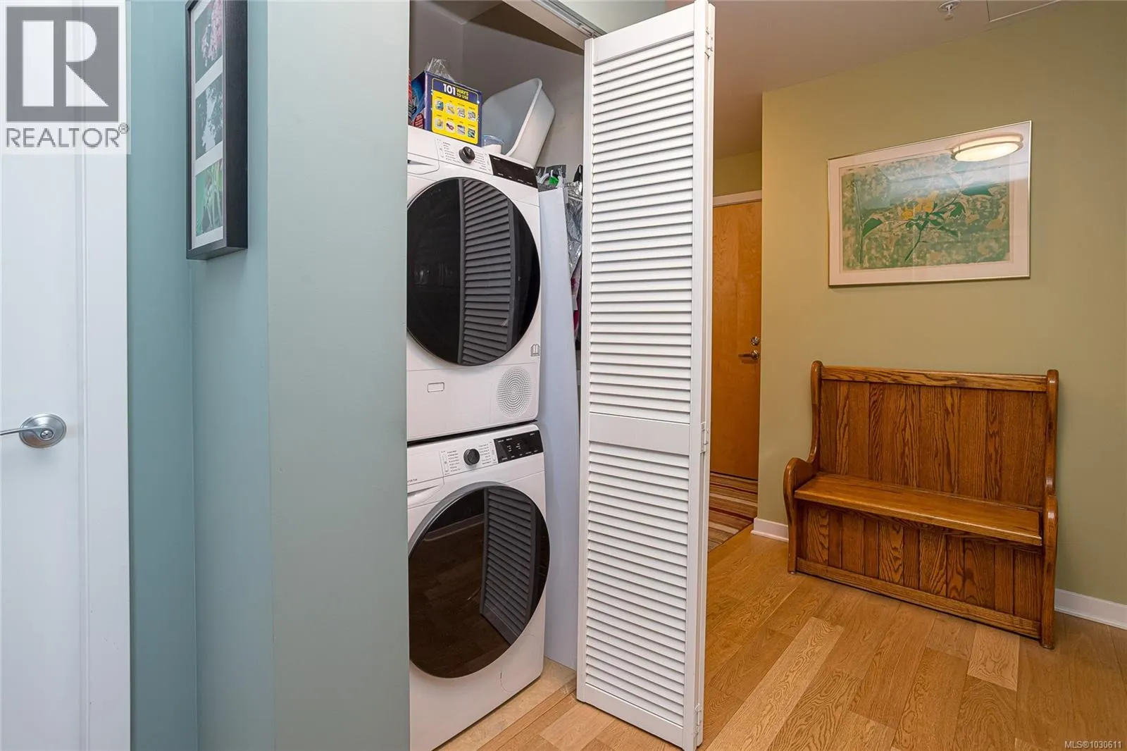 Ocean views, quality finishes, and an exceptional Dockside Green location define this beautifully updated 2 bed, 2 bath condo. Offering 1,042 sq ft, the home features granite countertops, newer stainless steel appliances, updated flooring and light fixtures, custom window treatments, a generous balcony, and smart built-ins including custom storage in the primary suite and a Murphy bed in the second bedroom. Steel and concrete construction, in-unit laundry, separate storage, and two secure underground parking stalls, one for a car and one ideal for a scooter or bike, add to the appeal. Just steps to the Galloping Goose, the Selkirk waterfront, shops, restaurants, and an easy walk to downtown Victoria, this is stylish urban living in one of the cityâs most connected neighbourhoods. (id:27476)