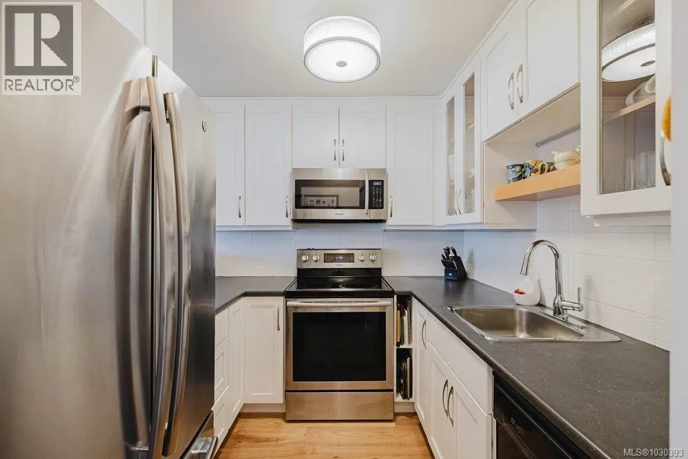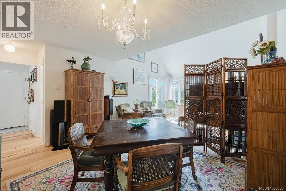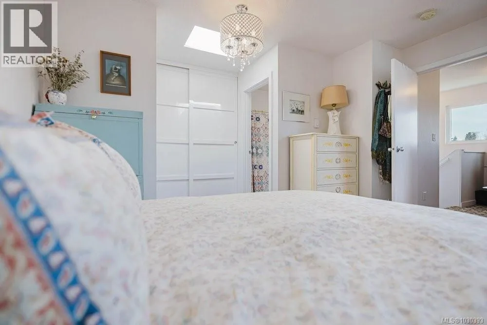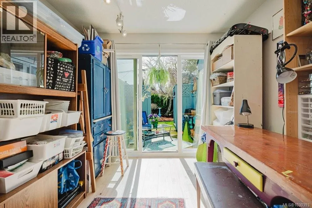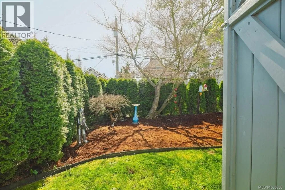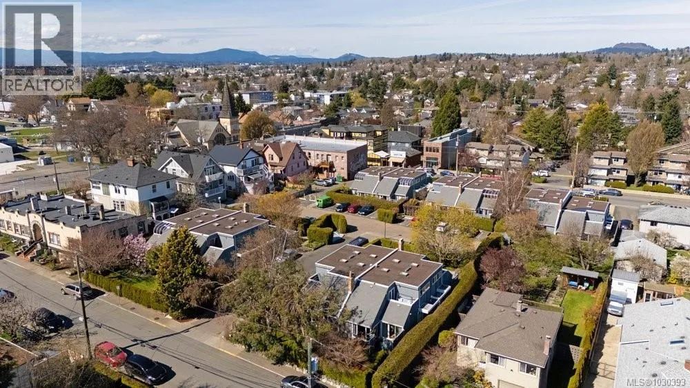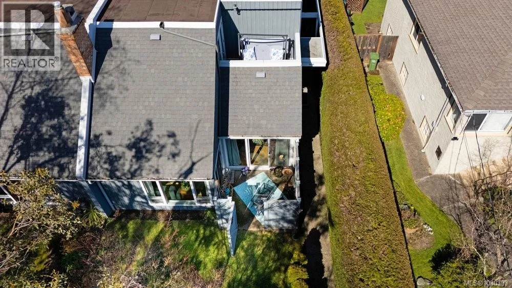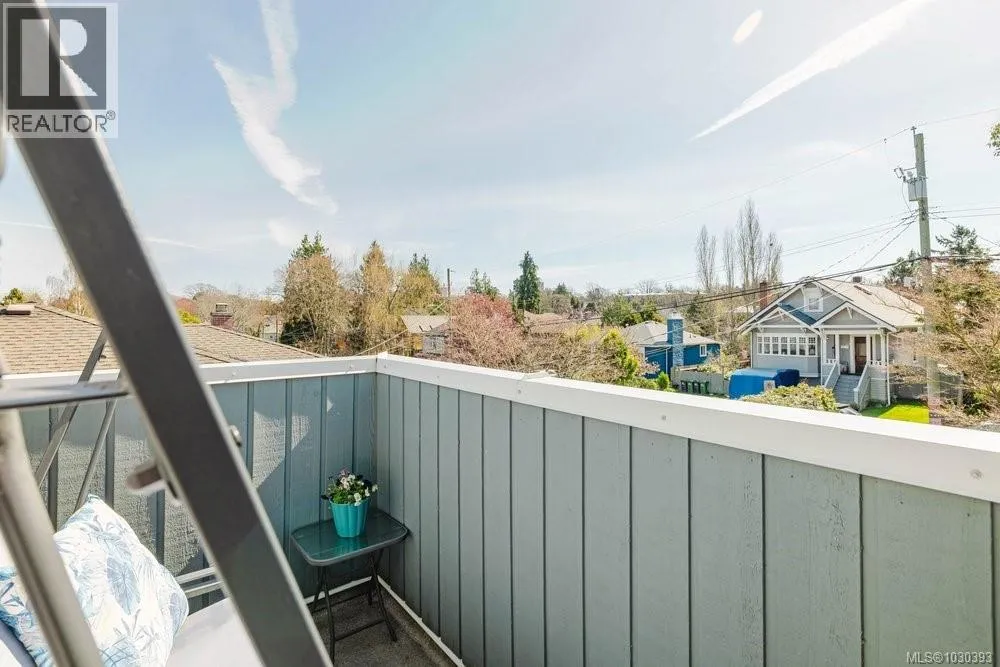 Located in the heart of vibrant Fernwood, steps to shops, cafes and theatre, lies this bright and sunny, updated, yet eclectic 2 bed 2 bath townhouse. Tucked off the main road on a quiet street, it features privacy hedges, private patio, balcony and access to a common garden (raised garden beds for personal use are allowed). Inside, soaring vaulted ceilings provide a spacious, light and airy feeling in the living room, which looks out over the whimsical and private front garden. You'll find gorgeous hickory wood floors throughout the main floor, an updated 3 pc bathroom with heated floors, updated cabinets, tile and lighting in the kitchen, and the secondary bedroom, which is soaked in natural light, has sliding door access to the patio. Upstairs is the primary bedroom and ensuite, which features two skylights and access to the south facing deck with space for a cozy outdoor couch. Ideal for those seeking an active lifestyle in a walkable, vibrant neighbourhood known for its community. (id:27476)