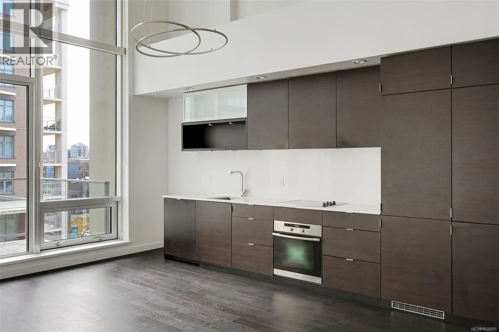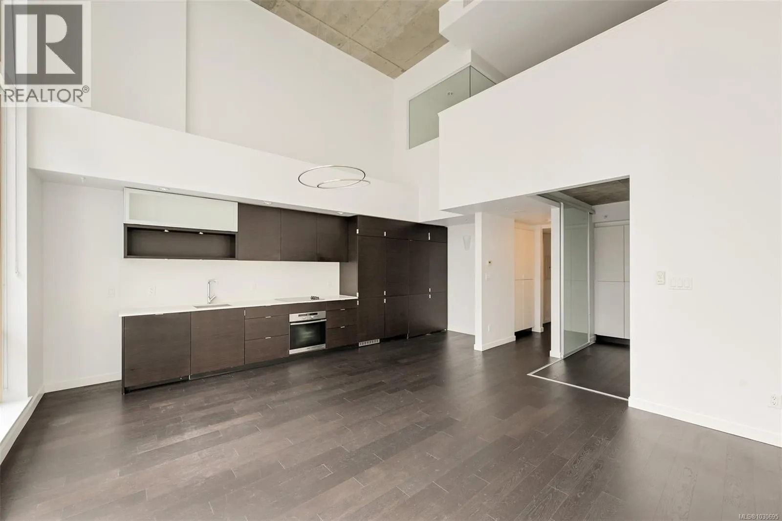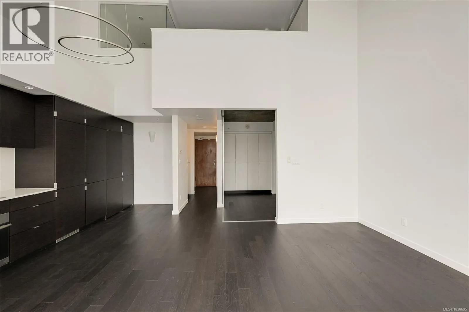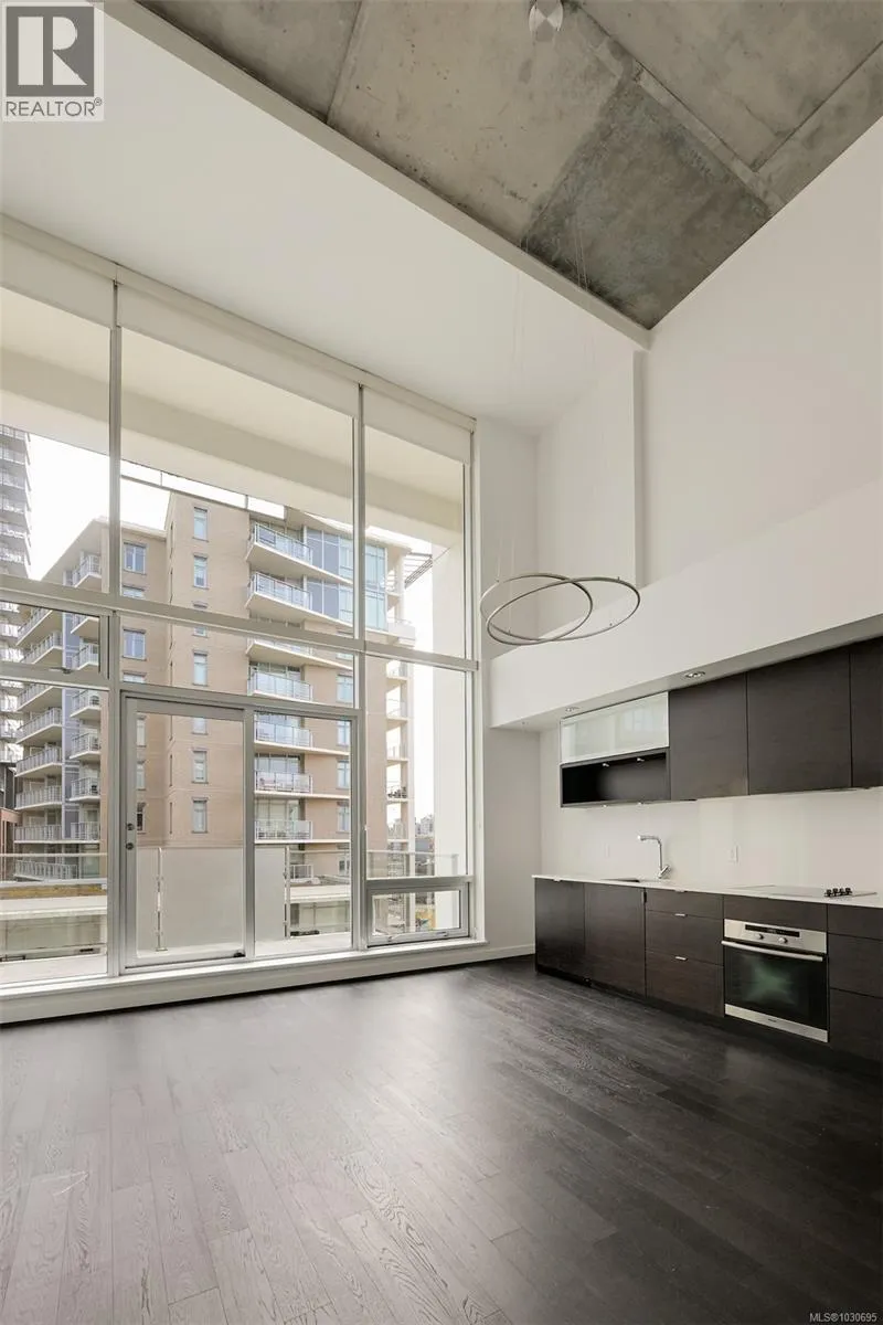 Live in style at The Hudson! This stunning east-facing loft features soaring 18-foot ceilings and oversized windows that flood the space with beautiful natural light. Step out onto your private balcony, BBQs are allowed, perfect for morning coffee or evening entertaining. It's rare to have a Condo availlable with a Balcony in the Hudson! Rich dark hardwood floors and sleek matching kitchen cabinetry create a modern, sophisticated feel, while the carpeted upper loft and heated tile floors in the bathroom add warmth and comfort. The open-concept kitchen is designed to impress, complete with stainless steel appliances, a hidden cabinet-front fridge and dishwasher, crisp white countertops, and contemporary open shelving. Whether hosting friends or enjoying a quiet night in, the flexible layout adapts effortlessly to your lifestyle. Upstairs, the spacious primary retreat offers a luxurious five-piece ensuite featuring dual sinks, a deep soaker tub, and a walk-in shower. Ample storage is found throughout, with full-sized double closets in the bedrooms and hallway, plus an additional storage locker downstairs. Located in a pet and rental friendly building with secure underground parking & a beautiful rooftop patio with views of the Harbour. This unbeatable downtown address places shops, groceries, and everyday conveniences right at your doorstep, while keeping you steps from everything the vibrant downtown core has to offer. (id:27476)