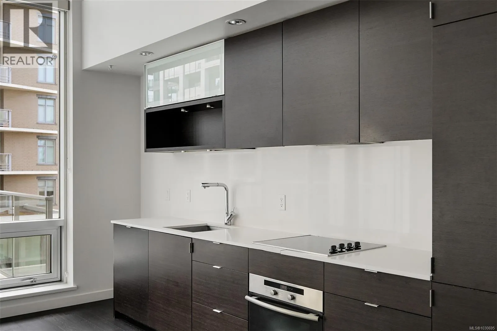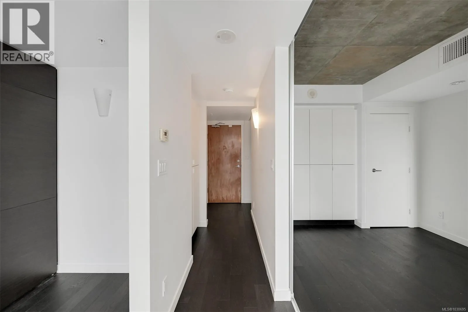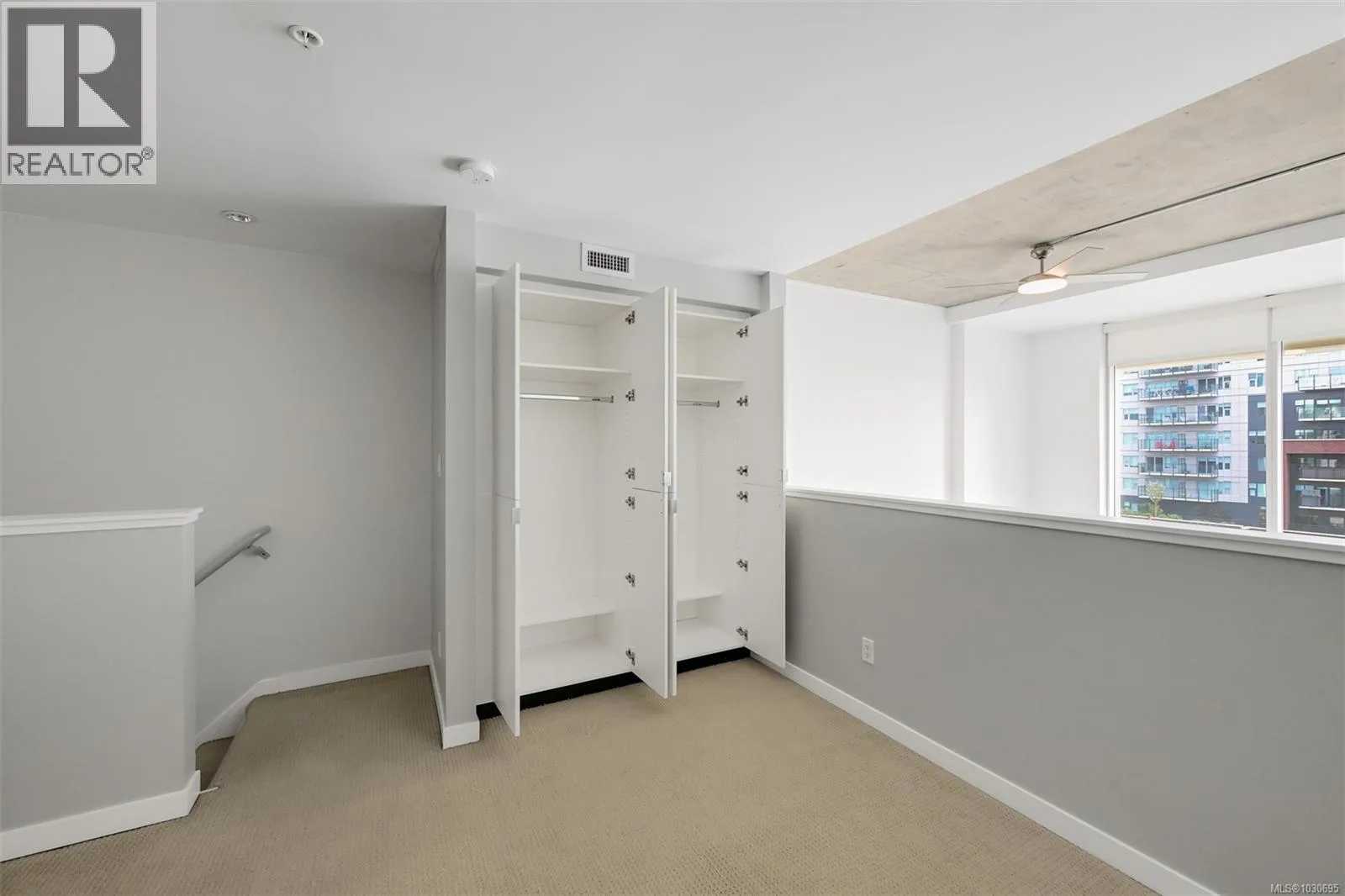Live in style at The Hudson! This stunning east-facing loft features soaring 18-foot ceilings and oversized windows that flood the space with beautiful natural light. Step out onto your private balcony, BBQs are allowed, perfect for morning coffee or evening entertaining. It's rare to have a Condo availlable with a Balcony in the Hudson! Rich dark hardwood floors and sleek matching kitchen cabinetry create a modern, sophisticated feel, while the carpeted upper loft and heated tile floors in the bathroom add warmth and comfort. The open-concept kitchen is designed to impress, complete with stainless steel appliances, a hidden cabinet-front fridge and dishwasher, crisp white countertops, and contemporary open shelving. Whether hosting friends or enjoying a quiet night in, the flexible layout adapts effortlessly to your lifestyle. Upstairs, the spacious primary retreat offers a luxurious five-piece ensuite featuring dual sinks, a deep soaker tub, and a walk-in shower. Ample storage is found throughout, with full-sized double closets in the bedrooms and hallway, plus an additional storage locker downstairs. Located in a pet and rental friendly building with secure underground parking & a beautiful rooftop patio with views of the Harbour. This unbeatable downtown address places shops, groceries, and everyday conveniences right at your doorstep, while keeping you steps from everything the vibrant downtown core has to offer. (id:27476)