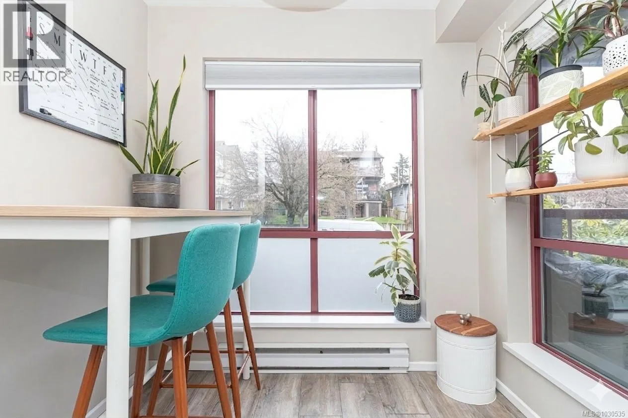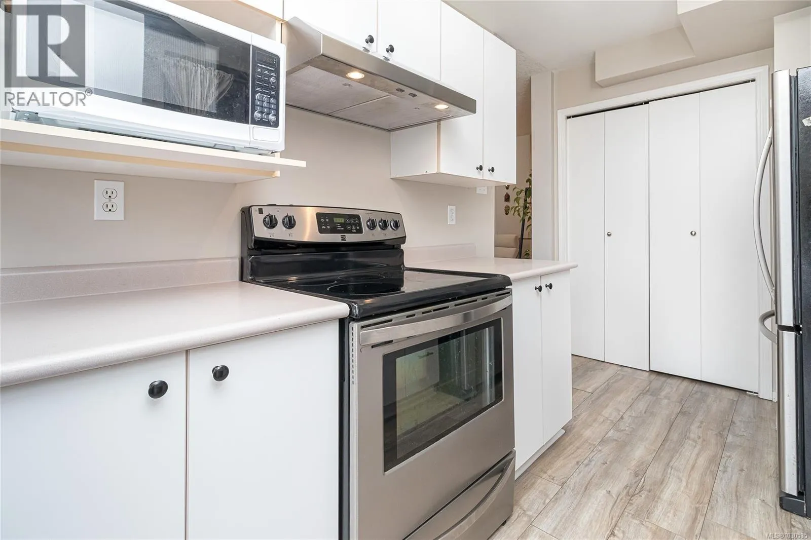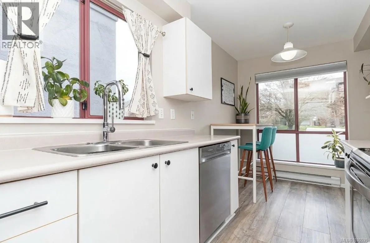 This move-in ready 2-bedroom condo offers comfort, style, and exceptional value! The bright living space features large windows, a cozy gas fireplace (included in strata fees), and access to a private balcony. Newer flooring adds a modern touch throughout. The functional kitchen includes stainless steel appliances, ample cupboard space, and a charming eat-in breakfast nook surrounded by windows. The spacious primary bedroom offers two closets, including a walk-in, along with convenient bathroom access through a pocket door. The second bedroom offers flexibility and would also make a great office or den. Additional highlights include in-suite laundry, a separate storage locker, bike storage, and secure underground parking. The well-managed strata boasts a contingency fund of over $3.4M! Set on a quiet, tree-lined no-through street, this home is just minutes from the Gorge Waterway, Galloping Goose Trail, and Mayfair Mall. With easy access to transit, itâs an ideal option for students or commuters heading to UVic, Camosun, Downtown, and beyond. (id:27476)
