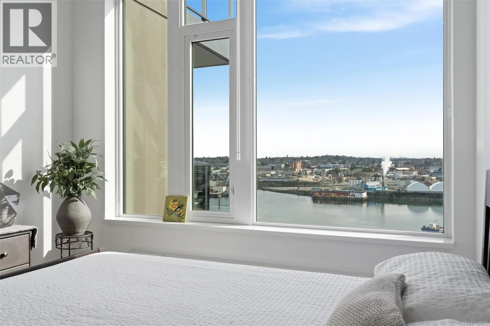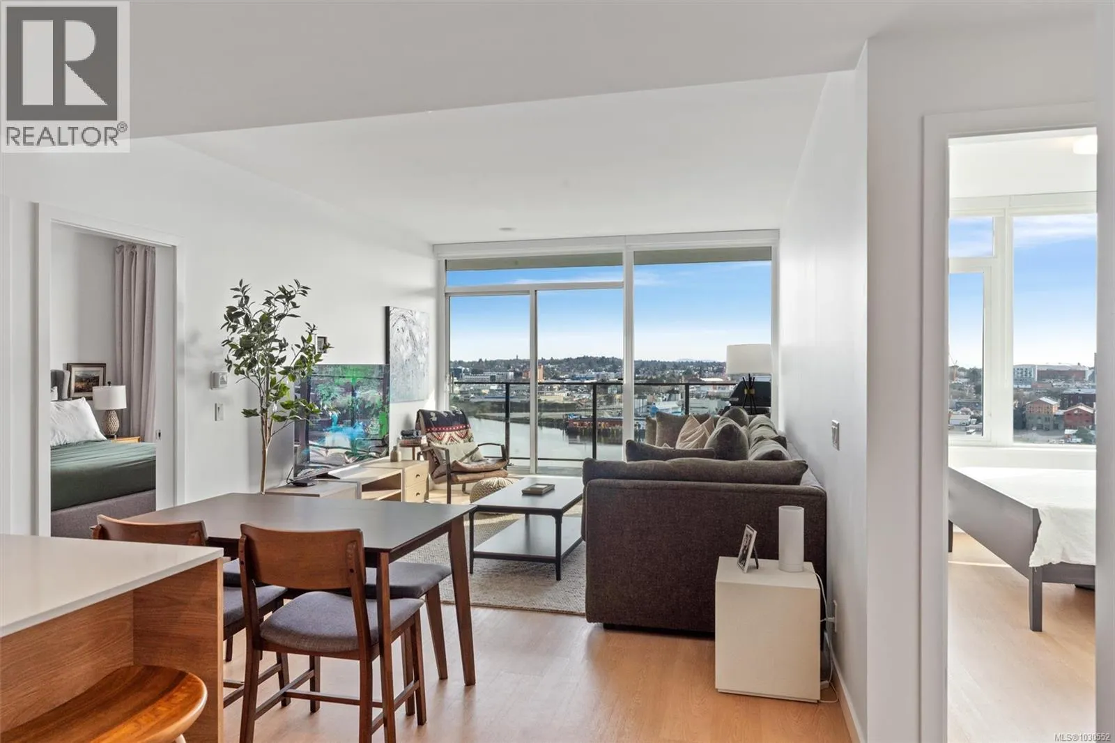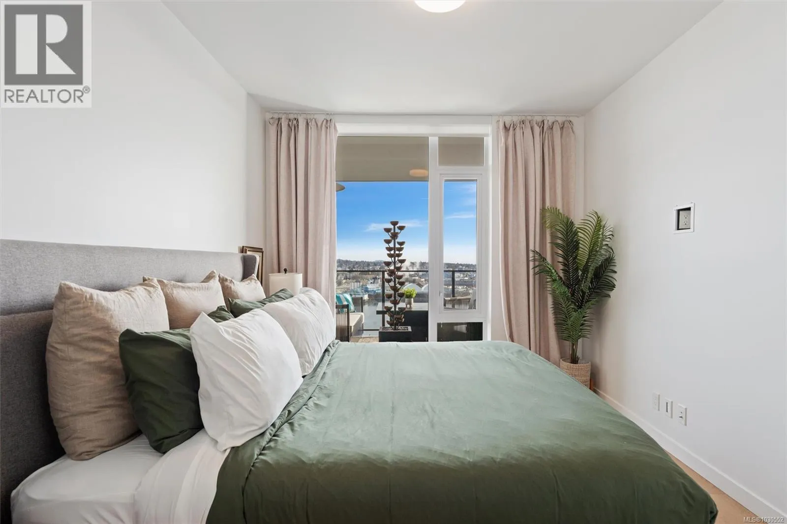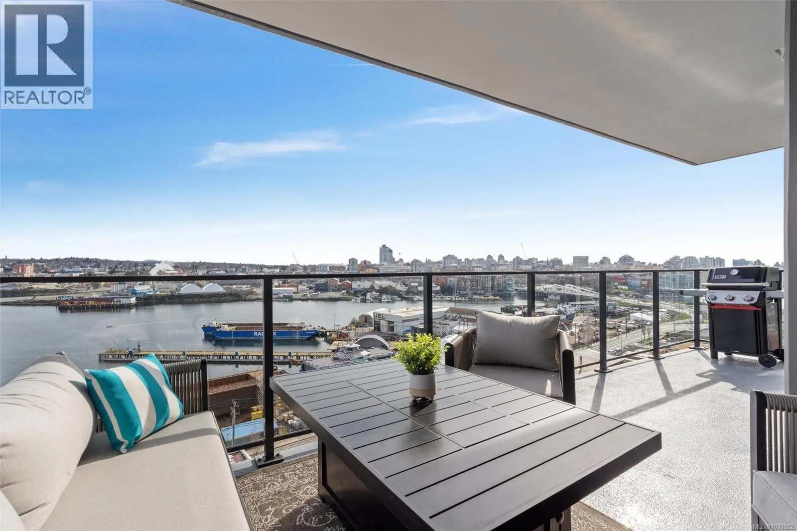 An exceptionally rare opportunity to own a fully private sub-penthouse with TWO parking stalls (including EV charging). Enjoy jaw-dropping panoramic views of Victoriaâs iconic landmarks, plus Mount Baker. Perched high above Vic West in a 2023 Bosa-built residence, this 2 bed, 2 bath home blends refined luxury with eco-conscious design. The open-concept layout is filled with natural light and flows onto a spacious private patio, perfect for entertaining against a stunning ocean and city backdrop. Interior features include Italian cabinetry, quartz countertops, premium appliances and luxury vinyl plank flooring. Includes secure parking and a large storage locker. Top-tier amenities: Rooftop terrace with BBQs, an impressive fitness centre, social lounge, secure bike storage, motorcycle parking and a dog wash station (dogs welcome, no size restrictions). Morning coffee becomes a quiet ritual as the sun rises over Mount Baker, casting a golden glow across the stunning Victoria skyline, this is more than a home, itâs a dreamlike escape. (id:27476)