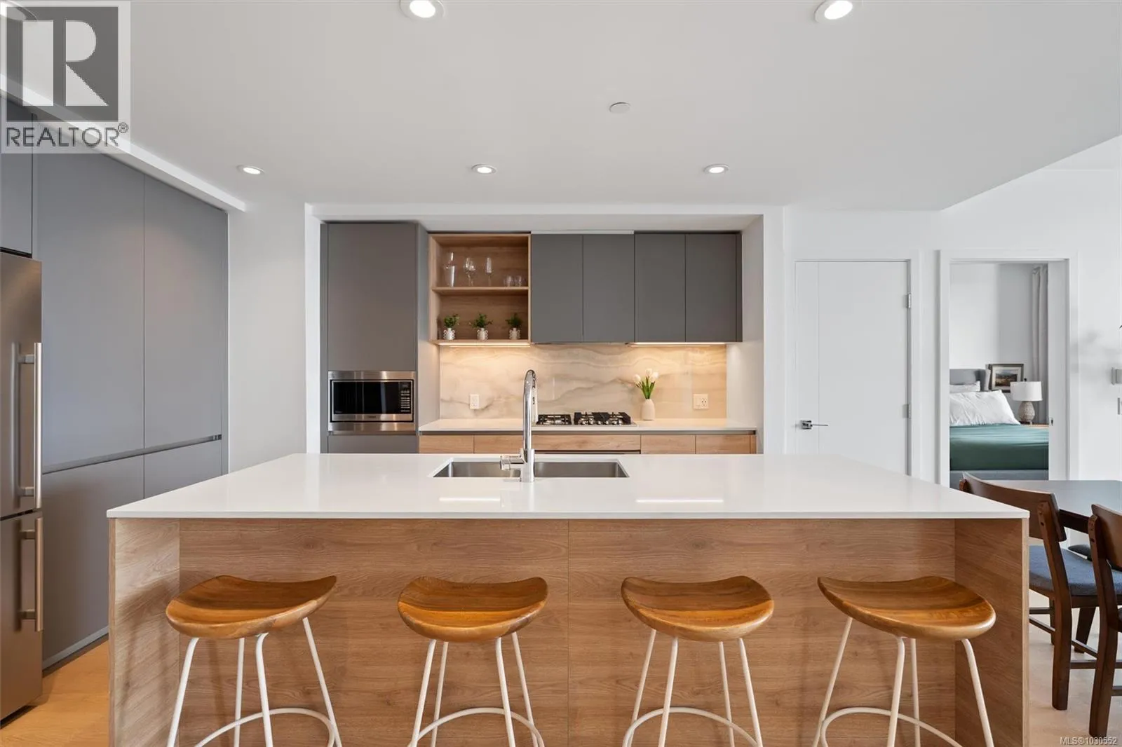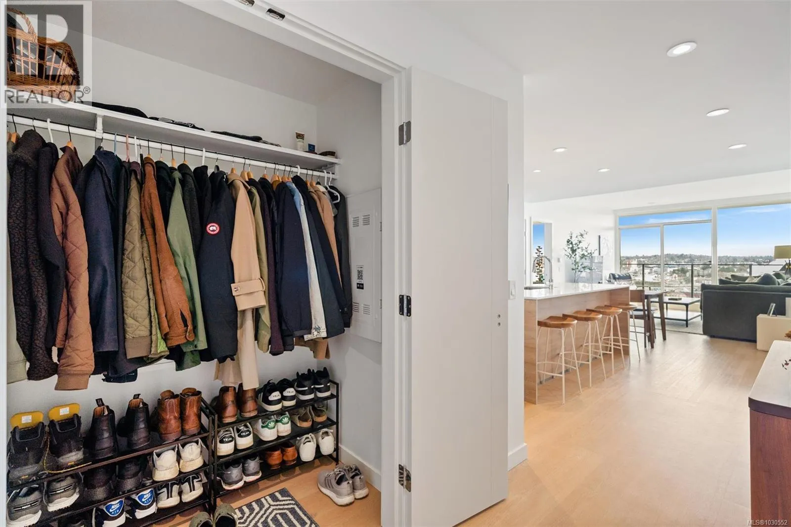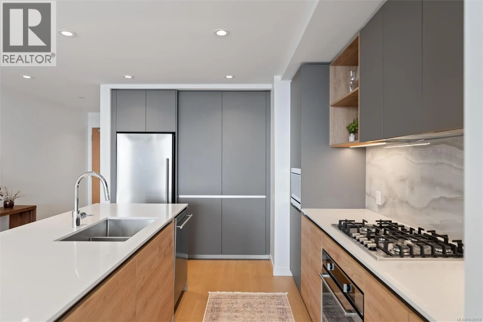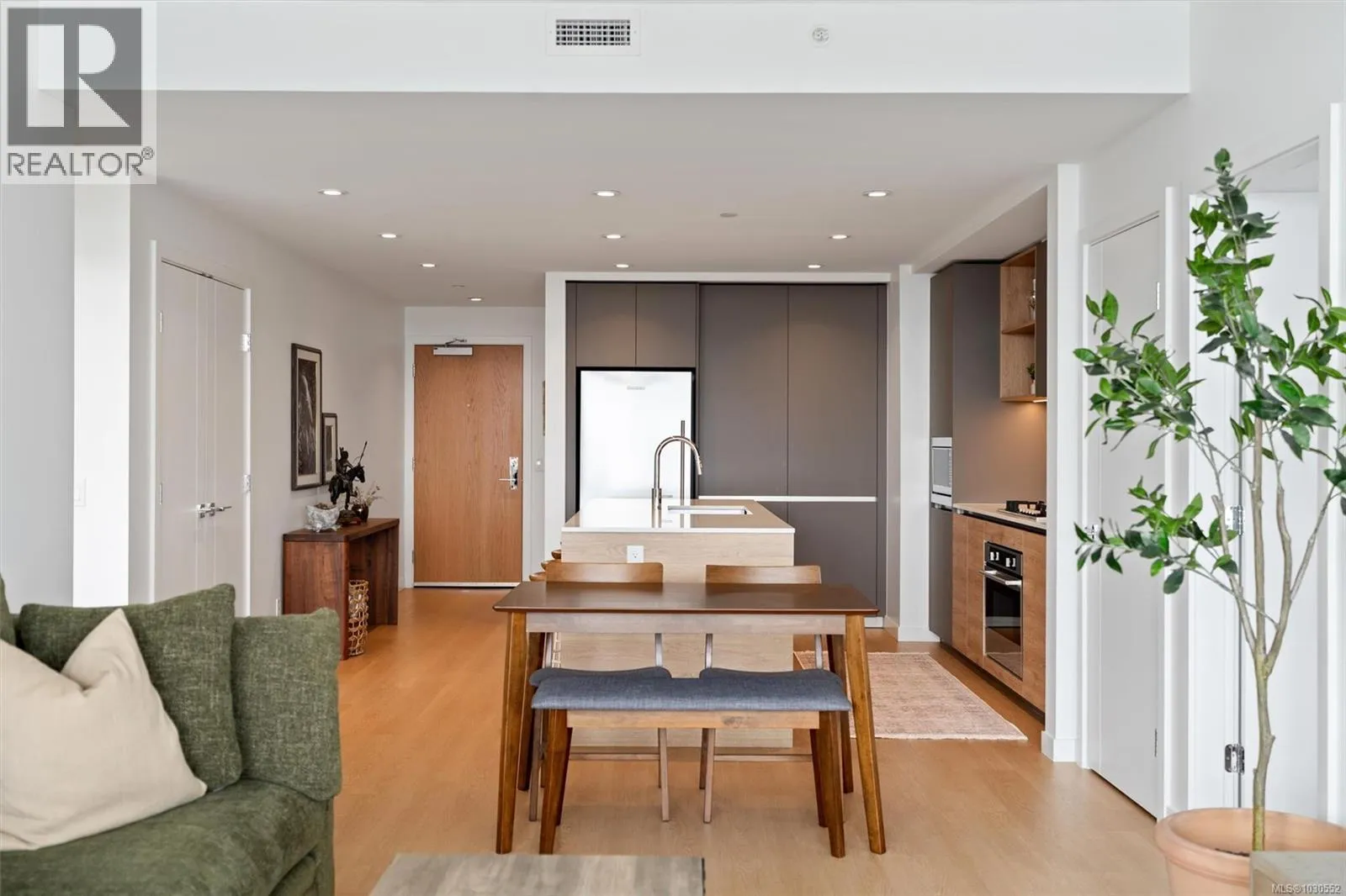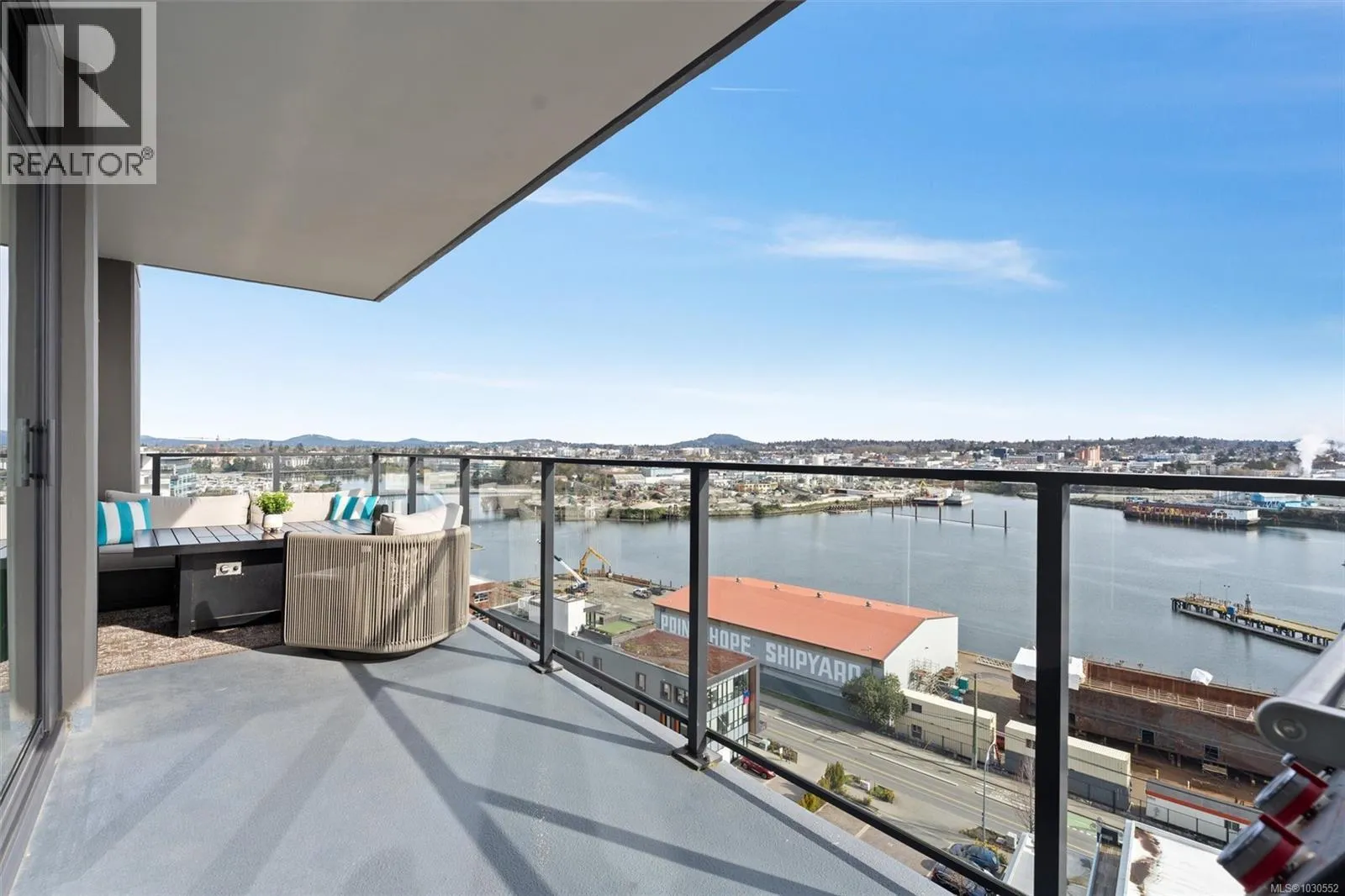An exceptionally rare opportunity to own a fully private sub-penthouse with TWO parking stalls (including EV charging). Enjoy jaw-dropping panoramic views of Victoriaâs iconic landmarks, plus Mount Baker. Perched high above Vic West in a 2023 Bosa-built residence, this 2 bed, 2 bath home blends refined luxury with eco-conscious design. The open-concept layout is filled with natural light and flows onto a spacious private patio, perfect for entertaining against a stunning ocean and city backdrop. Interior features include Italian cabinetry, quartz countertops, premium appliances and luxury vinyl plank flooring. Includes secure parking and a large storage locker. Top-tier amenities: Rooftop terrace with BBQs, an impressive fitness centre, social lounge, secure bike storage, motorcycle parking and a dog wash station (dogs welcome, no size restrictions). Morning coffee becomes a quiet ritual as the sun rises over Mount Baker, casting a golden glow across the stunning Victoria skyline, this is more than a home, itâs a dreamlike escape. (id:27476)