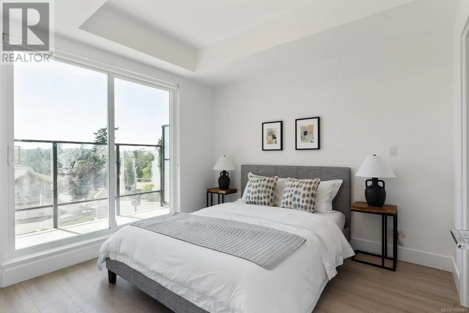 Welcome to The Royaleâan exclusive collection of 55 condominium residences redefining modern living. Nestled in a prime location, The Royale seamlessly blends contemporary design w/ timeless elegance. Beautiful two-bedroom condo units, each home is thoughtfully designed w/ high-end finishes, spacious layouts, high ceilings, & private patios. This corner unit gets plenty of natural light, making the space feel even more open & inviting. Premium details include stainless steel Samsung appliances & European-inspired wide plank flooring. Situated in the vibrant community of View Royal, The Royale places you just minutes from parks, beaches, schools, shopping, Victoria General Hospital, & the convenience of a boutique market right on the ground floor. Experience the perfect balance of urban accessibility & the natural beauty of Vancouver Island. Additional highlights include secured parking, w/ specific units including storage, & strata fees covering both heat & air conditioning. Price+GST. (id:27476)