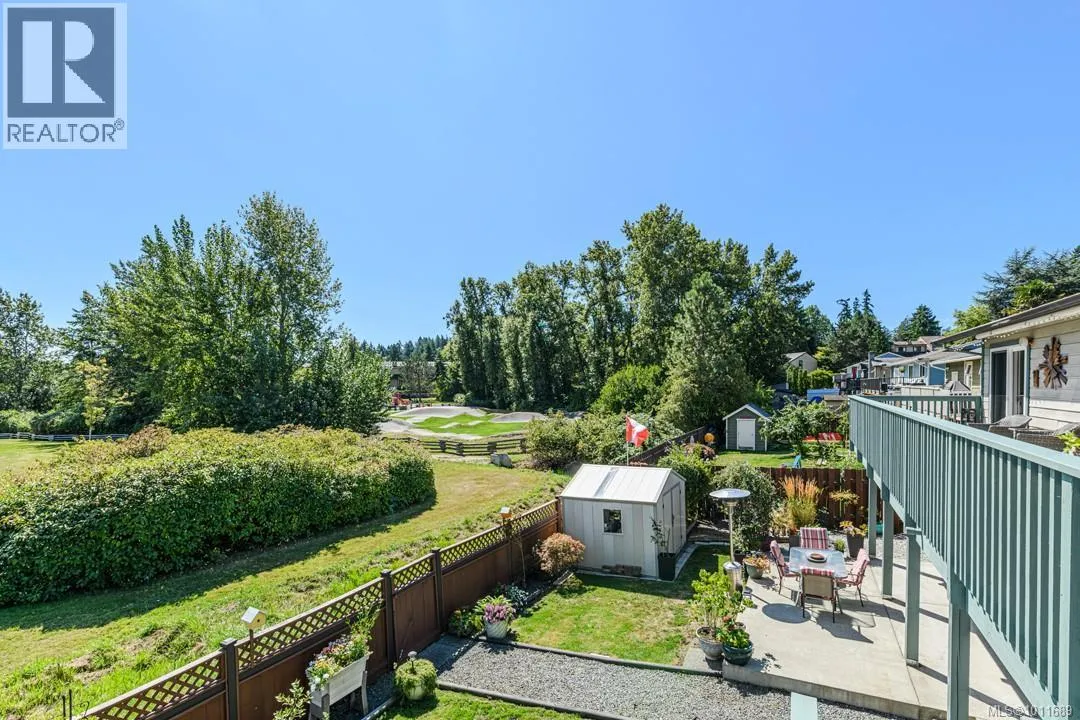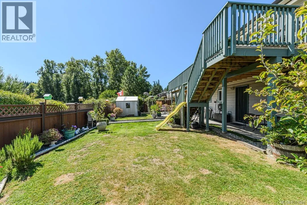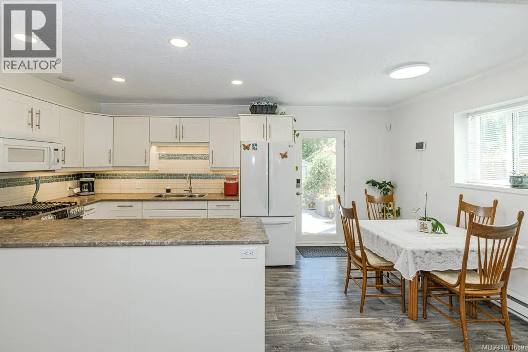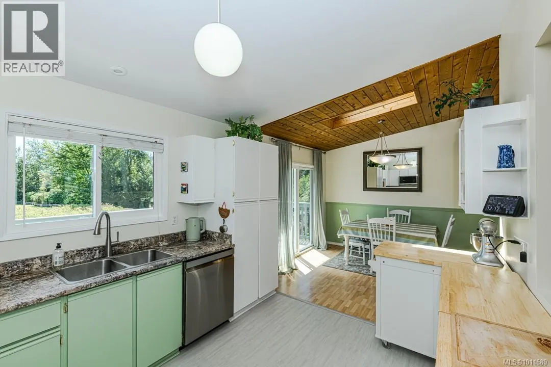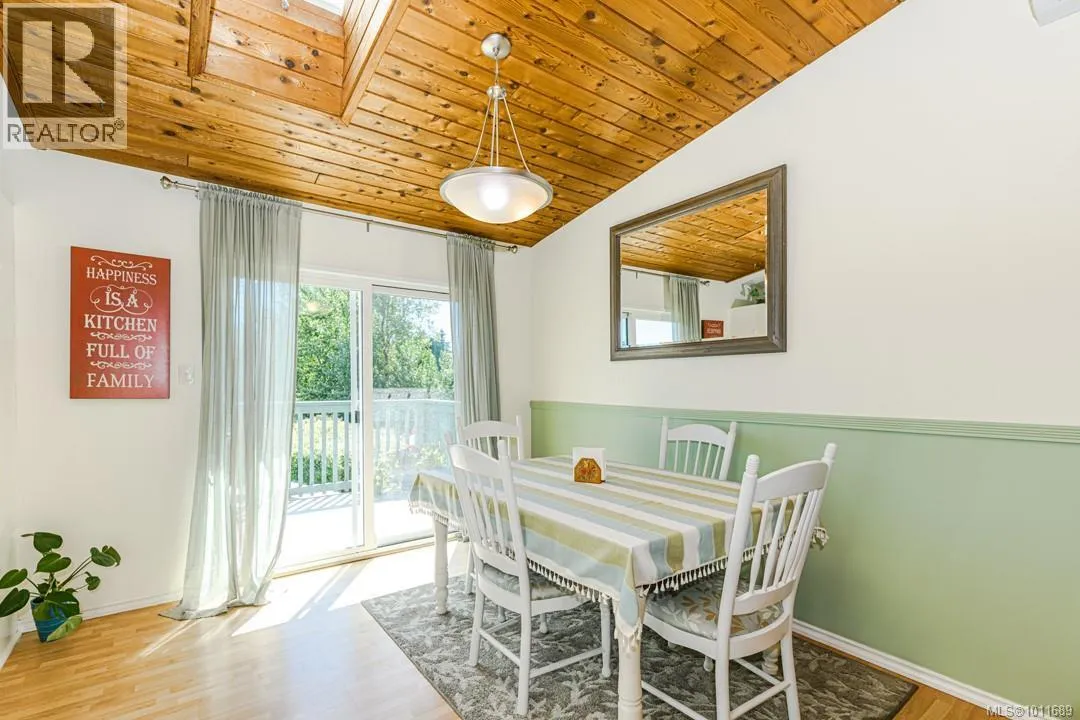 Home Business? Check out the flexible inlaw area w/kitchenette, 3pc bath & sep entrance, perfect for guests & extended family. Updated, multi-generational home on a no thru street, VR Park is an extension of the beautiful level backyard. Enjoy level entry living w/3 beds/2 baths up & income in legal 2 bed/1 bath suite. Open-concept layout shows off the vaulted wood ceilings & handsome rock fireplace, with spacious dining opening to new deck & fully fenced, landscaped yard. Skylights&lrg windows let the light flood in year round while the heat pump regulates for comfort. Other great updates include: 8yr roof, hot water on demand!, 2 laundries, & newer appliances. Yard offers fruit trees, gardens, generous storage, covered patio for the suite & locked gate to park for endless opportunities to bike, play, & off-leash walks. Ample parking for tenants or toys. Close to schools, E&N Trail, Eagle Creek shopping, Thetis Lake & local beaches, in a quiet, family-friendly neighbourhood! (id:27476)