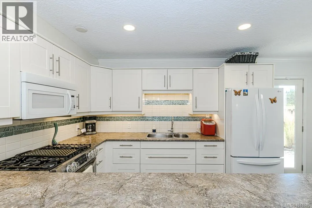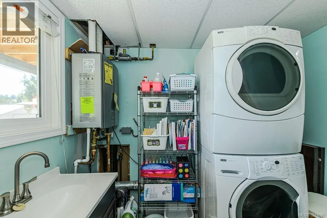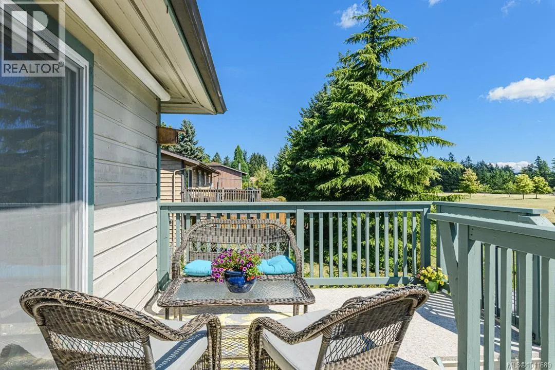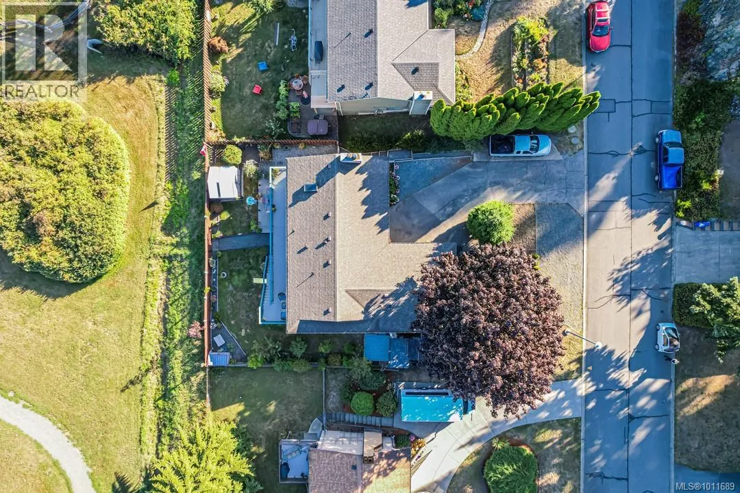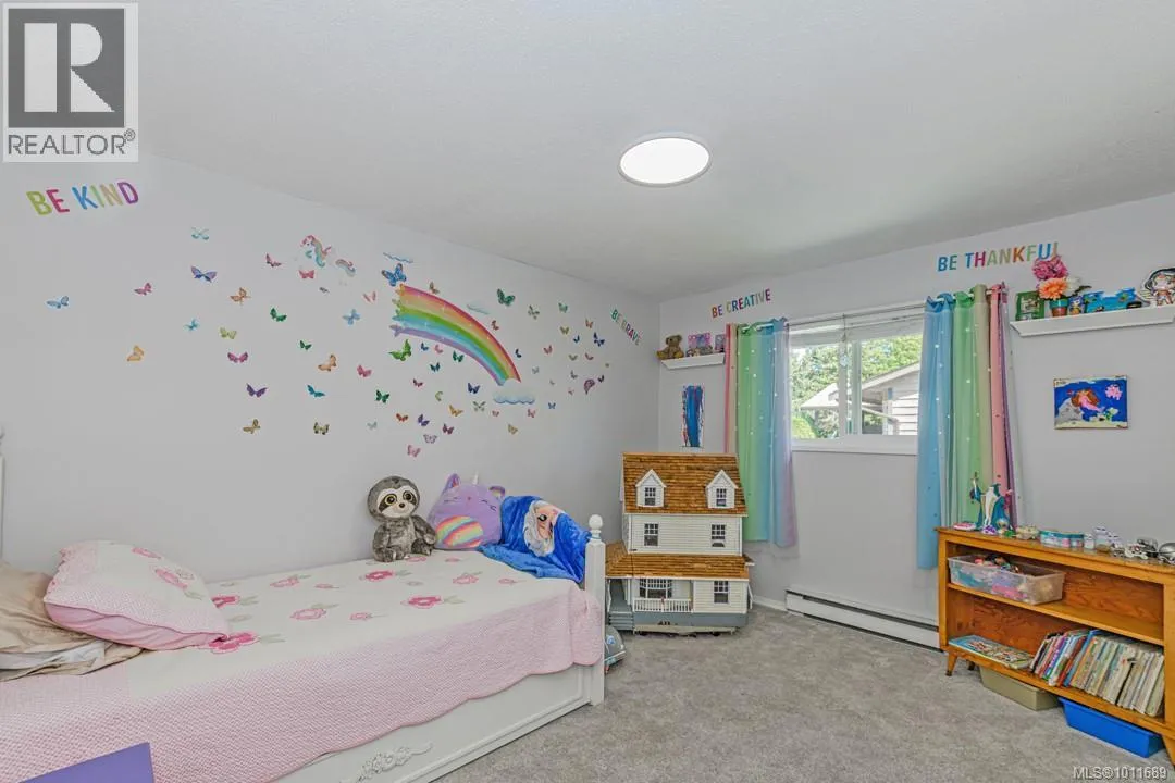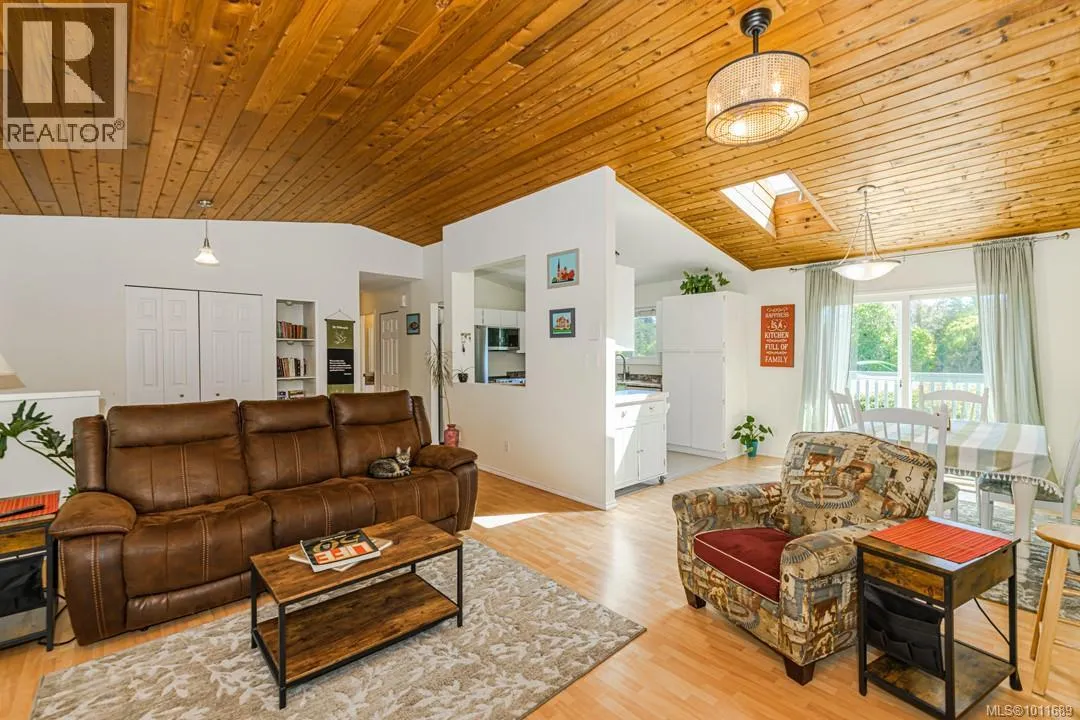 Home Business? Check out the flexible inlaw area w/kitchenette, 3pc bath & sep entrance, perfect for guests & extended family. Updated, multi-generational home on a no thru street, VR Park is an extension of the beautiful level backyard. Enjoy level entry living w/3 beds/2 baths up & income in legal 2 bed/1 bath suite. Open-concept layout shows off the vaulted wood ceilings & handsome rock fireplace, with spacious dining opening to new deck & fully fenced, landscaped yard. Skylights&lrg windows let the light flood in year round while the heat pump regulates for comfort. Other great updates include: 8yr roof, hot water on demand!, 2 laundries, & newer appliances. Yard offers fruit trees, gardens, generous storage, covered patio for the suite & locked gate to park for endless opportunities to bike, play, & off-leash walks. Ample parking for tenants or toys. Close to schools, E&N Trail, Eagle Creek shopping, Thetis Lake & local beaches, in a quiet, family-friendly neighbourhood! (id:27476)