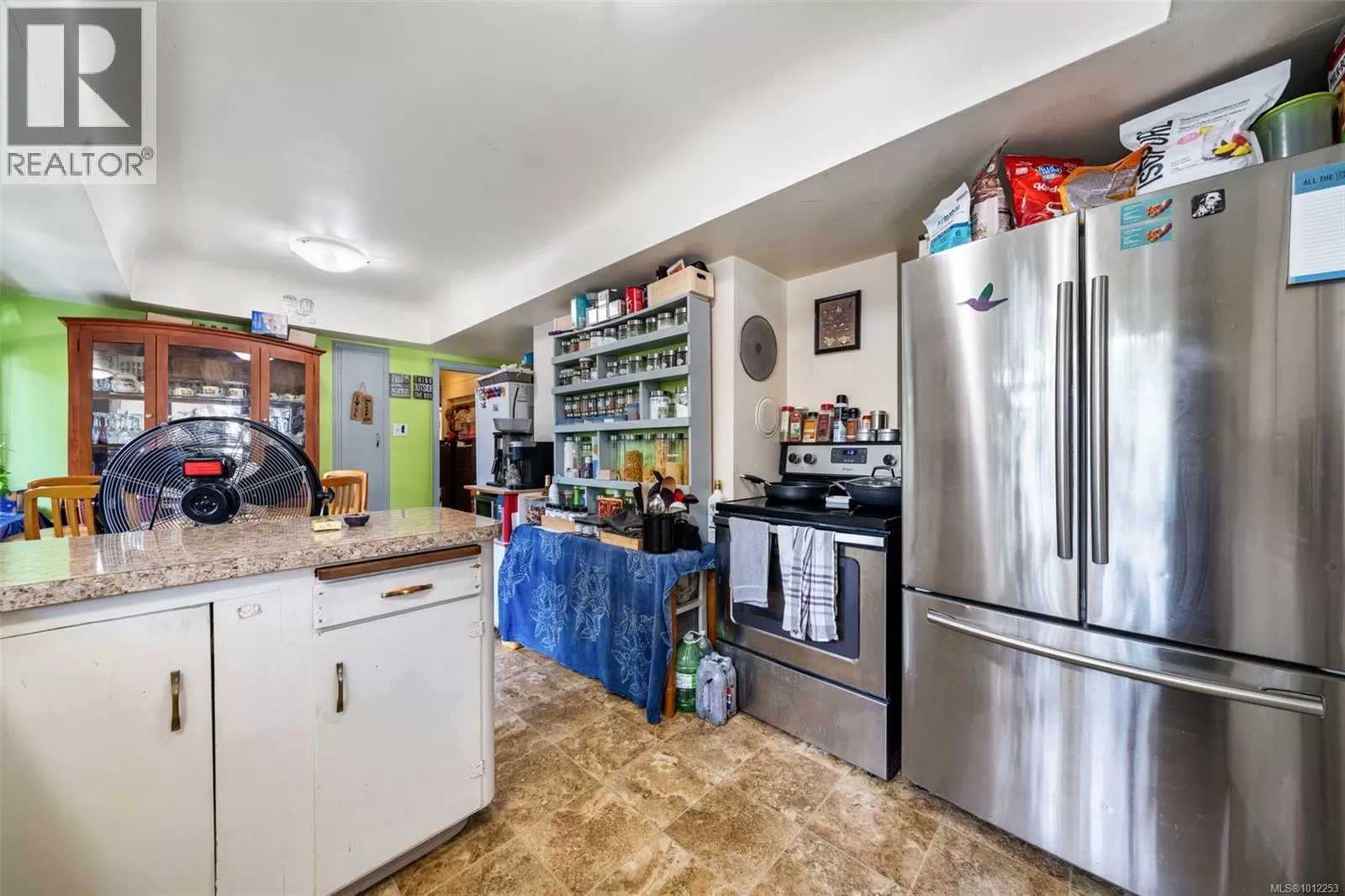Welcome to 215 Suzanne Place, a charming family home tucked away on a quiet no-through road. Set on an expansive 12,197 sq. ft. lot with two driveways, this property offers ample parking and a spacious fenced yardâperfect for kids, pets, and entertaining. The main level features 3 bedrooms, a 4-piece bath and a bright living room with oversized windows. Downstairs, a self-contained 2-bedroom suite with 4-piece bath provides excellent flexibility for extended family or rental income. Features include two inviting brick-encased fireplaces, coved ceilings, and elegant picture railings, adding delightful character to the space. Recent updates ensure peace of mind, including a brand-new roof, two hot water tanks, perimeter drain work, and vinyl windows. Conveniently located near excellent schools, major bus routes, and the Gorge Waterway, this home combines comfort and practicality in one of Victoriaâs most desirable areas. (id:27476)
