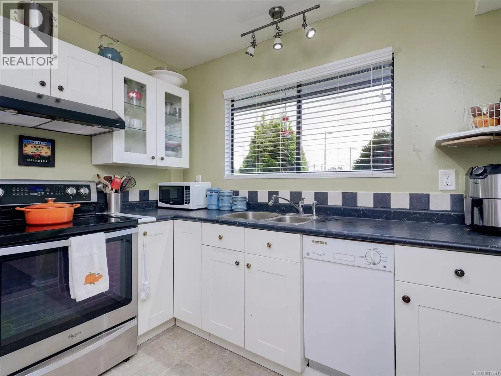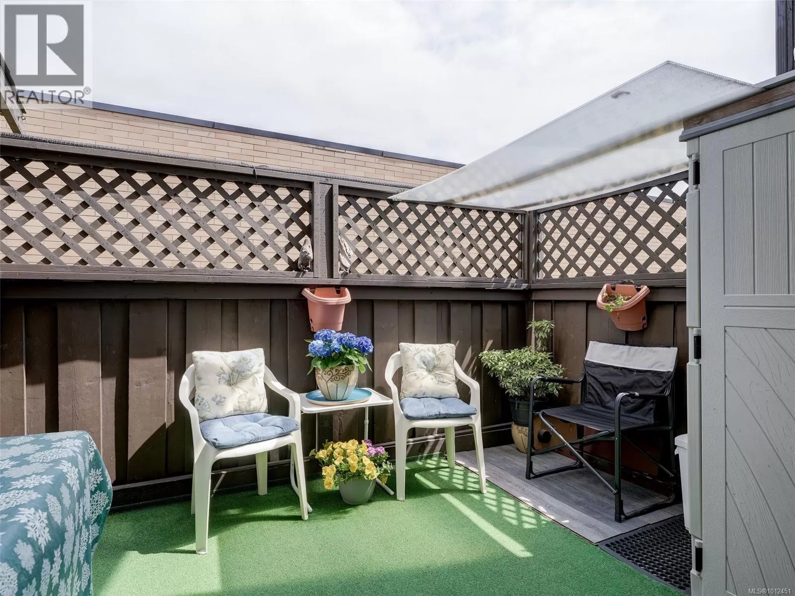 This well maintained home features an Ikea kitchen with newer stainless steel appliances, laminate flooring downstairs, spacious living room and dining area. 2 bedrooms upstairs. Nice size fully fenced private patio + balcony upstairs. Freshly painted 3 years ago. Some views of the Gorge Waterway. The townhouse is located in a quiet section of the complex and is completely private - no neighbours looking on to the unit. Established friendly complex with pets and rentals allowed. Excellent location, walking distance to a shopping centre, with bus stop at the door, easy access to the highway and 10 minutes drive to Downtown Victoria. This is a charming 2 bedroom + den, 2 bathroom townhouse in a great central location. Great property for those looking to purchase and move from renting. (id:27476)