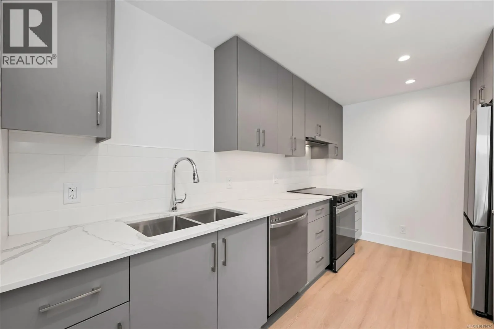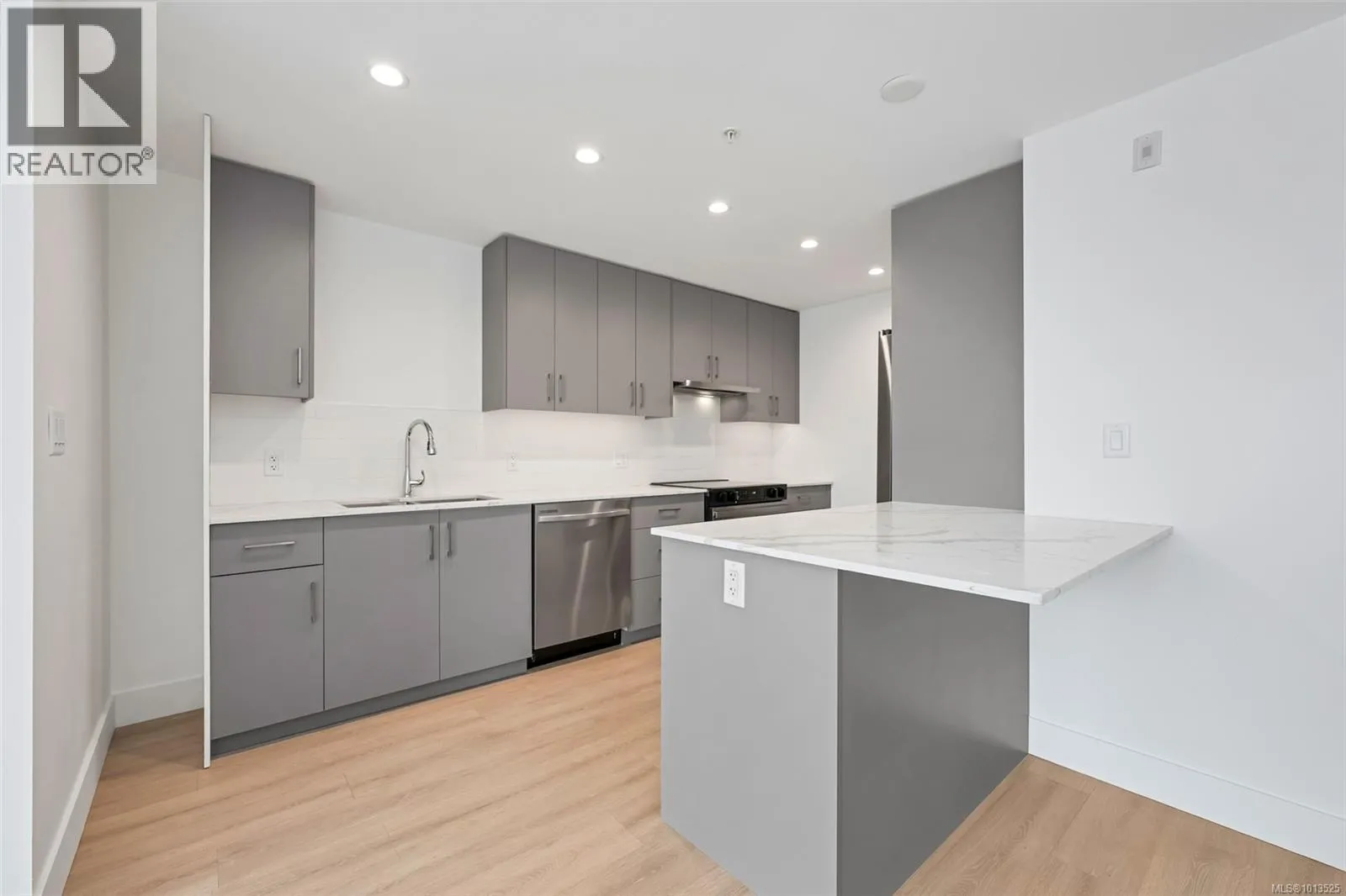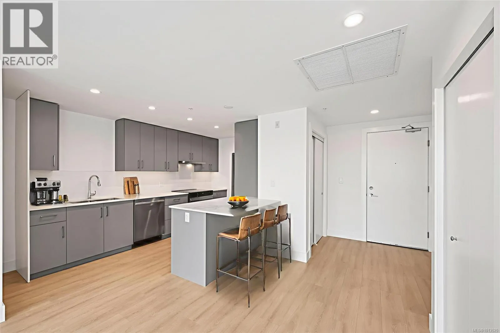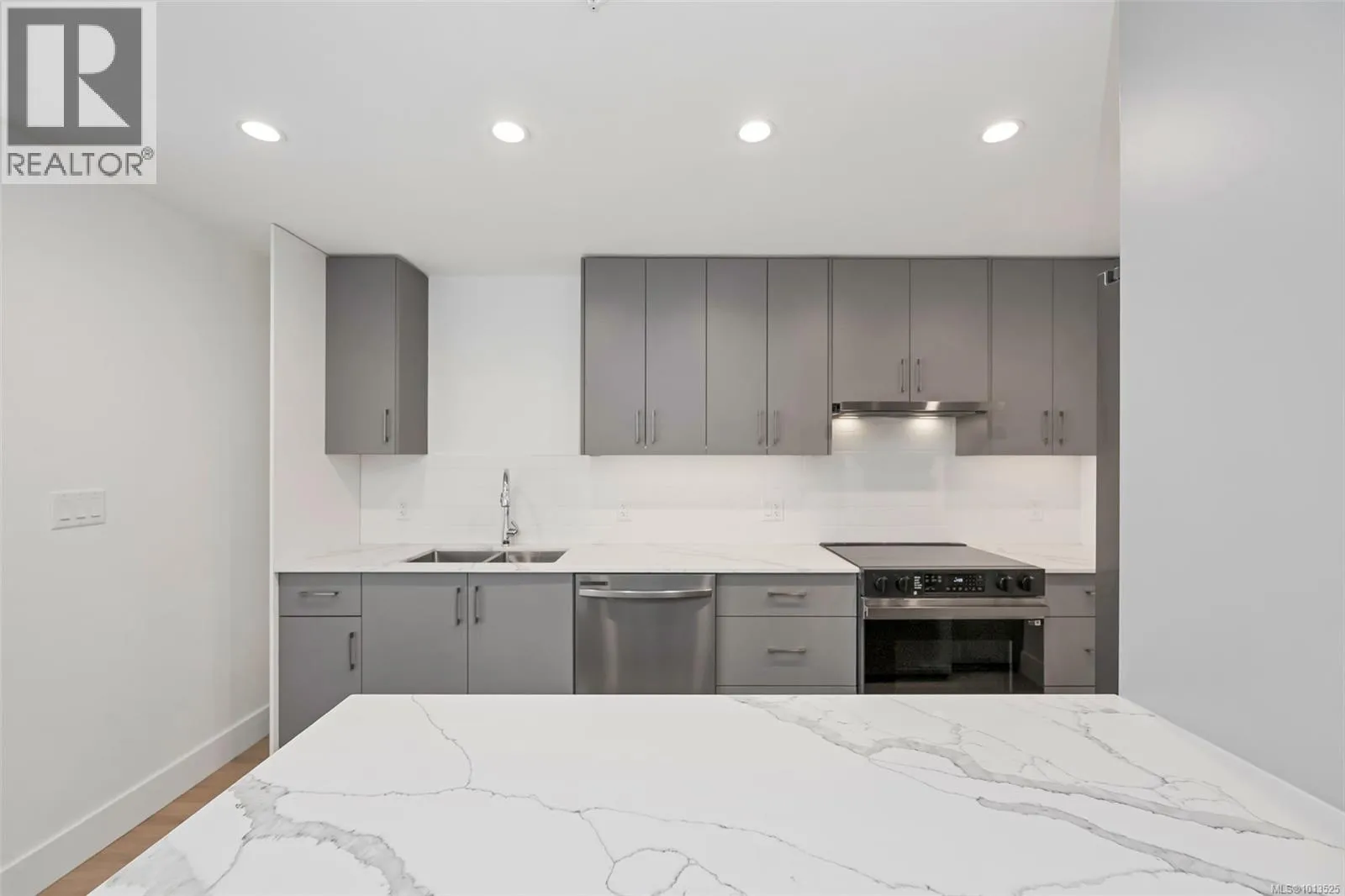 No GST! Move in today with 2 parking stalls at The Royale, an exclusive collection of 55 modern condominium residences in the heart of View Royal. This spacious two-bedroom + Den home offers an open layout with oversized windows and a large 150 sq. ft balcony with a water viewâperfect for relaxing or entertaining. Premium finishes include stainless steel Samsung appliances, European-inspired wide plank flooring, and strata fees that cover both heat and air conditioning. Additional highlights include secured parking and a separated storage space. Enjoy the ideal balance of urban convenience and West Coast lifestyle with parks, beaches, schools, shopping, Victoria General Hospital, and a boutique market all just minutes awayâyour new lifestyle starts here at The Royale. (id:27476)