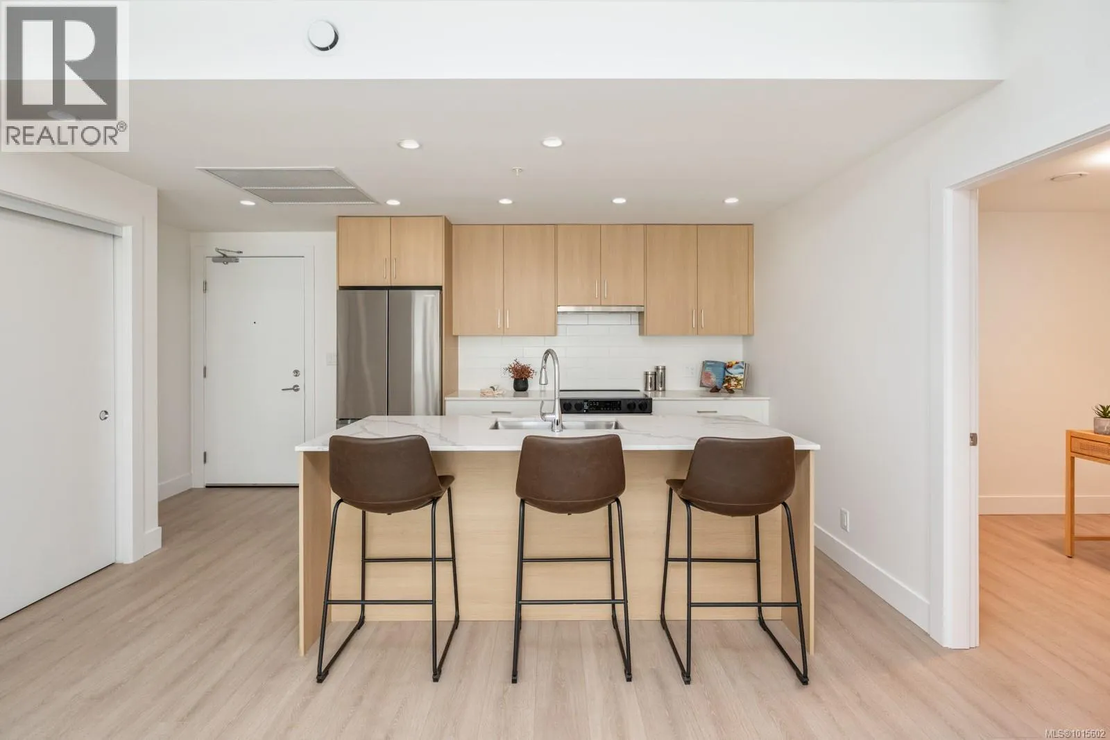 Welcome to The Royaleâan exclusive collection of 55 condominium residences redefining modern living. Nestled in a prime location, The Royale seamlessly blends contemporary design w/ timeless elegance. Beautiful two-bedroom condo units, each home is thoughtfully designed w/ high-end finishes, spacious layouts, high ceilings, & private patios. This corner unit gets plenty of natural light, making the space feel even more open & inviting. Premium details include stainless steel Samsung appliances & European-inspired wide plank flooring. Situated in the vibrant community of View Royal, The Royale places you just minutes from parks, beaches, schools, shopping, Victoria General Hospital, & the convenience of a boutique market right on the ground floor. Experience the perfect balance of urban accessibility & the natural beauty of Vancouver Island. Additional highlights include secured parking, w/ specific units including storage, & strata fees covering both heat & air conditioning. Price+GST. (id:27476)