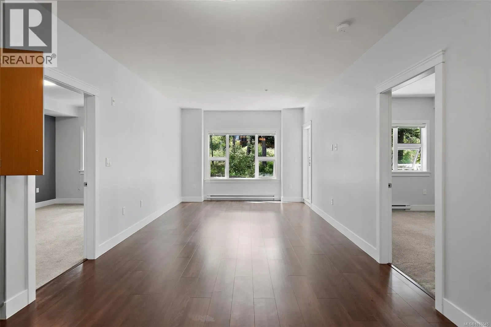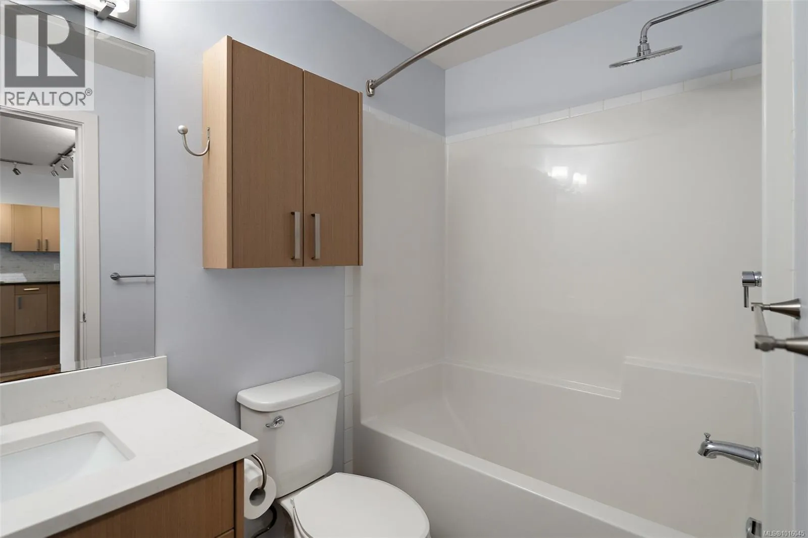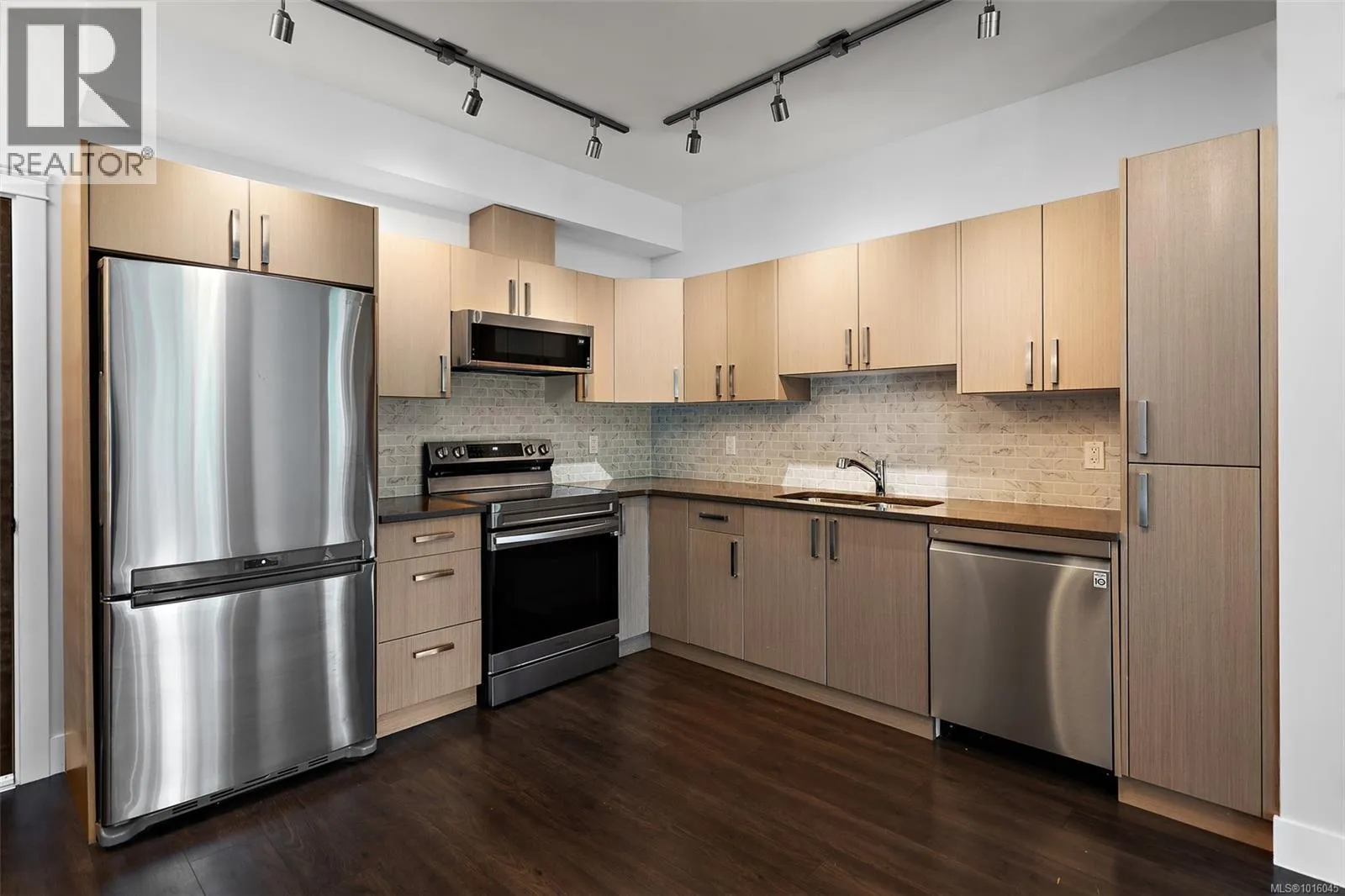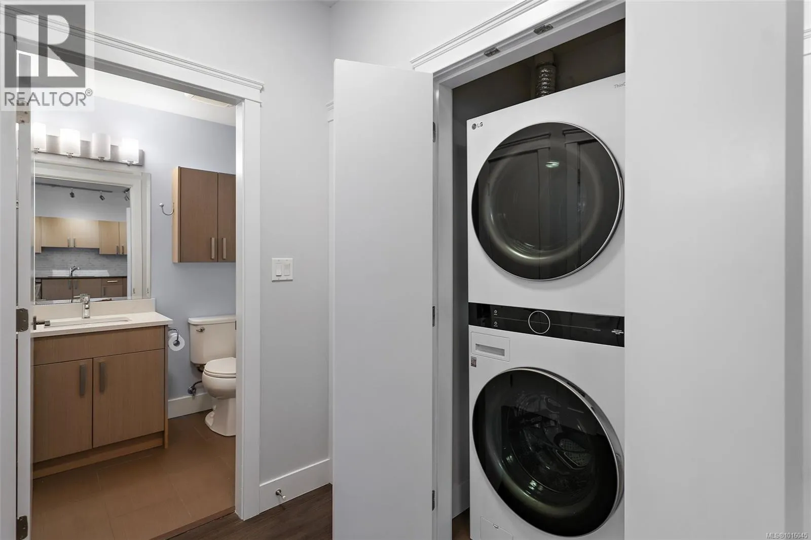 NO PET WEIGHT RESTRICTIONS. Enjoy this spacious open floor plan 2 bed, 2 bath, extremely private home with 9' ceilings. Freshly painted, Quartz stone counter tops, under mounted sink, updated stainless appliances, updated in-suite laundry, soft close cabinetry, laminate flooring, in floor radiant heat, rain water shower head and nice big bedrooms! . The view from this unit is completely private looking out into the forest setting with the sun drifting through the trees and onto your deck and walking trails at your door. Pet friendly, kid friendly and rentable, right next to the galloping goose and a few blocks from Thetis lake. Watkiss Way is a new community close to nature, schools, shopping, dining and more. Secure undergound parking also incl. (id:27476)