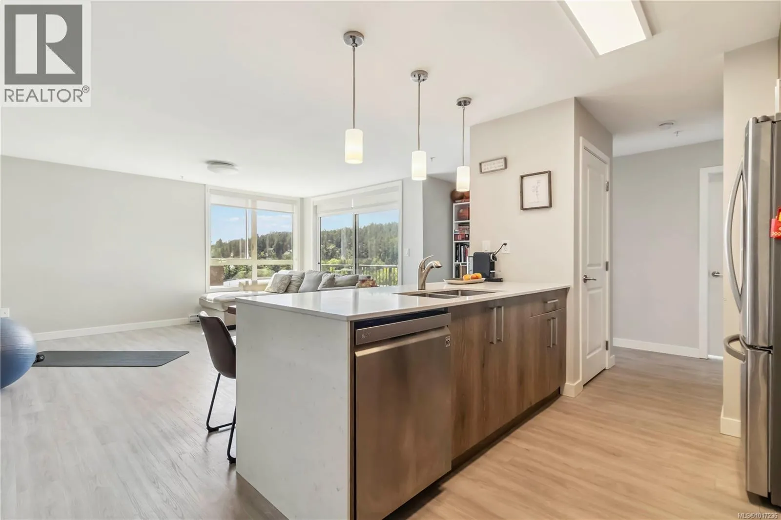 Discover the perfect balance of comfort, privacy & location in this bright & spacious 2-bedroom, 2-bathroom condo at Thetis Lakeside. With over 1,000 sq ft of thoughtfully designed living space & southwest-facing windows, this corner unit offers beautiful natural light & spectacular views. The layout offers excellent separation between living areas & bedrooms. The primary suite includes a walk-through closet & en-suite bath, while the second bedroom enjoys corner windows and an abundance of light. The open-concept kitchen features a large island perfect for entertaining & a walk-in pantry for extra storage. Full-sized laundry is conveniently located near the bedrooms & a storage locker is just steps away on the same floor. Other highlights include secure u/g parking w/bike & kayak storage, a pet-friendly complex with a dog run & visitor parking. An ideal home for owners and investors alike. Only a short stroll to Thetis Lake Park and a quick drive to everything Six Mile has to offer. (id:27476)
