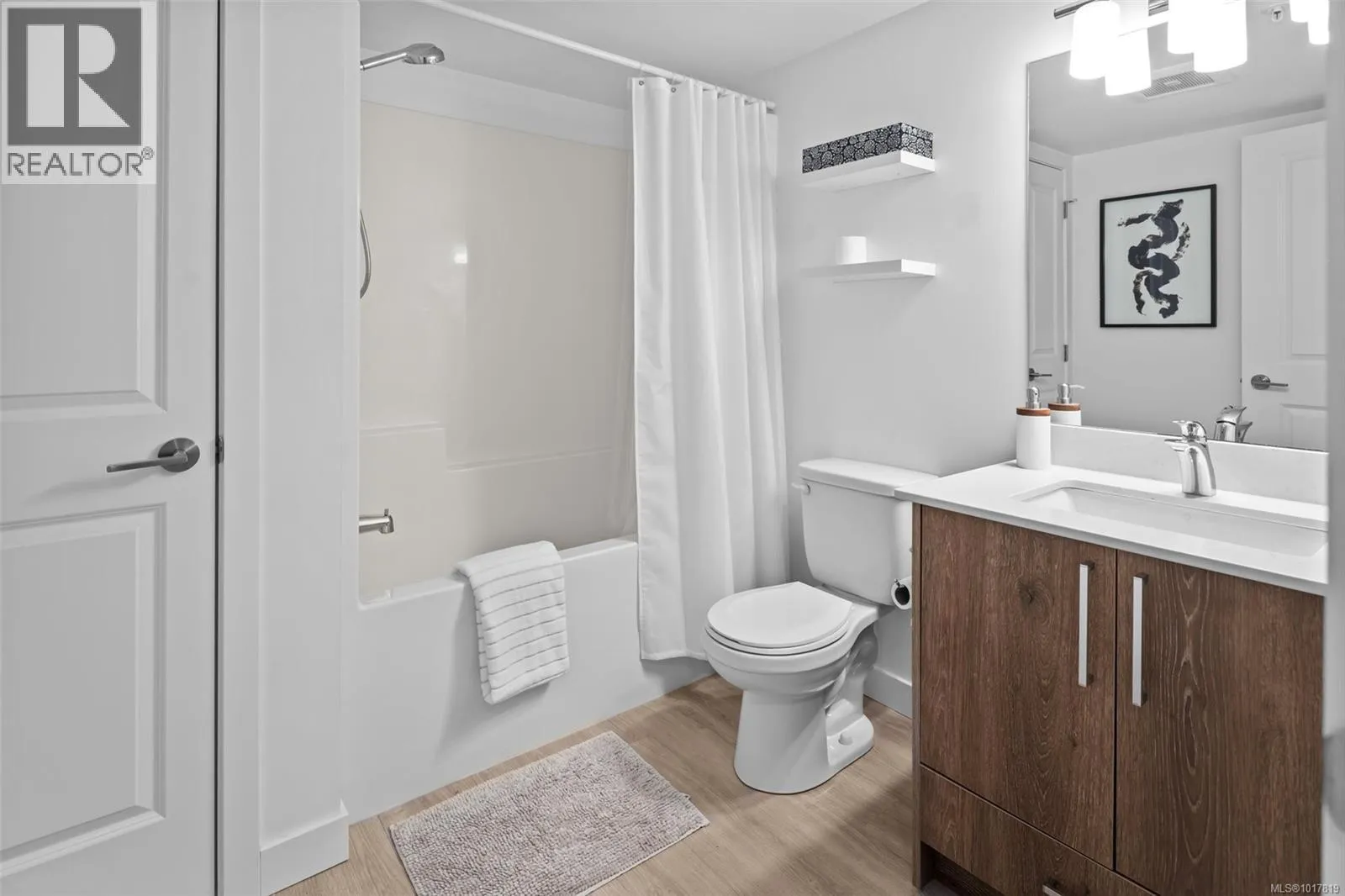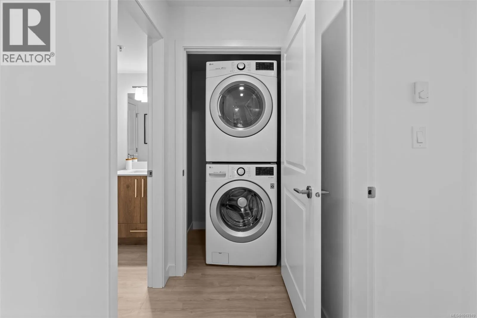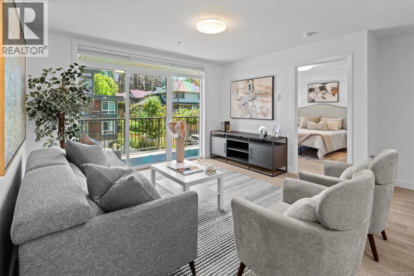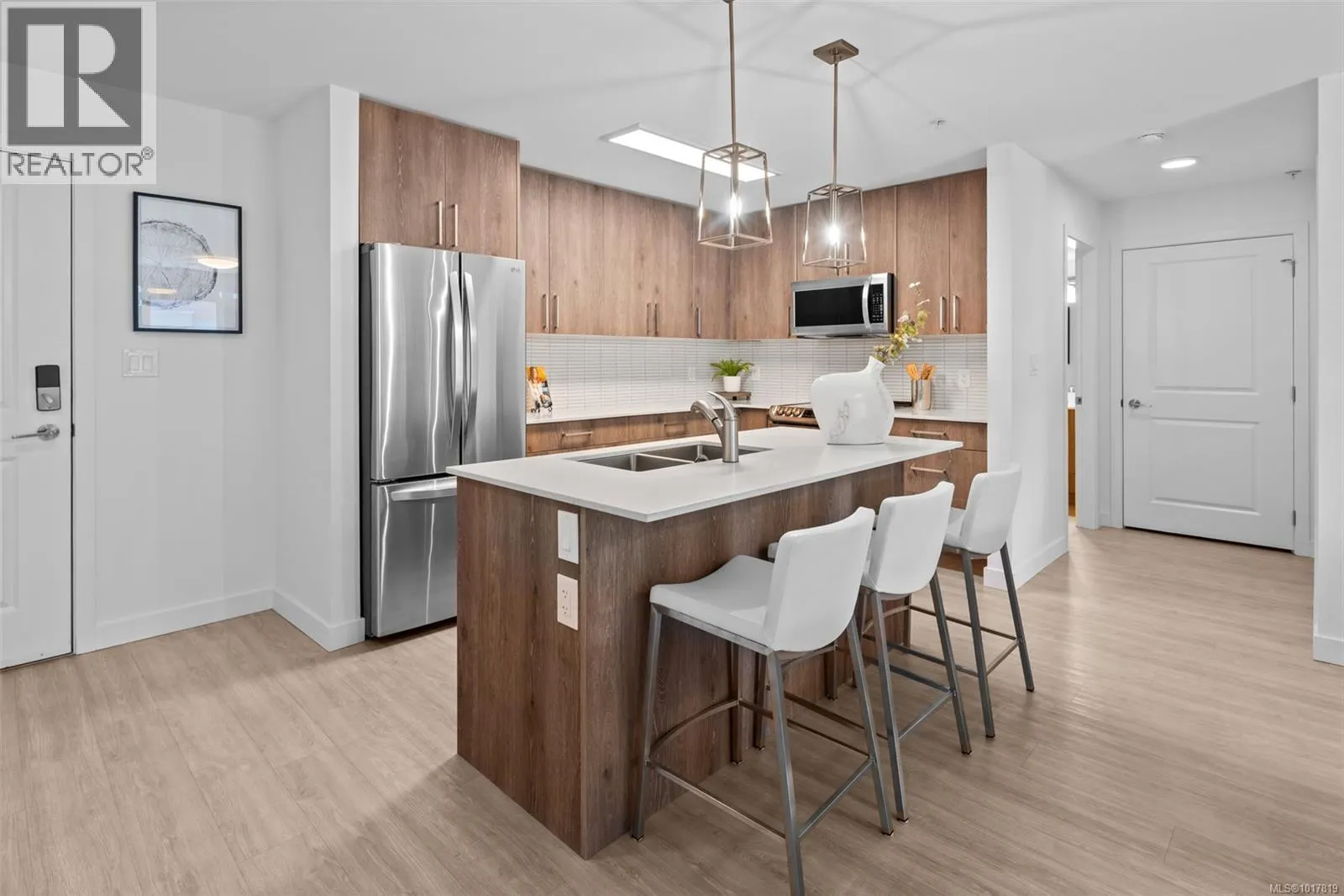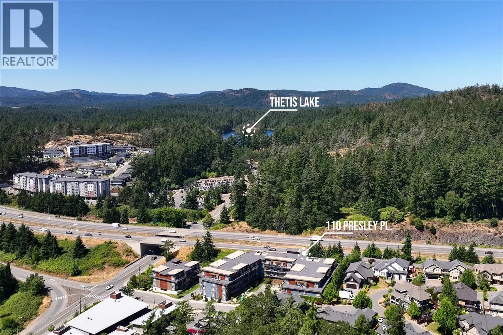 THETIS LAKESIDE â This sought-after 2019 building is known for its outdoor lifestyle appeal, direct access to Thetis Lake, and quick highway connections. This private, bright, east-facing third-floor 2-bedroom condo offers an ideal layout and LARGEST BALCONY IN BUILDING - perfect for BBQs and relaxing after a day on the trails. Interior features include quartz countertops throughout, walnut veneer cabinetry, and upgraded high-end stainless steel appliances. The oversized storage locker is located on the first floor. The pet-friendly building (no size limit for dogs) includes a 2nd-floor pet walk area, secure bike storage, two elevators (eliminating lobby waiting), and ample visitor parking. Thetis Lake and the Galloping Goose Trail are just steps away, with Costco and Millstream Village only minutes down the highway w/ quick access up island. A well-managed strata and vibrant community make this an exceptional place to call home. (id:27476)