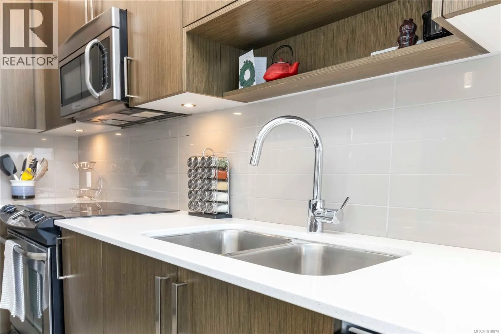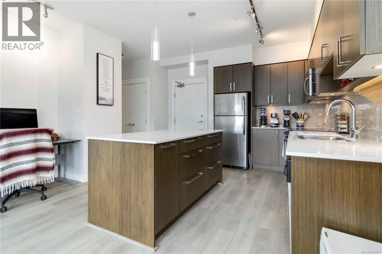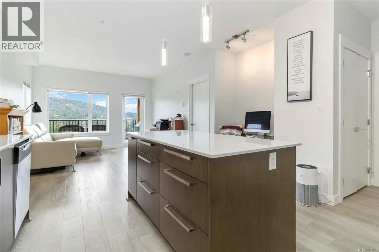 NEW PRICE! Top-floor corner unit with beautiful west-facing views! This spacious 1-bedroom, 1-bath condo offers an open-concept layout and modern updates throughout. Enjoy a gourmet kitchen with a large island, quartz countertops, tiled backsplash, and stainless steel appliances. The generous bedroom with walk-in closet, plus an office nook, 9-ft ceilings, and in-suite laundry add comfort and function. Step onto your sunny afternoon patioâperfect for BBQs! Includes parking, storage locker, and pet-friendly living. The COHO is a sought-after buildingâmove-in ready and waiting for you! Easy to show! (id:27476)