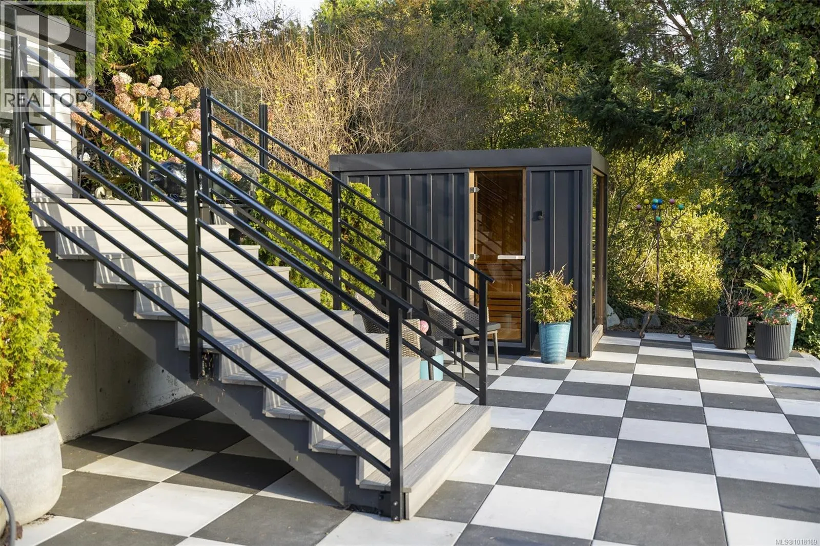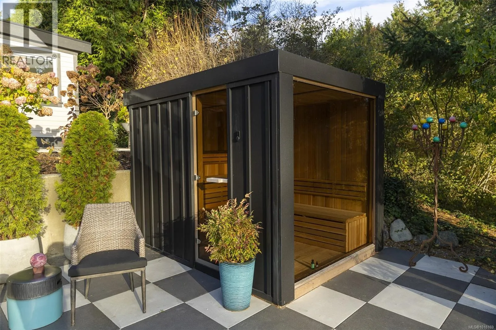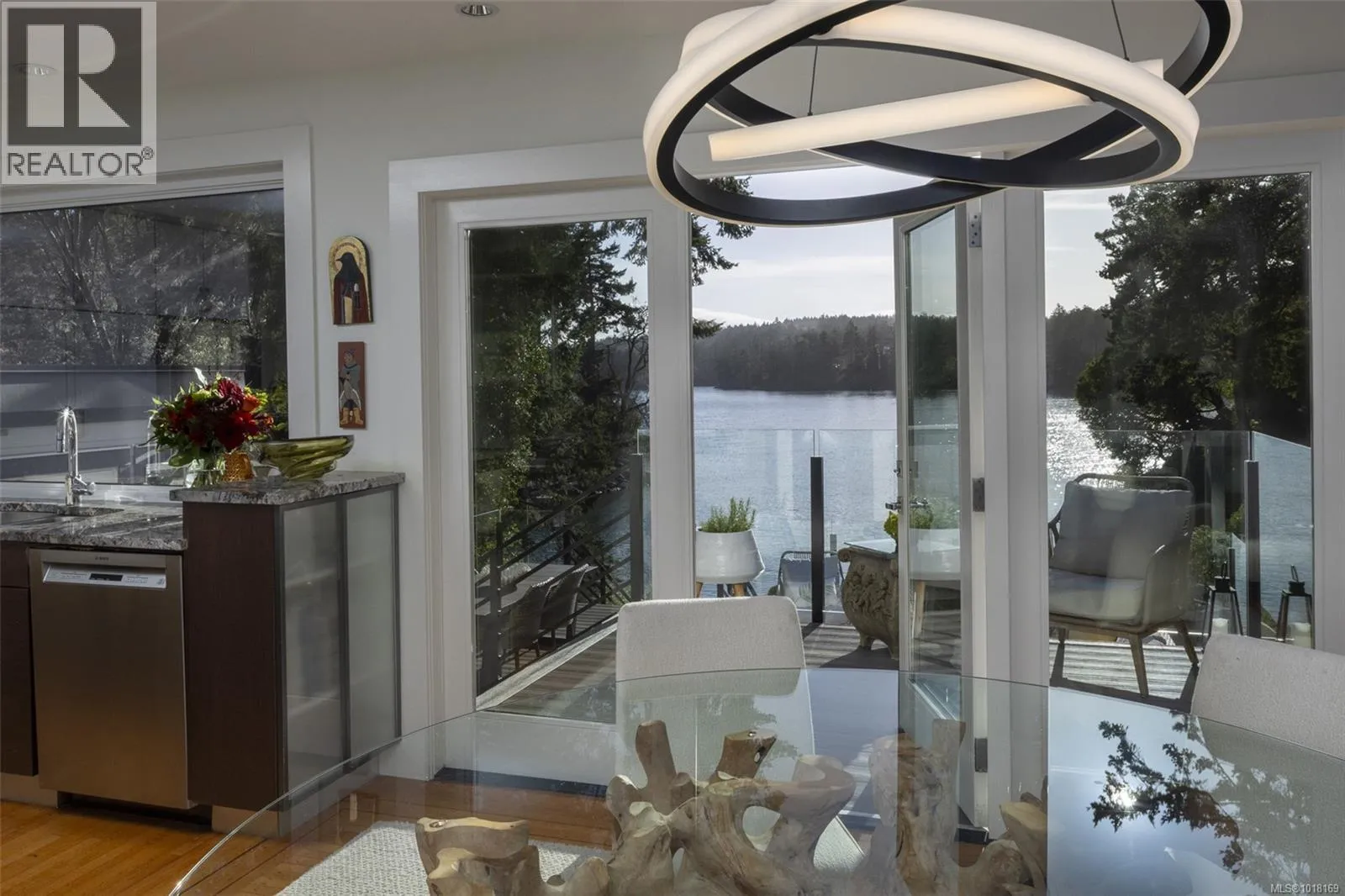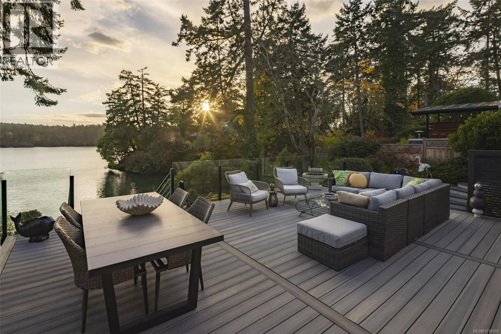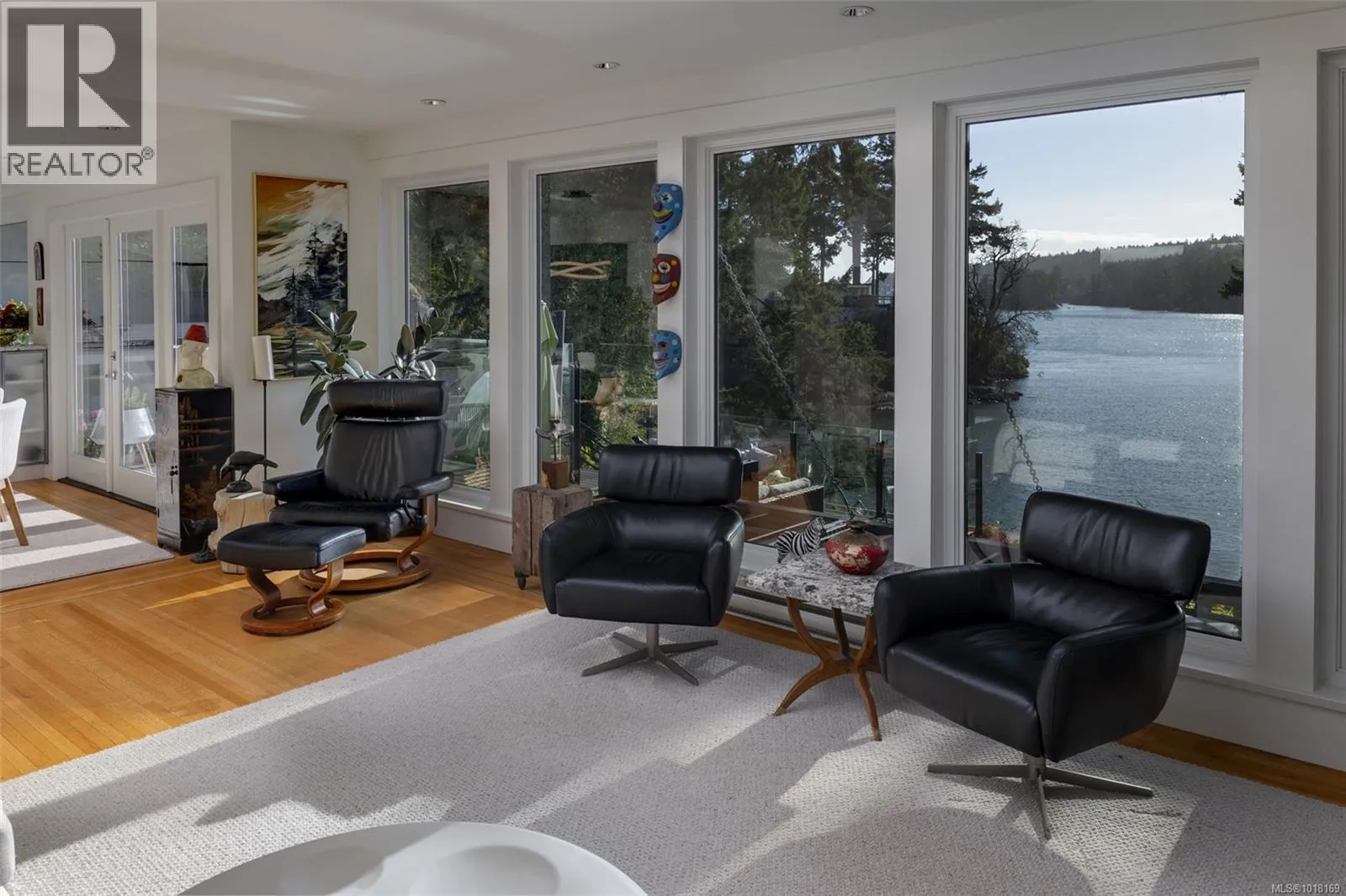 Upscale waterfront oasis! This delightful seaside home has been beautifully renovated & upgraded throughout, offering a bright open-concept design & wonderful views! Located on a private, tree-lined, cul-de-sac, the home offers a peaceful setting with sunny south exposure & access to a sheltered sandy beach. Three bedrooms are located on the main level, & the generous living & dining spaces are highlighted by oversized windows, feature FP & access through double French doors out to the new deck areas. The spacious kitchen includes generous working spaces, upscale appliances, lovely built-ins & custom cabinetry... Downstairs the expansive lower level offers a flexible layout ideal for guests - or as a private self-contained 2 bedroom suite with ocean views & access to a sunny patio. A self-contained studio/office looks out to the ocean, as does the new top-of-the-line seaside sauna. This is a rare & special home with a huge wow factor that must been seen to be truly appreciated! (id:27476)