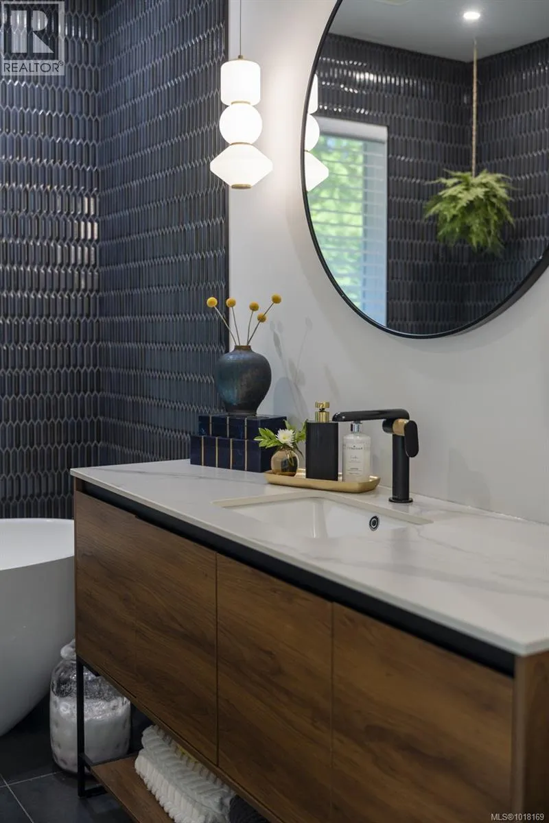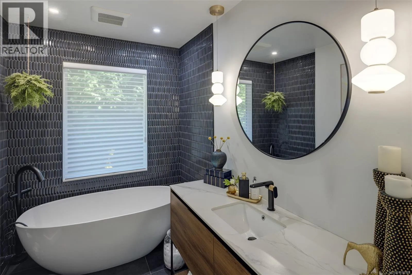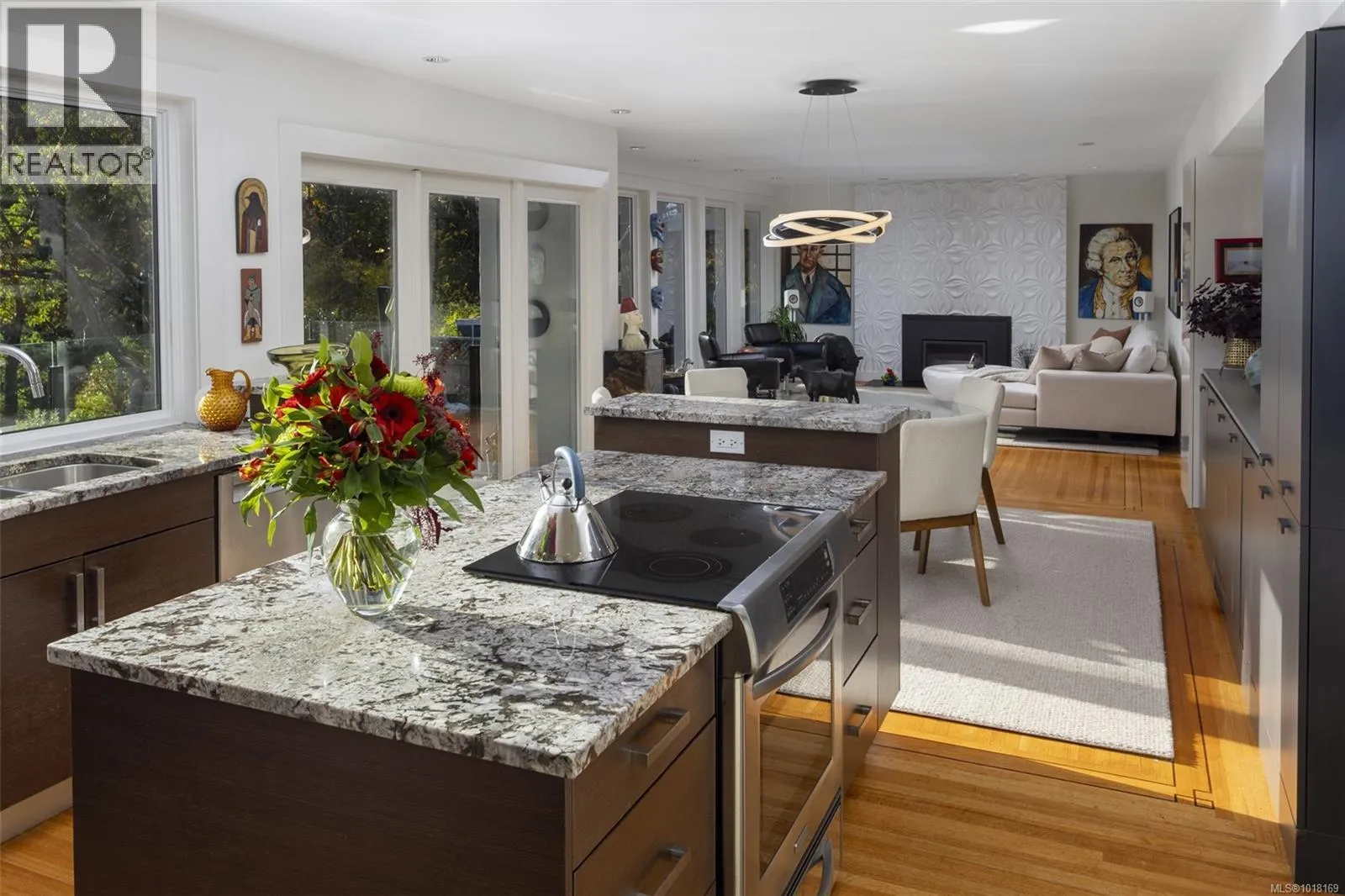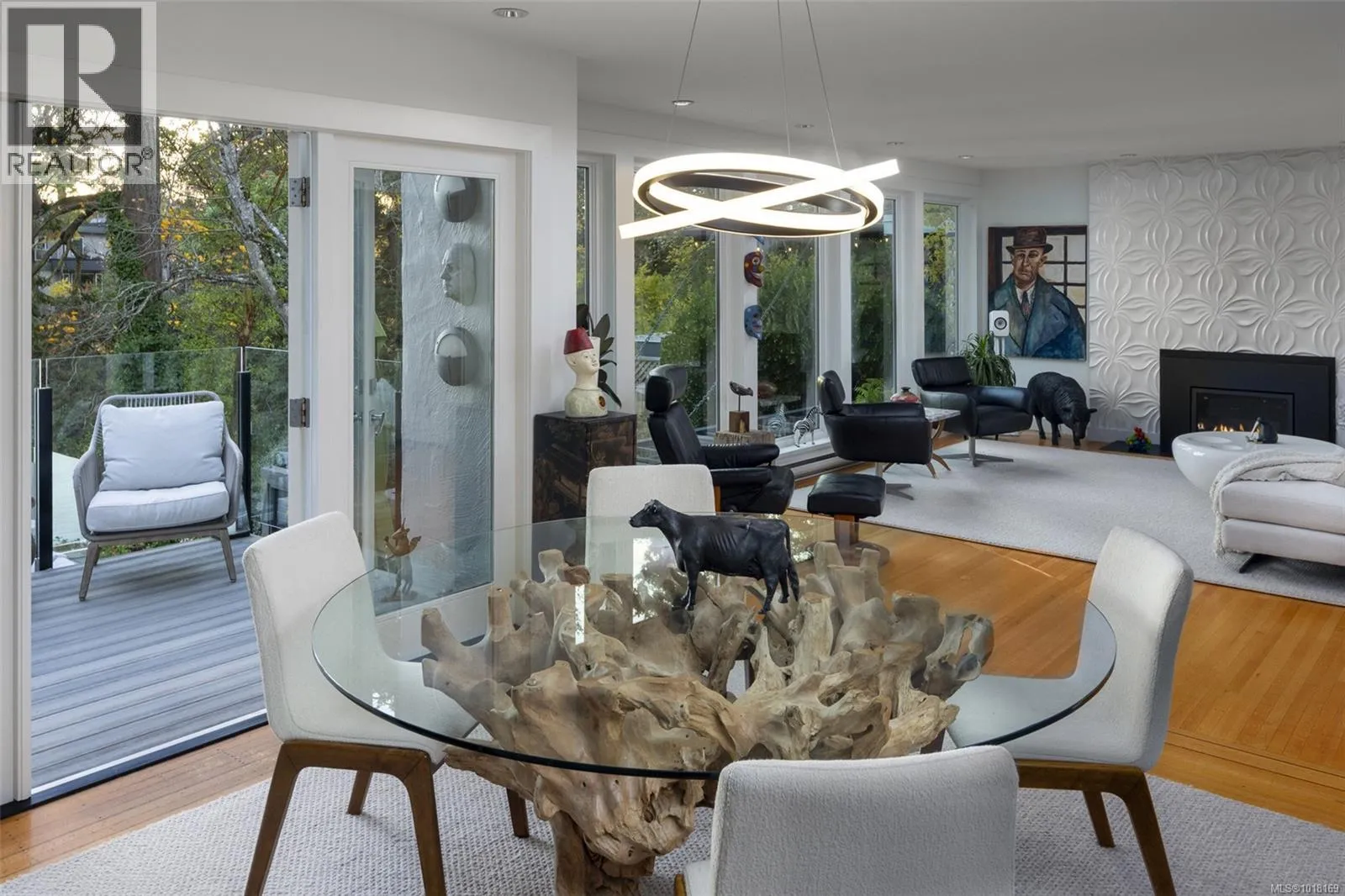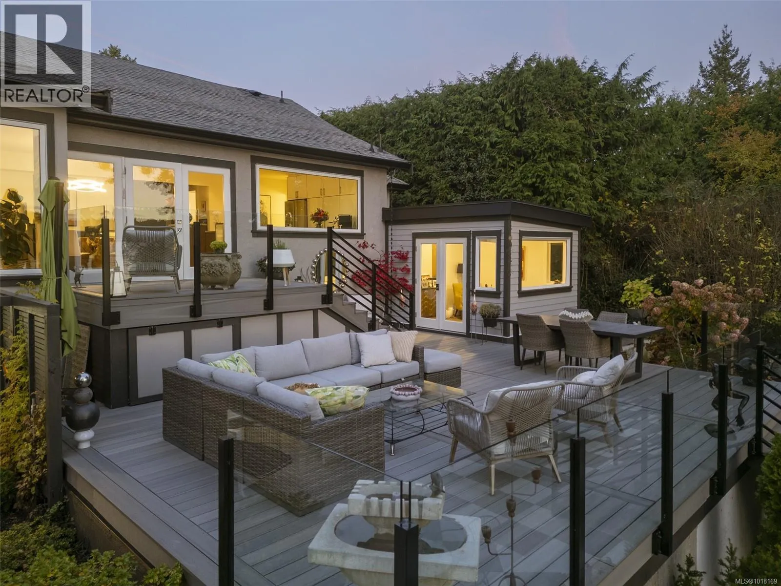 Upscale waterfront oasis! This delightful seaside home has been beautifully renovated & upgraded throughout, offering a bright open-concept design & wonderful views! Located on a private, tree-lined, cul-de-sac, the home offers a peaceful setting with sunny south exposure & access to a sheltered sandy beach. Three bedrooms are located on the main level, & the generous living & dining spaces are highlighted by oversized windows, feature FP & access through double French doors out to the new deck areas. The spacious kitchen includes generous working spaces, upscale appliances, lovely built-ins & custom cabinetry... Downstairs the expansive lower level offers a flexible layout ideal for guests - or as a private self-contained 2 bedroom suite with ocean views & access to a sunny patio. A self-contained studio/office looks out to the ocean, as does the new top-of-the-line seaside sauna. This is a rare & special home with a huge wow factor that must been seen to be truly appreciated! (id:27476)