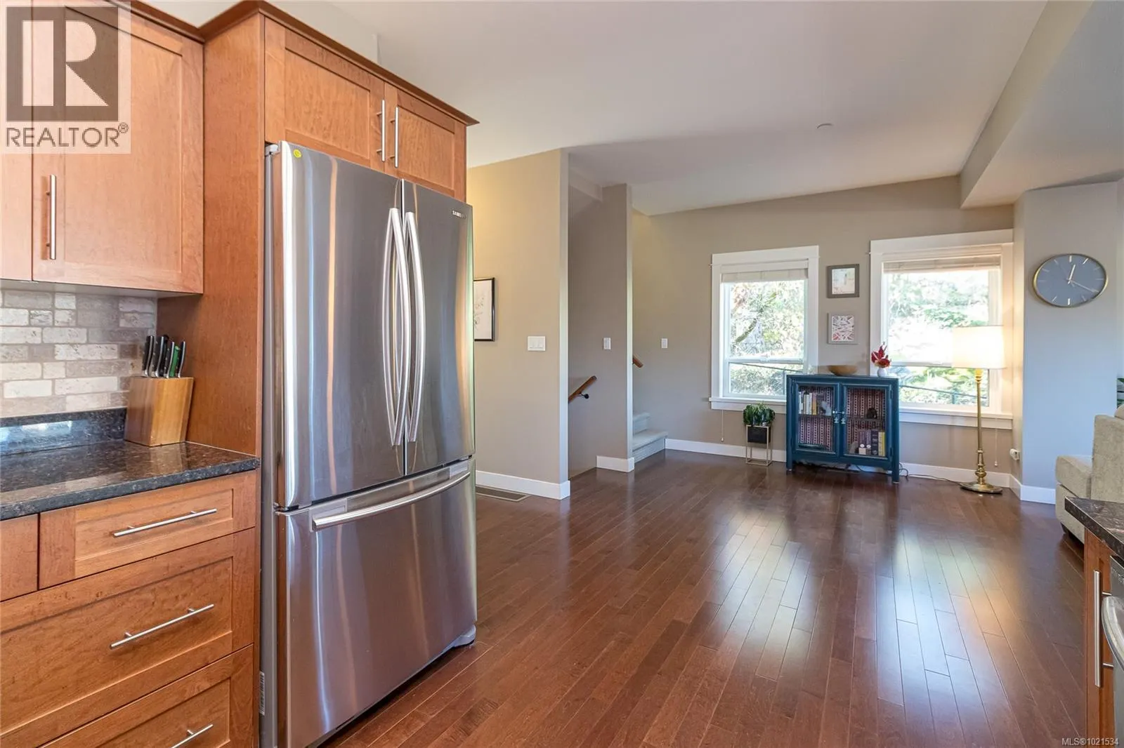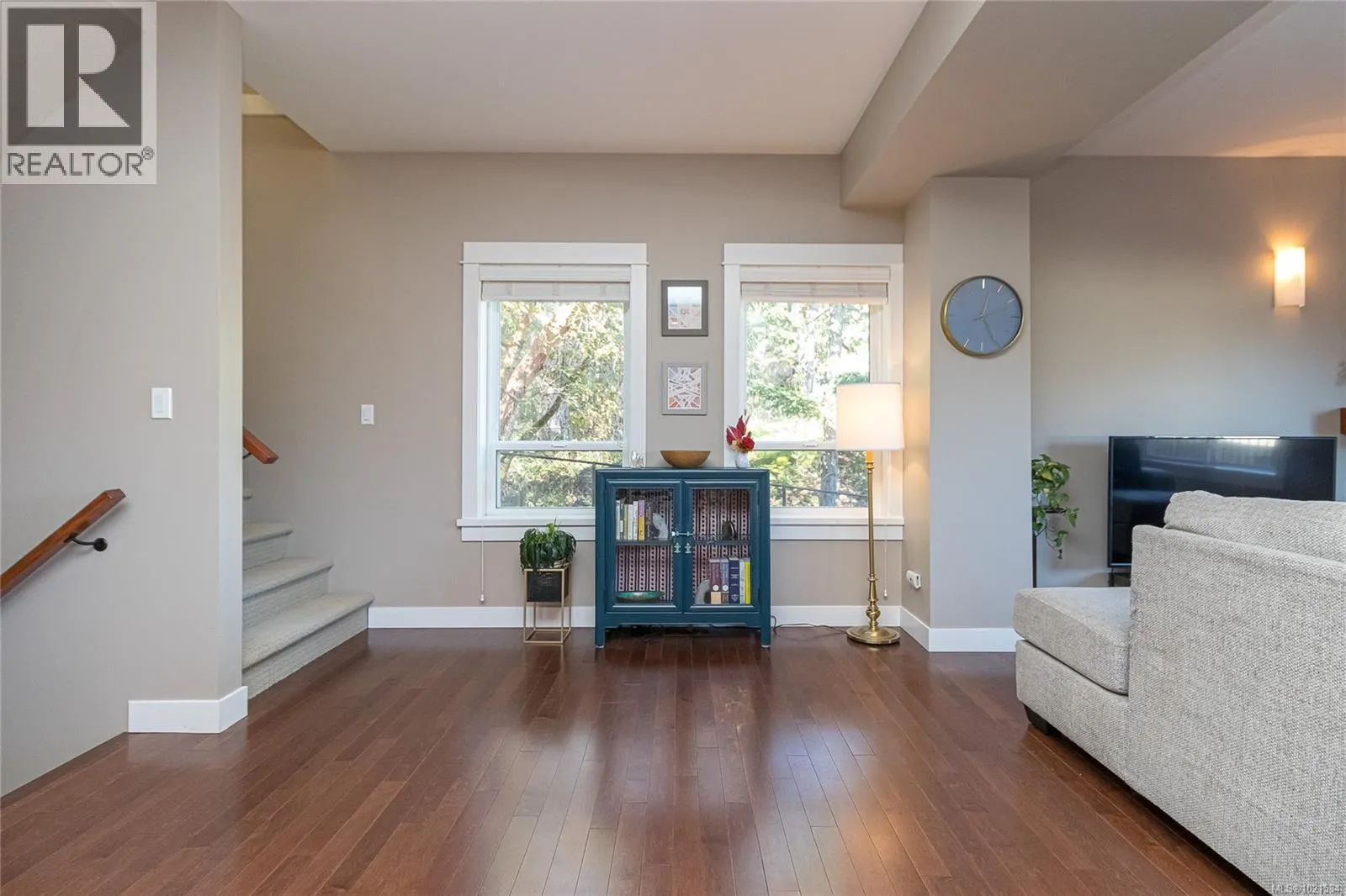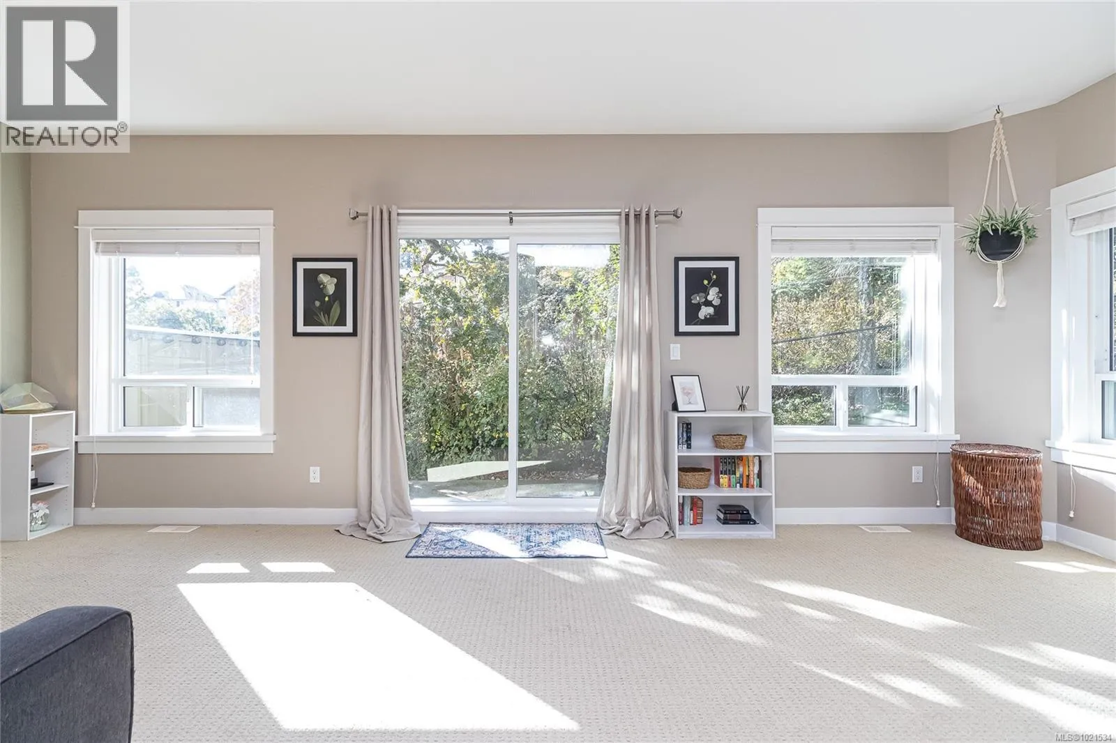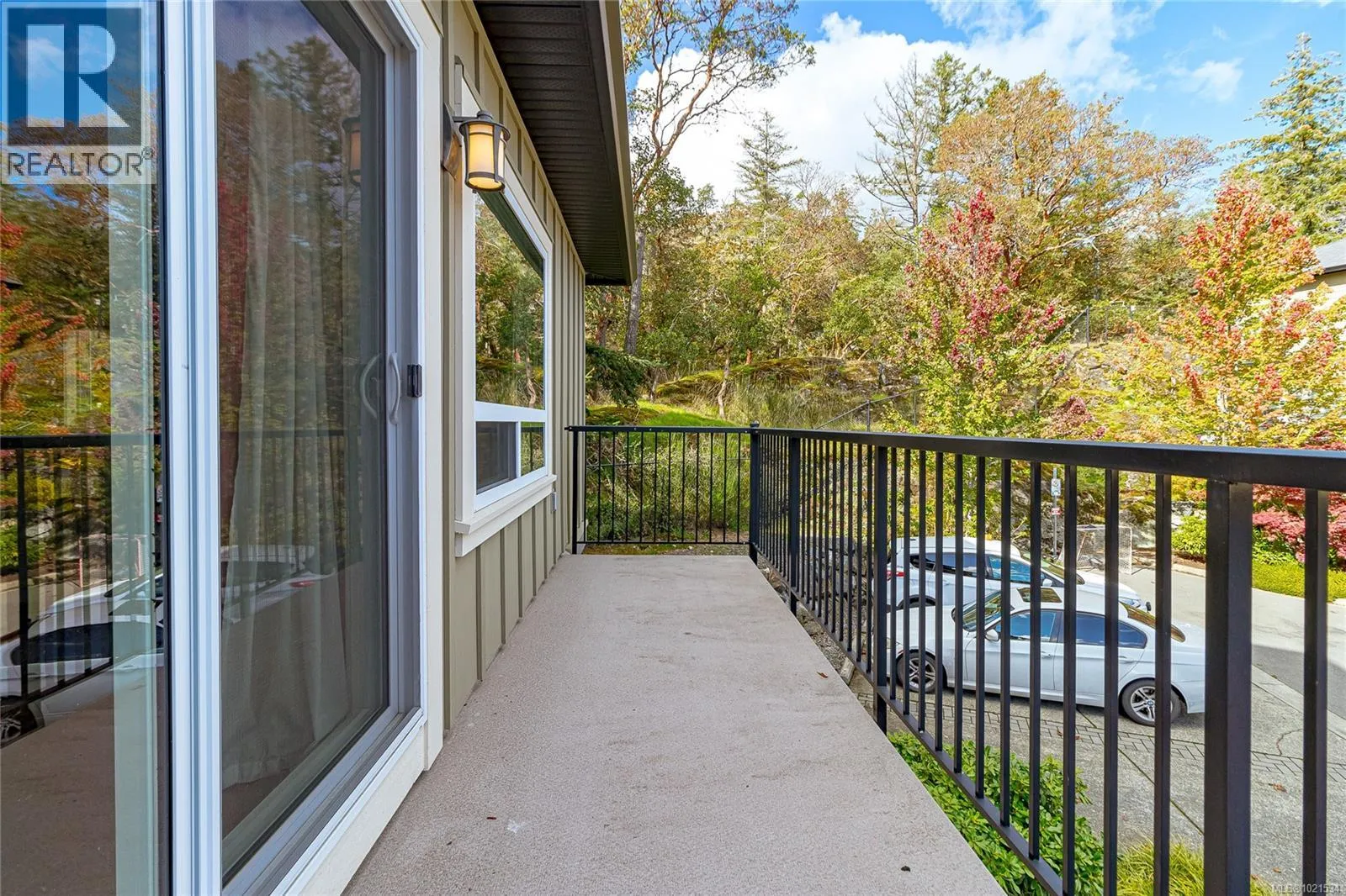 OPEN Sat. 29th 10:00 AM - 12:00 PM...A LUXURIOUS END UNIT Townhome located next to forested setting; & Galloping Goose Trail + Thetis Lake; just 12 min. to Downtown. There's a good sense of PRIVACY on 2 sides. Large floorplan: 2266 sf on 3 levels; double garage plus additional parking; side views of beautiful treed area and privacy. The 2nd level includes a gorgeous kitchen with eating peninsula, granite counters, s/s appliances and walk-in pantry; an open dining and living room with patio door and balcony, a bonus large family room with a walk out patio, private garden setting. 3 good-sized bedrooms on the upper level; including a spacious Primary Bedroom with 10' 6'' ceilings plus a deluxe 5 pce spa inspired ensuite bath, laundry room and a 2nd full bath. Outstanding features includes gleaming wood floors, open space design, great storage space, geothermal heating / AC and extra parking for flexibility. Don't miss this Beautiful Home !! (id:27476)