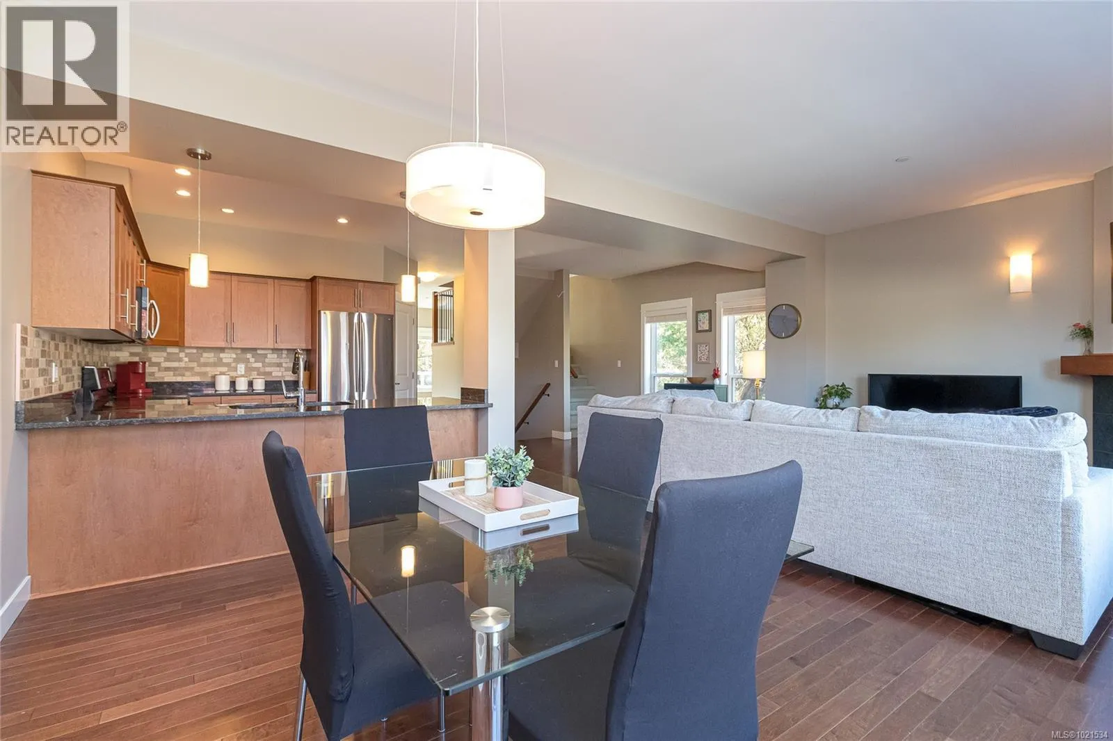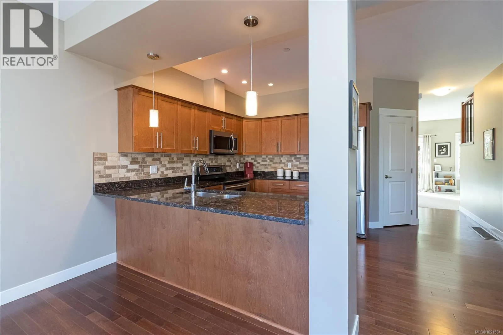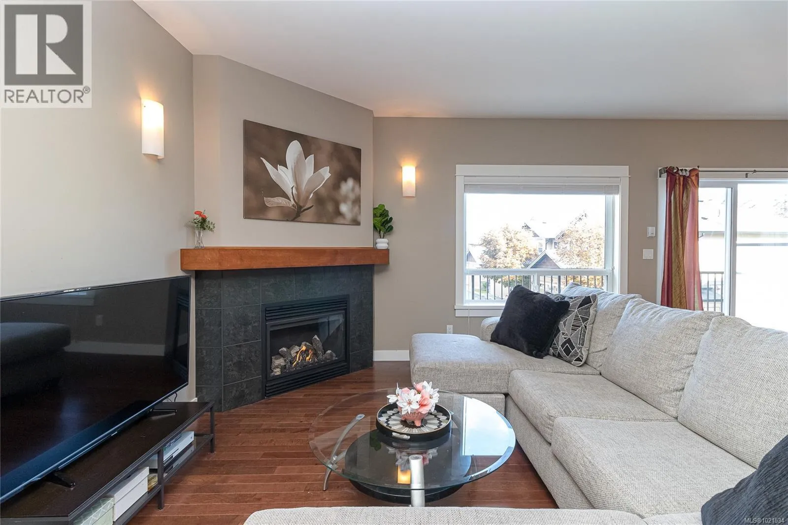 OPEN Sat. 29th 10:00 AM - 12:00 PM...A LUXURIOUS END UNIT Townhome located next to forested setting; & Galloping Goose Trail + Thetis Lake; just 12 min. to Downtown. There's a good sense of PRIVACY on 2 sides. Large floorplan: 2266 sf on 3 levels; double garage plus additional parking; side views of beautiful treed area and privacy. The 2nd level includes a gorgeous kitchen with eating peninsula, granite counters, s/s appliances and walk-in pantry; an open dining and living room with patio door and balcony, a bonus large family room with a walk out patio, private garden setting. 3 good-sized bedrooms on the upper level; including a spacious Primary Bedroom with 10' 6'' ceilings plus a deluxe 5 pce spa inspired ensuite bath, laundry room and a 2nd full bath. Outstanding features includes gleaming wood floors, open space design, great storage space, geothermal heating / AC and extra parking for flexibility. Don't miss this Beautiful Home !! (id:27476)