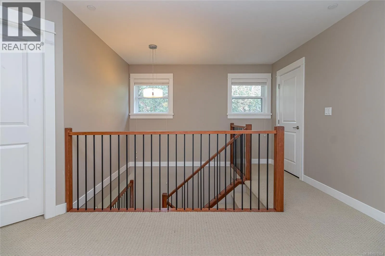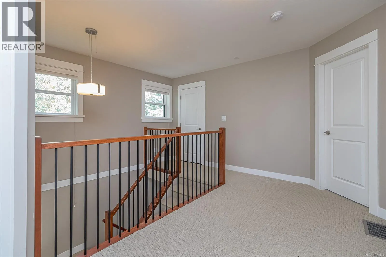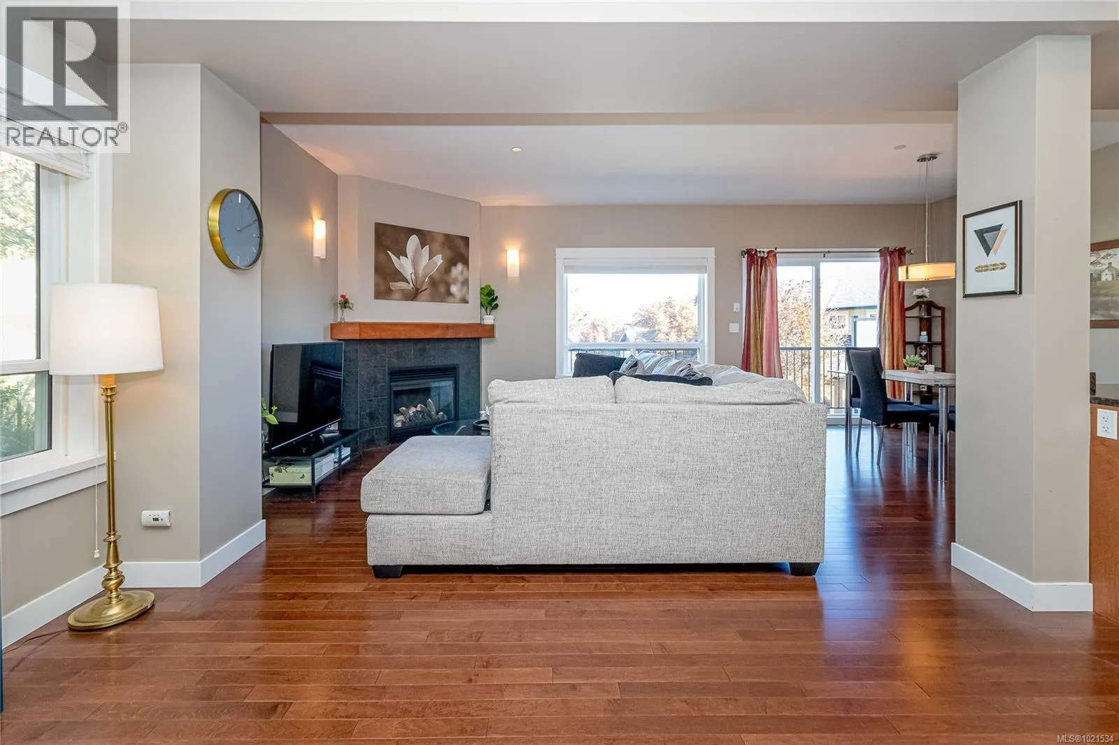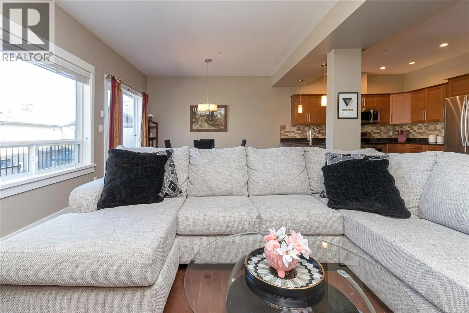 OPEN Sat. 29th 10:00 AM - 12:00 PM...A LUXURIOUS END UNIT Townhome located next to forested setting; & Galloping Goose Trail + Thetis Lake; just 12 min. to Downtown. There's a good sense of PRIVACY on 2 sides. Large floorplan: 2266 sf on 3 levels; double garage plus additional parking; side views of beautiful treed area and privacy. The 2nd level includes a gorgeous kitchen with eating peninsula, granite counters, s/s appliances and walk-in pantry; an open dining and living room with patio door and balcony, a bonus large family room with a walk out patio, private garden setting. 3 good-sized bedrooms on the upper level; including a spacious Primary Bedroom with 10' 6'' ceilings plus a deluxe 5 pce spa inspired ensuite bath, laundry room and a 2nd full bath. Outstanding features includes gleaming wood floors, open space design, great storage space, geothermal heating / AC and extra parking for flexibility. Don't miss this Beautiful Home !! (id:27476)