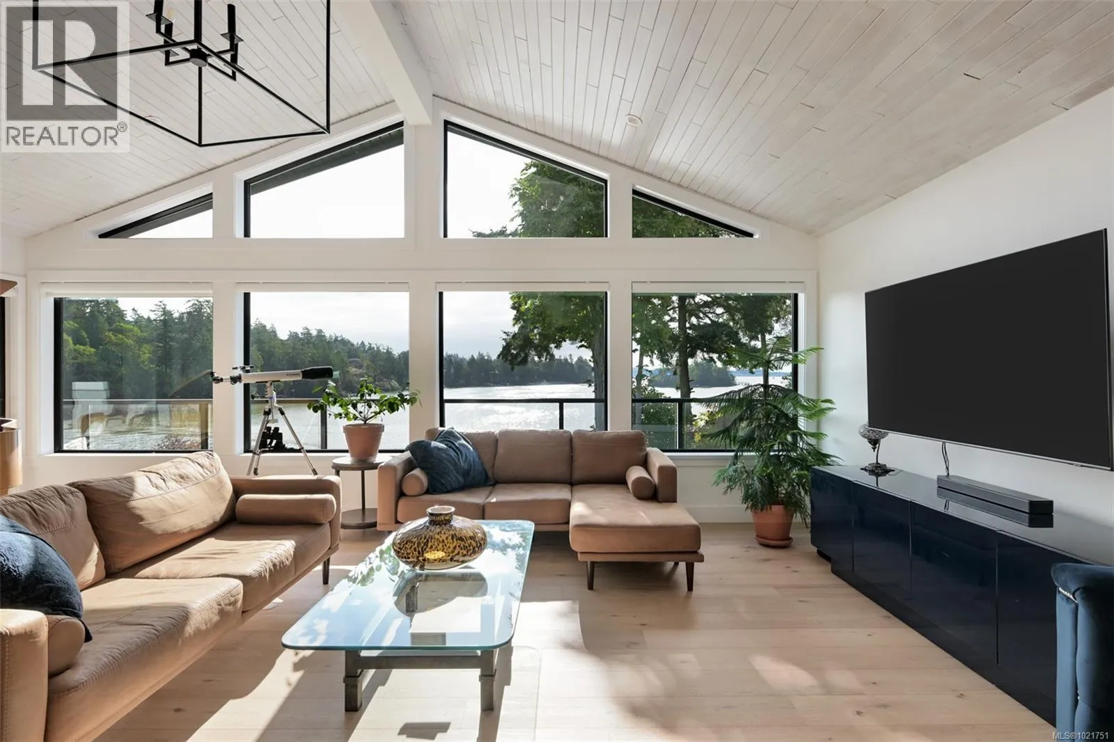 Open House Sun, Dec 14, 1-3. A rare offering of uncompromising oceanfront luxury. Poised above the shoreline in exclusive Price Bay, this impeccably updated residence captures one of Victoriaâs most captivating panoramas, sweeping views of Cole Islandâs National Historic Site framed by the majestic Olympic Mountains. With over 150 feet of private waterfront on a .25-acre high-bank setting, this estate invites an unparalleled connection to nature, wildlife, and the West Coast lifestyle. The main level showcases 3 bedrooms and 2 bathrooms, an elegant open-concept kitchen and dining area, and a luminous living room enhanced by vaulted ceilings, a gas fireplace, and an expansive wrap-around oceanfront deck. The home has undergone a comprehensive transformation, featuring a new roof, full electrical rewire, new heat pump, new deck and rail system, and luxurious heated floors in the bathroom. The lower level presents a spacious, beautifully finished area easily convertible to a self-contained suite, complete with 1 bedroom, 1 bathroom, a private entrance, sun-drenched patio, and manicured coastal gardens, ideal for guests, extended family, or future income. A detached garage, private dock, and generous storage complement the propertyâs refined comforts. Perfectly located only 15 minutes to Downtown Victoria and the Westshore, and steps from the Galloping Goose Trail, this residence embodies serenity, sophistication, and convenience in equal measure. A once in a lifetime opportunity to secure a truly magnificent oceanfront sanctuary. (id:27476)