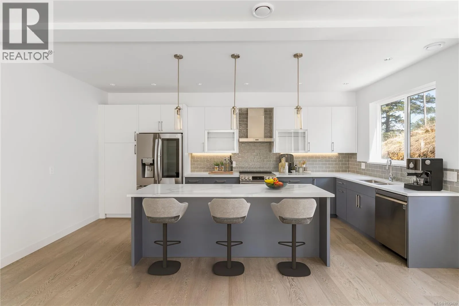 Modern living meets smart design in this exceptional View Royal property. Located on a quiet no-thru street, the main residence offers three bedrooms, three bathrooms, and a stylish open-concept living area that opens to a sun-filled south-facing deck. Quality finishes include hardwood flooring, quartz countertops, custom cabinetry, and a chef-worthy kitchen with high-end appliances and a large island. A double garage ensures ample storage and convenience. Adding to the appeal is a legal two-bedroom, two-bath suite with its own entrance, driveway, and private patioâideal for income generation or extended family. Close to nature trails, parks, schools, and shopping, this home delivers flexibility without compromise. (id:27476)