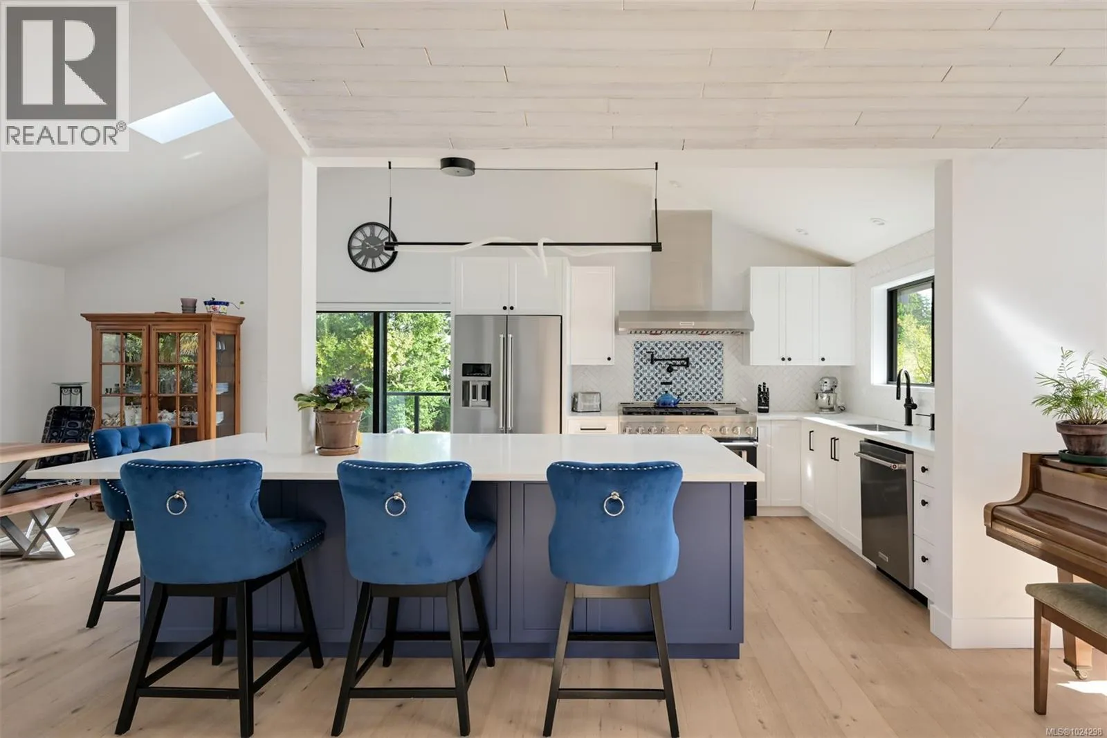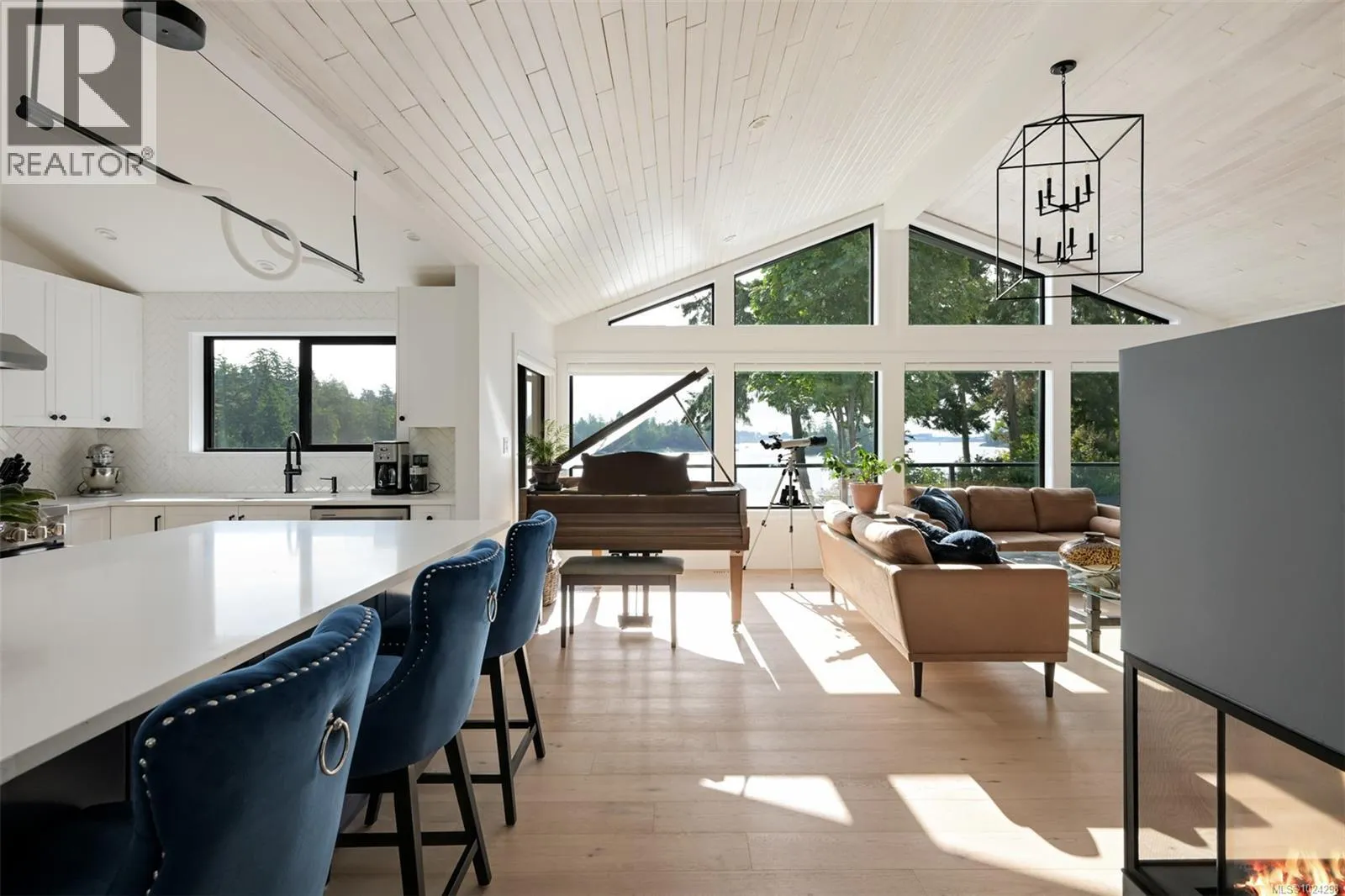 Open House Sun, Dec 14, 1-3. A rare offering of uncompromising oceanfront luxury. Poised above the shoreline in exclusive Price Bay, this impeccably updated residence captures one of Victoriaâs most captivating panoramas, sweeping views of Cole Islandâs National Historic Site framed by the majestic Olympic Mountains. With over 150 feet of private waterfront on a .25-acre high-bank setting, this estate invites an unparalleled connection to nature, wildlife, and the West Coast lifestyle. The main level showcases 3 bedrooms and 2 bathrooms, an elegant open-concept kitchen and dining area, and a luminous living room enhanced by vaulted ceilings, a gas fireplace, and an expansive wrap-around oceanfront deck. The home has undergone a comprehensive transformation, featuring a new roof, full electrical rewire, new heat pump, new deck and rail system, and luxurious heated floors in the bathroom. The lower level presents a spacious, beautifully finished area easily convertible to a self-contained suite, complete with 1 bedroom, 1 bathroom, a private entrance, sun-drenched patio, and manicured coastal gardens, ideal for guests, extended family, or future income. A detached garage, private dock, and generous storage complement the propertyâs refined comforts. Perfectly located only 15 minutes to Downtown Victoria and the Westshore, and steps from the Galloping Goose Trail, this residence embodies serenity, sophistication, and convenience in equal measure. A once in a lifetime opportunity to secure a truly magnificent oceanfront sanctuary. (id:27476)