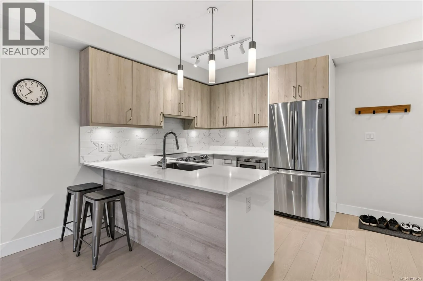 Open House on Sunday, April 5th from 11:30-13:30. Welcome to The Glenn, a modern, feel-good building perfectly placed in the heart of View Royal, where style meets everyday convenience. This newer home is filled with thoughtful upgrades, including wide-plank floors, quartz countertops, 9â ceilings, sleek Samsung appliances, roller shades, and cozy NuHeat heated floors in the bathrooms (once you have them, youâll never go back ). The building itself is just as impressive, with a gorgeous shared patio and fire pit for evenings with friends, EV charging, secure parking, bike and dog wash stations and private storage lockers. Step outside and youâre instantly connected to the best of the West Coast lifestyle, golf, hiking, biking, kayaking, shopping, restaurants, and schools are all moments away. Add in unrestricted rentals and pride of ownership from the original owners, and this is a home that truly checks every box. (id:27476)