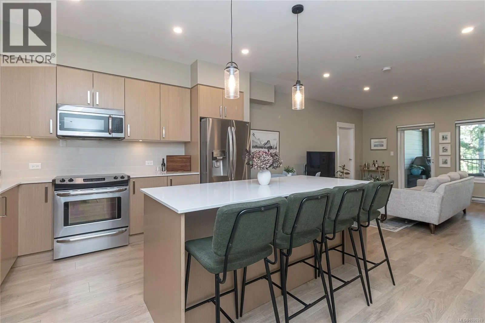 Bright and Spacious 2 Bed 2 Bath plus separate office or den unit with hill top views in convenient View Royal. Ideal end unit layout with oversized windows that provide fantastic views and allow light to flood the space throughout the day. Large private covered balcony with treetop views ideal for outdoor gatherings and BBQs. Open-concept living dining room, fantastic gourmet kitchen boasting quartz countertops, oversized island, under cabinet lighting, pot lights and upgraded dishwasher and refrigerator. Large primary bedroom includes walk in closet and luxurious ensuite. Large second bedroom and separate office or den make this spacious condo unique. New ceiling pot lights, in-unit laundry. Located minutes from downtown transit bus stop, grocery, beaches, Galloping Goose, Juan de Fuca rec sports centre and library. Downtown just a 15-minute drive away. Secure underground parking stall and storage locker. Bike storage, pet-friendly and rentals allowed. BONUS Guest suite for visitors (id:27476)