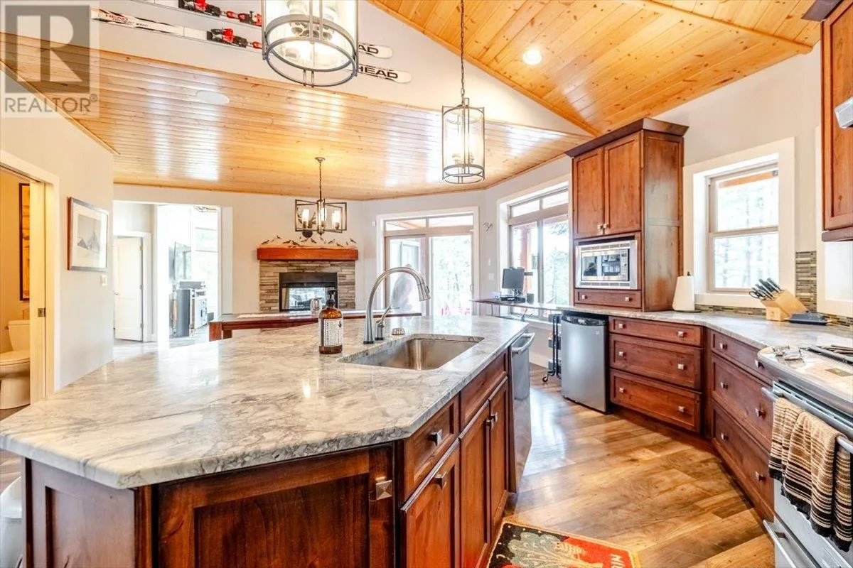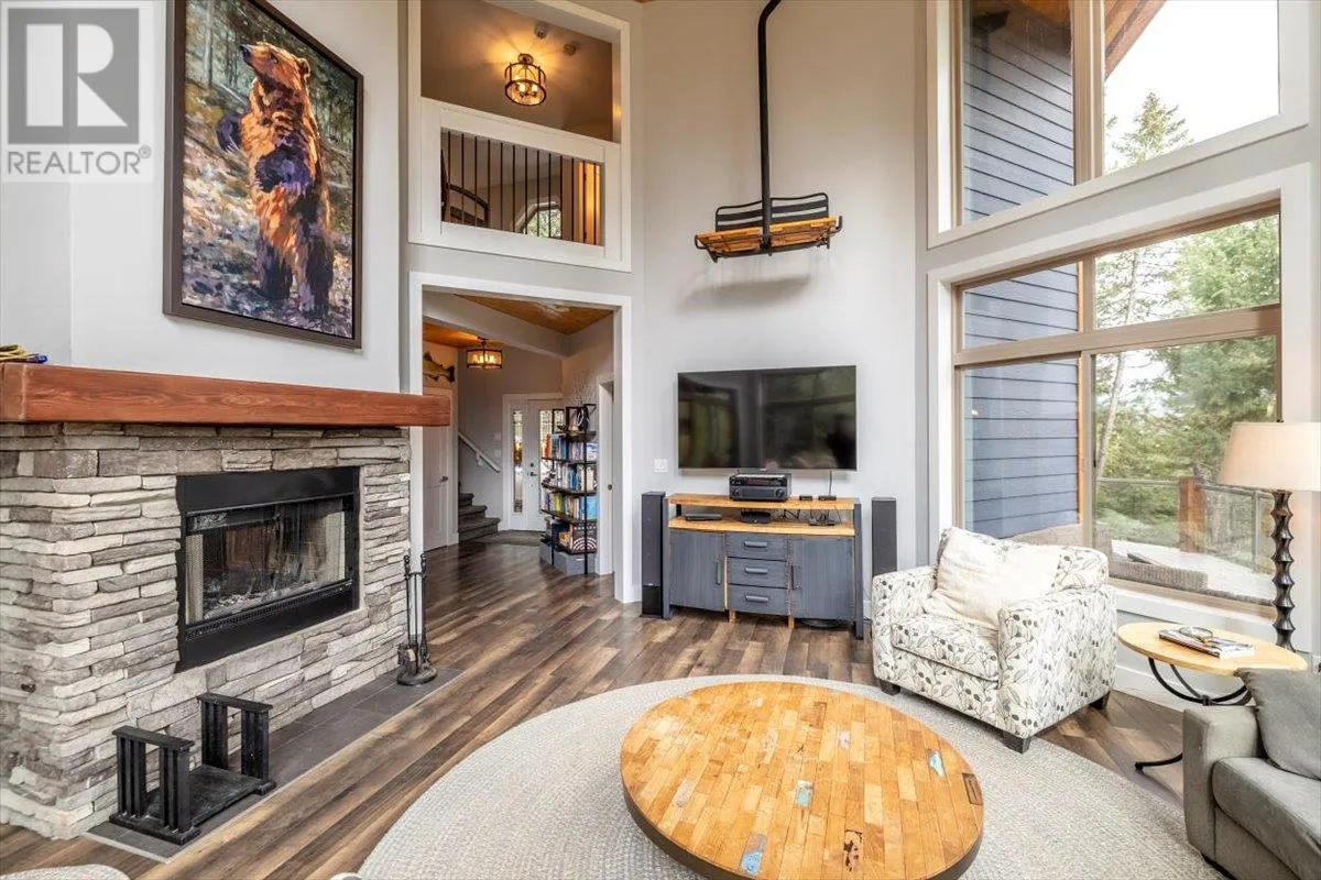 Absolutely STUNNING home in Osprey Landing! Custom-built and lovingly maintained by the original owners, this exceptional property is tucked away in the trees on over 3 acres of landâoffering privacy, tranquility, and breathtaking views. The main floor features a well-appointed kitchen and a spacious dining area, anchored by a striking double-sided wood-burning fireplace with propane assist. On the other side, the living room shines as the crown jewel of the home, showcasing a soaring double-height ceiling and floor-to-ceiling windows that flood the space with natural light and frame spectacular views. Step outside to a beautiful wraparound deck accessible from the dining room, living room, laundry room, and main entranceâperfect for indoor-outdoor living. The main floor also includes the generous primary bedroom, complete with ample closet space and a luxurious ensuite featuring a steam shower. Upstairs, you'll find two large bedrooms, a full bathroom, and a bright landing that overlooks the living areaâallowing light and views to carry throughout the upper floor. Outside, enjoy a saltwater hot tub, sauna, fire pit, bike trails, and endless peace and quiet. The detached two-car garage includes a finished bonus space above, ideal as a rec room, guest suite, or extra storage. Just a short walk to the lake and nestled in a wonderful community, this home is perfect as a recreational getaway or a full-time residence. Come see it for yourself! (id:27476)