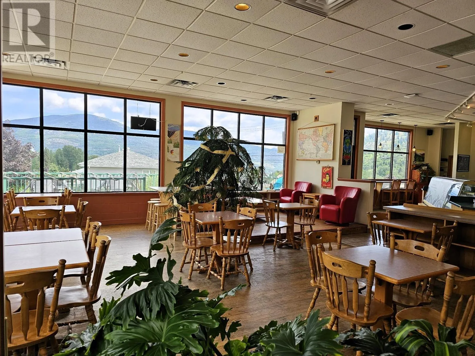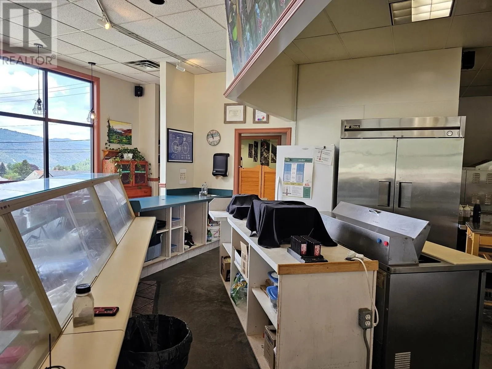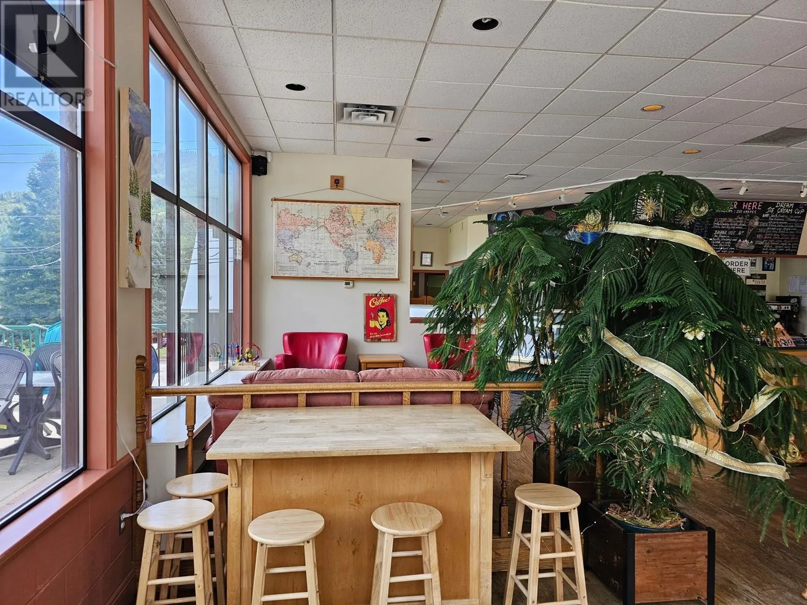 Seize the opportunity to own this well-constructed, newer commercial building, available for sale (building only), with the additional option to acquire the well-established Zee Crepe business, which includes a liquor license. The property is zoned for various uses, including a winery, brewery, distillery, neighborhood pub, medical building, or grocery store. An unused 40' wide area running the full length of the lot provides room for potential expansion. Enjoy the ample sunny deck that hosts 20 people and a light-filled interior with seating for 50 people. The large kitchen and serving areas finish off the main floor while 1336 sq ft of storage make up the basement. The building boasts excellent exposure from the highway and is strategically situated between Trail and Rossland, attracting a larger population. This is a rare chance to own a versatile commercial space with significant potential in a prime location. Contact you REALTOR® today to book a showing. (id:27476)