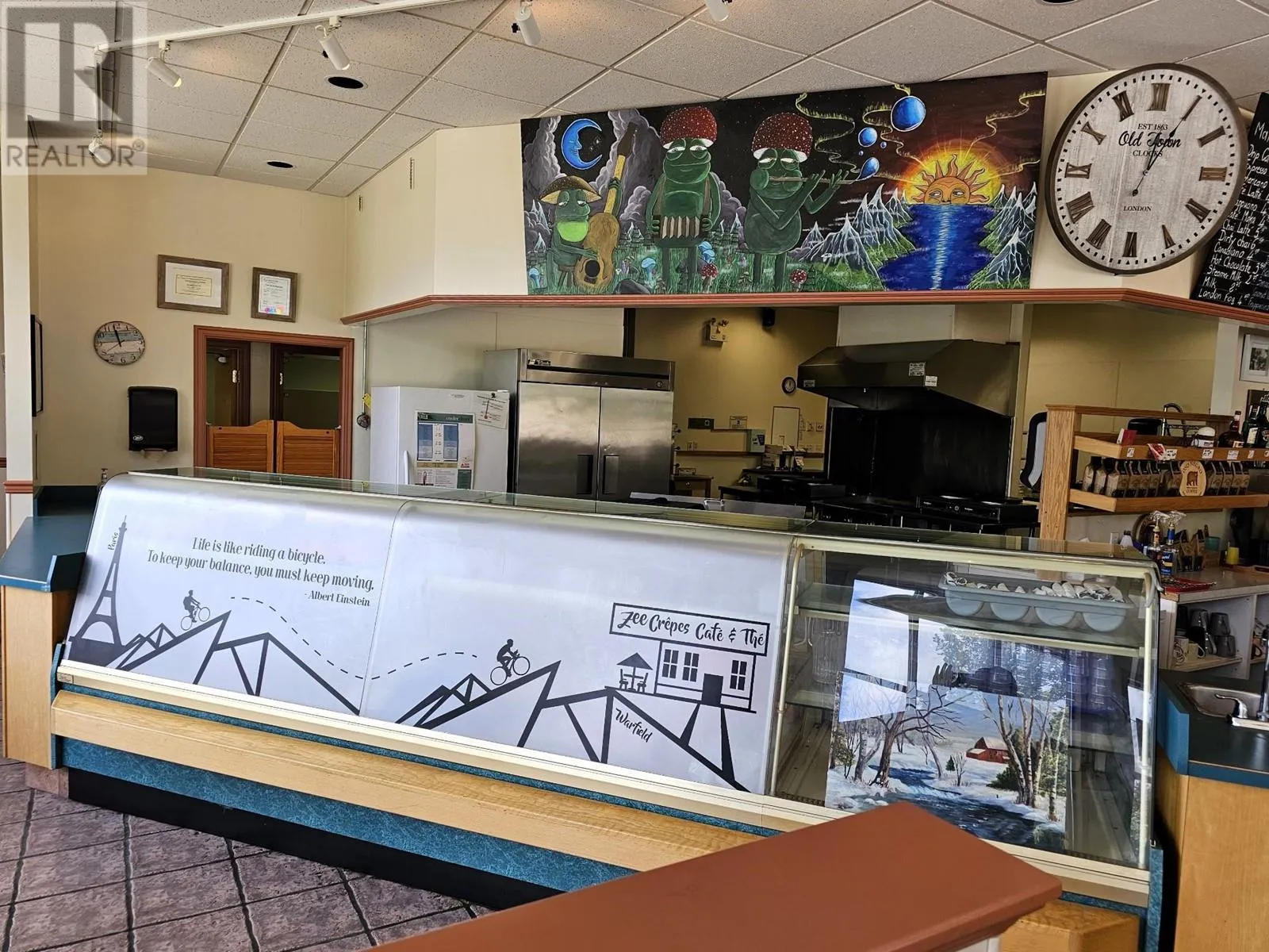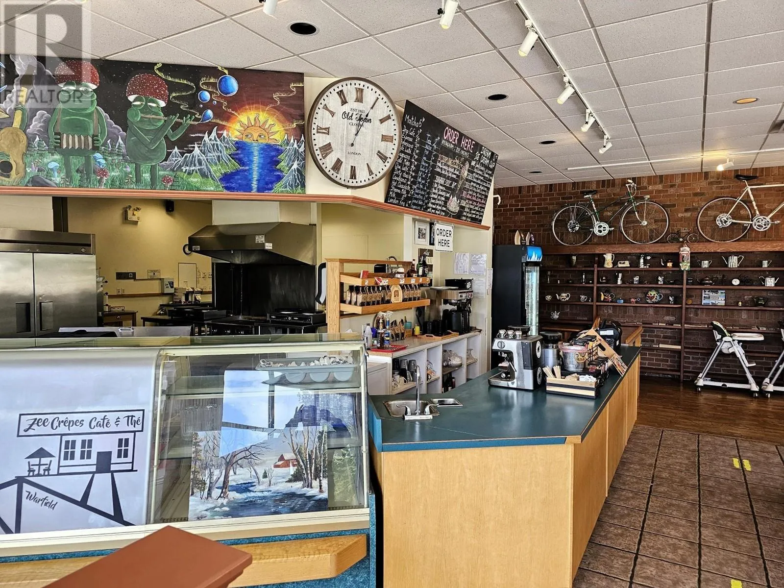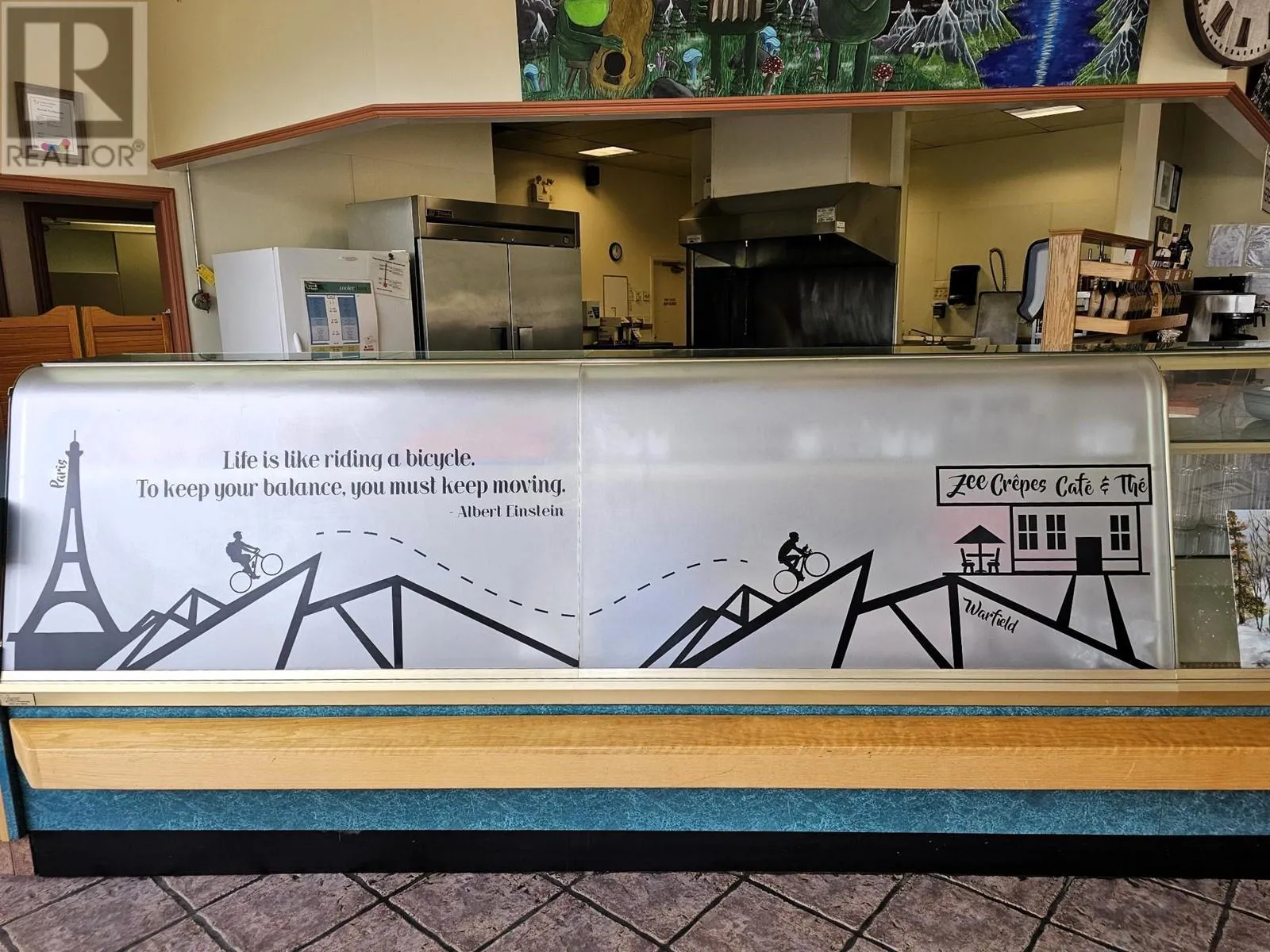 Seize the opportunity to own this well-constructed, newer commercial building, available for sale (building only), with the additional option to acquire the well-established Zee Crepe business, which includes a liquor license. The property is zoned for various uses, including a winery, brewery, distillery, neighborhood pub, medical building, or grocery store. An unused 40' wide area running the full length of the lot provides room for potential expansion. Enjoy the ample sunny deck that hosts 20 people and a light-filled interior with seating for 50 people. The large kitchen and serving areas finish off the main floor while 1336 sq ft of storage make up the basement. The building boasts excellent exposure from the highway and is strategically situated between Trail and Rossland, attracting a larger population. This is a rare chance to own a versatile commercial space with significant potential in a prime location. Contact you REALTOR® today to book a showing. (id:27476)