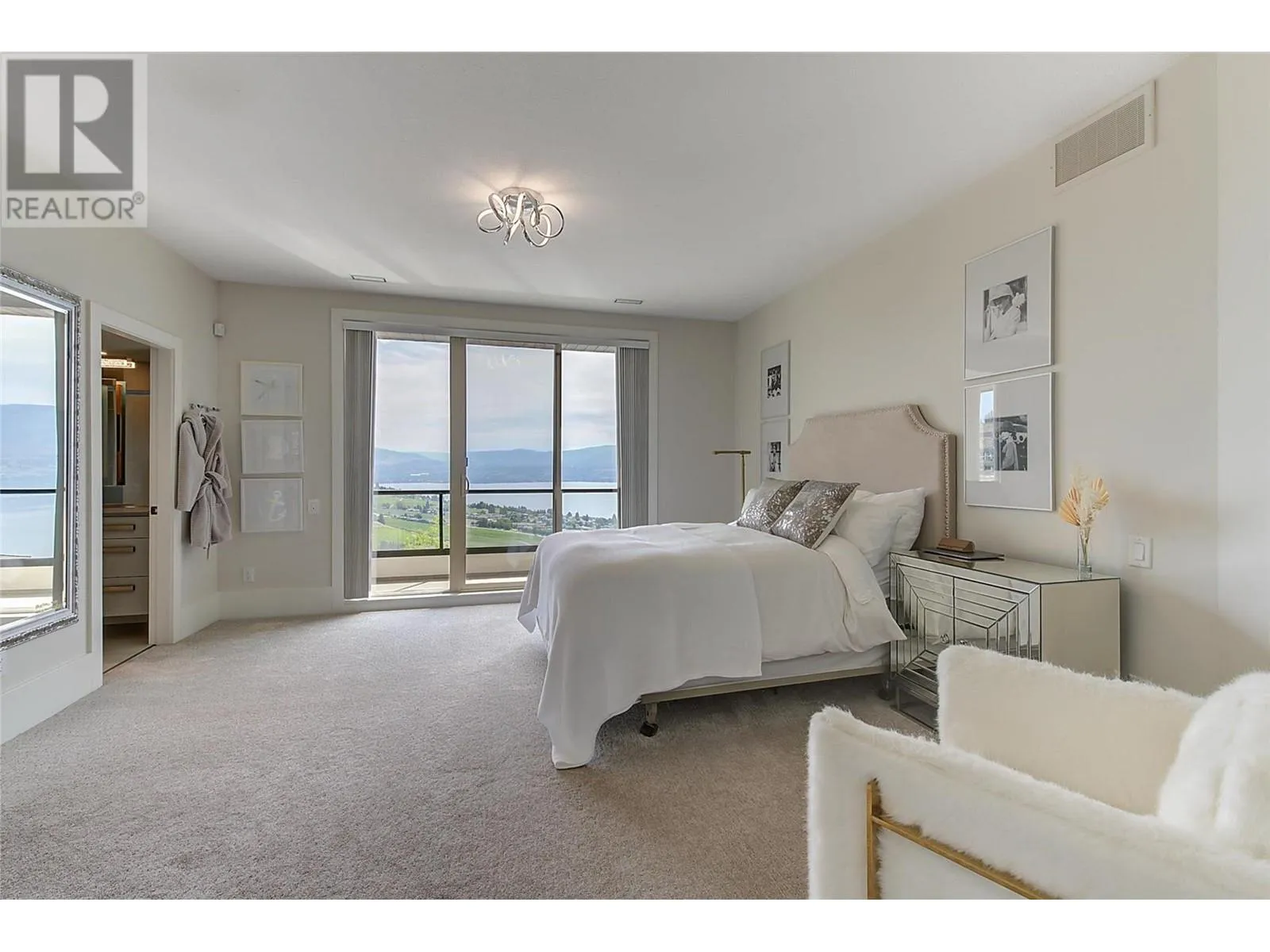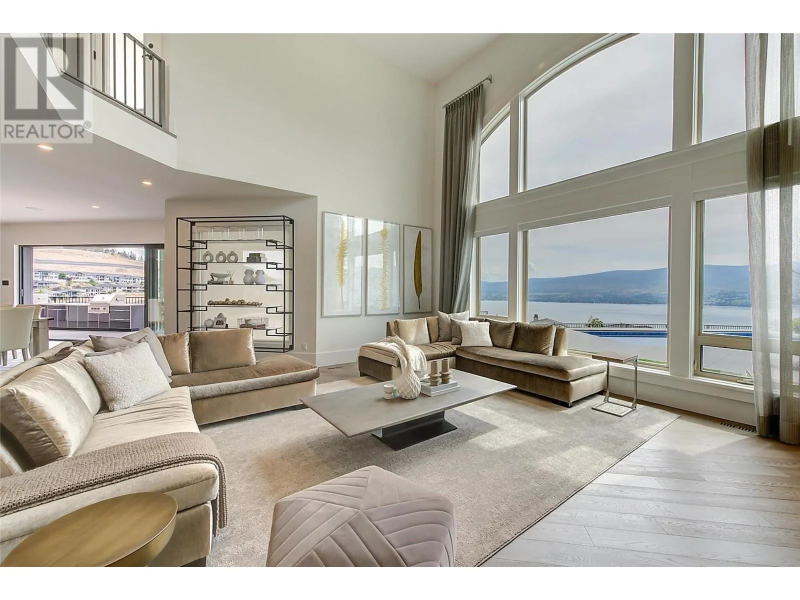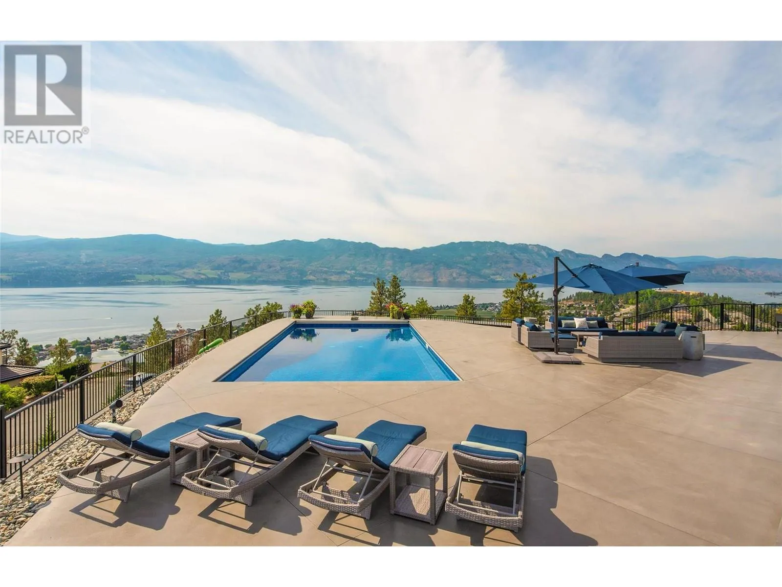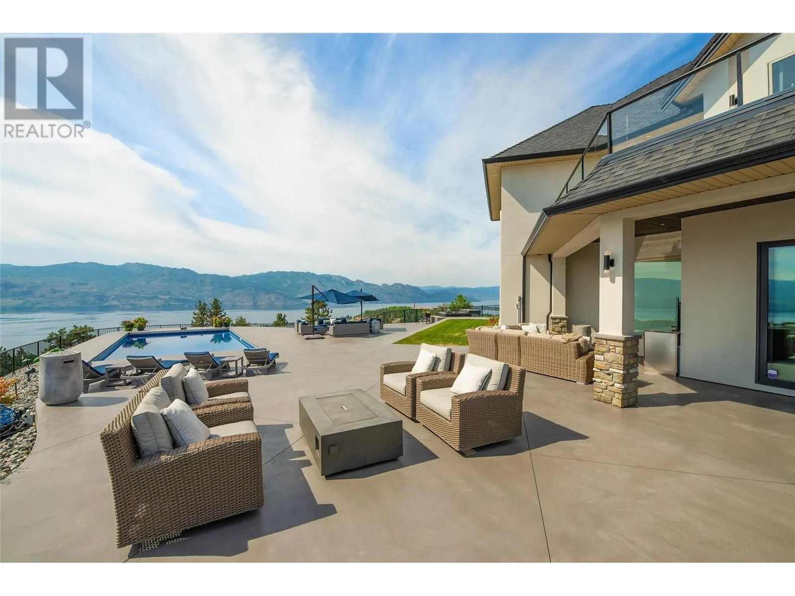 Truly beyond compare! Gorgeous custom home in the desirable private gated neighborhood of Vineyard Estates. From this residence you will enjoy remarkable panoramic views of Okanagan Lake, rolling hills, mountains, & vineyards, including the bell tower at Mission Hill. The outdoor living area is breathtaking with sweeping views, a pool, spacious areas for lounging & an outdoor kitchen is the ideal set up for dining, lounging, and playing outside all summer long. Inside no detail has been spared. The entire home features exceptional customizations creating the perfect backdrop for living & entertaining. Main level is designed to ensure all living spaces take full advantage of the view. From the great room enjoy soaring ceilings, & expansive windows. Flow seamlessly from the dining area to the gourmet kitchen. Prep, & host from the kitchen enjoying access to the outdoor oasis. Kitchen has been customized with a unique L-shaped entertainment-sized island and professional appliances. Unwind in the family room with a luxurious wet bar, tiled fireplace, and room for pool table. Bedroom on the main floor could be used as a home office. The primary retreat is located on the main level & features an opulent en suite & walkâin closet. The upper level offers two additional bedrooms with en suites, a loft flex space & a huge balcony overlooking the lake. Room for all your toys in the 5-car garage. Excellent location minutes to world-class wineries, trail networks & Okanagan Lake. (id:27476)