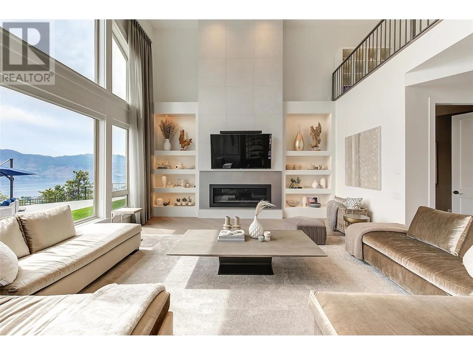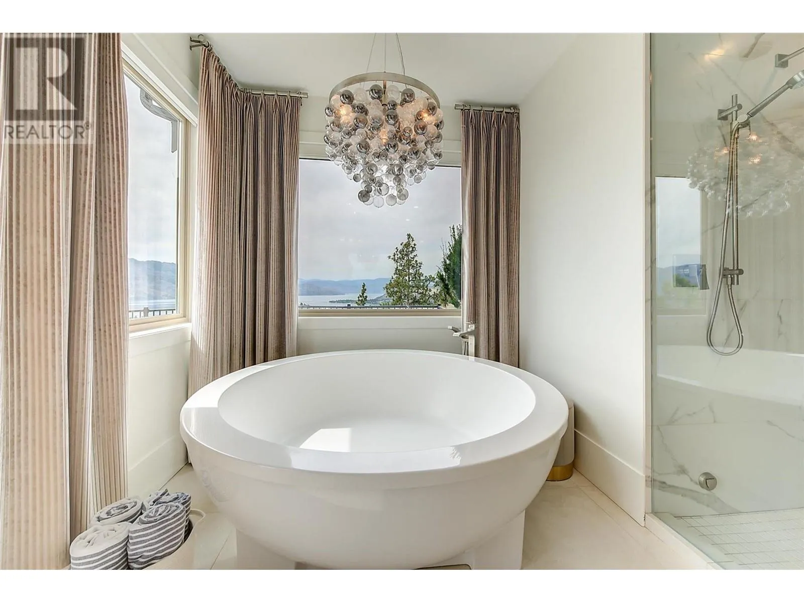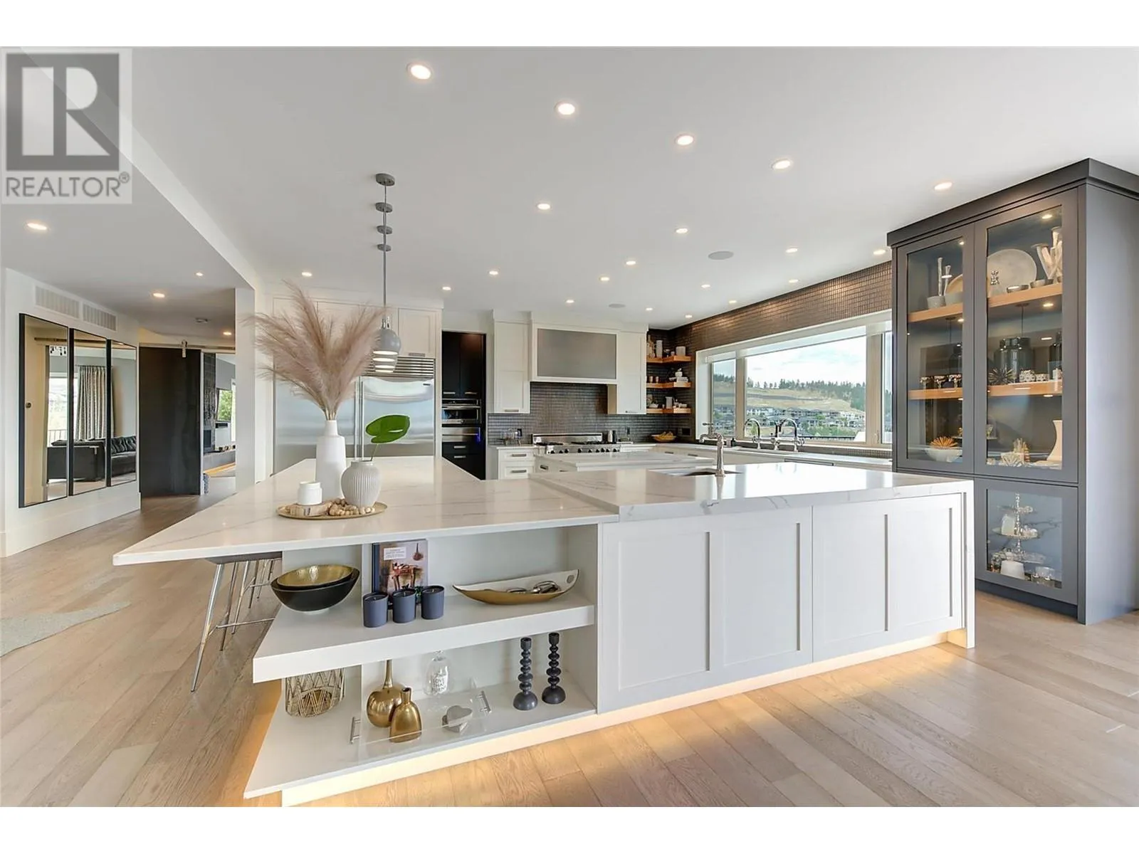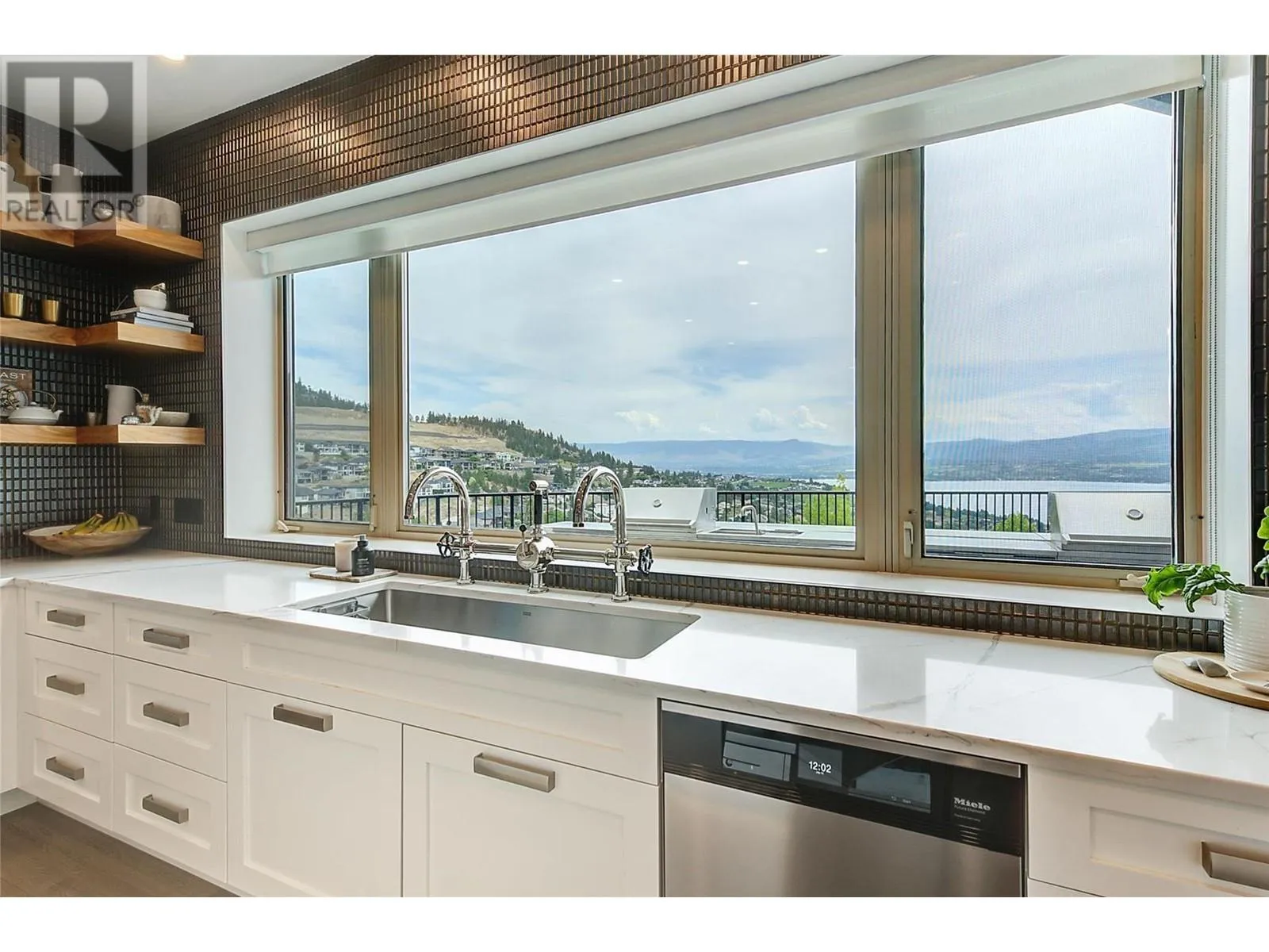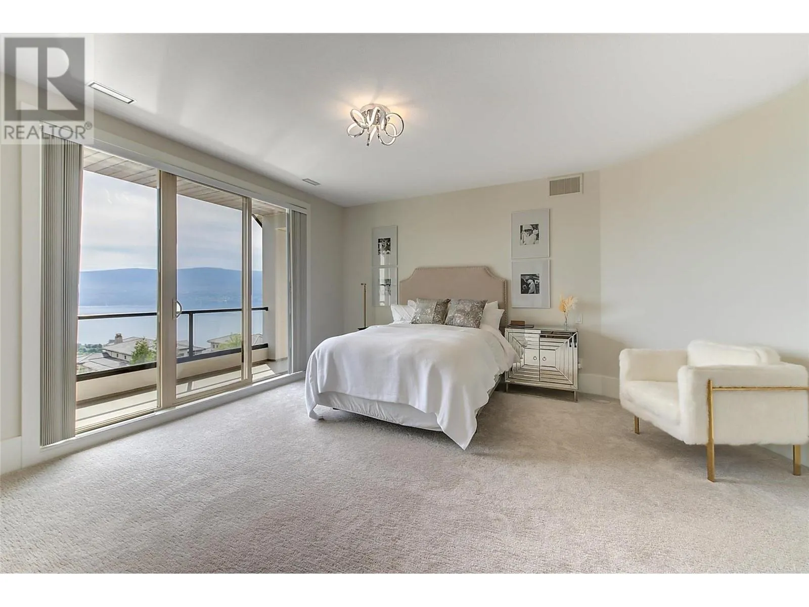 Truly beyond compare! Gorgeous custom home in the desirable private gated neighborhood of Vineyard Estates. From this residence you will enjoy remarkable panoramic views of Okanagan Lake, rolling hills, mountains, & vineyards, including the bell tower at Mission Hill. The outdoor living area is breathtaking with sweeping views, a pool, spacious areas for lounging & an outdoor kitchen is the ideal set up for dining, lounging, and playing outside all summer long. Inside no detail has been spared. The entire home features exceptional customizations creating the perfect backdrop for living & entertaining. Main level is designed to ensure all living spaces take full advantage of the view. From the great room enjoy soaring ceilings, & expansive windows. Flow seamlessly from the dining area to the gourmet kitchen. Prep, & host from the kitchen enjoying access to the outdoor oasis. Kitchen has been customized with a unique L-shaped entertainment-sized island and professional appliances. Unwind in the family room with a luxurious wet bar, tiled fireplace, and room for pool table. Bedroom on the main floor could be used as a home office. The primary retreat is located on the main level & features an opulent en suite & walkâin closet. The upper level offers two additional bedrooms with en suites, a loft flex space & a huge balcony overlooking the lake. Room for all your toys in the 5-car garage. Excellent location minutes to world-class wineries, trail networks & Okanagan Lake. (id:27476)