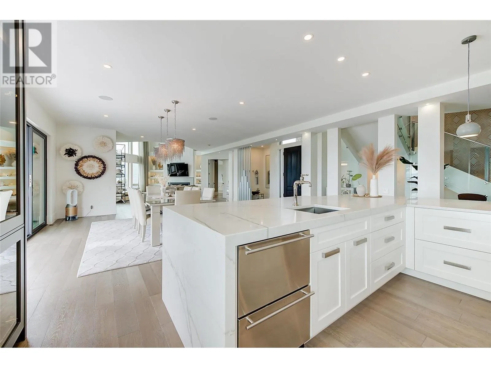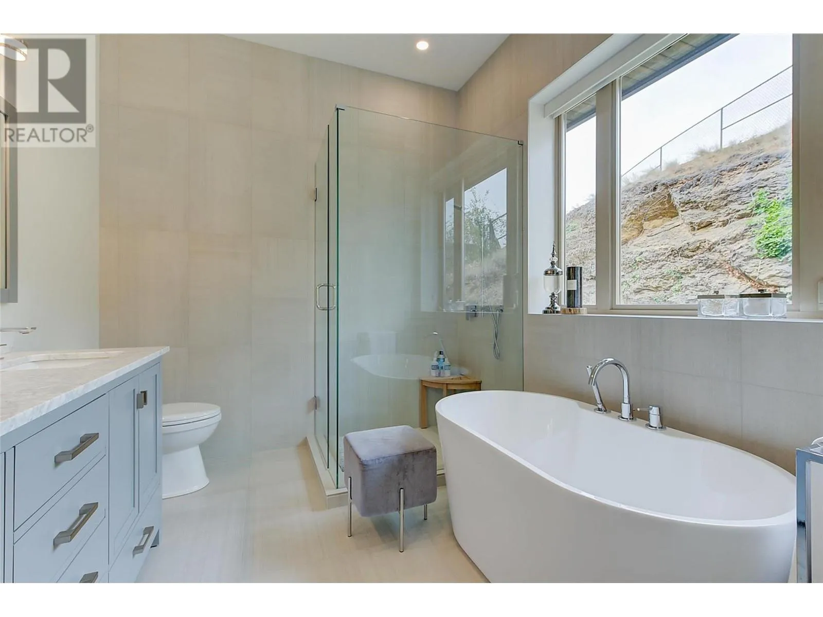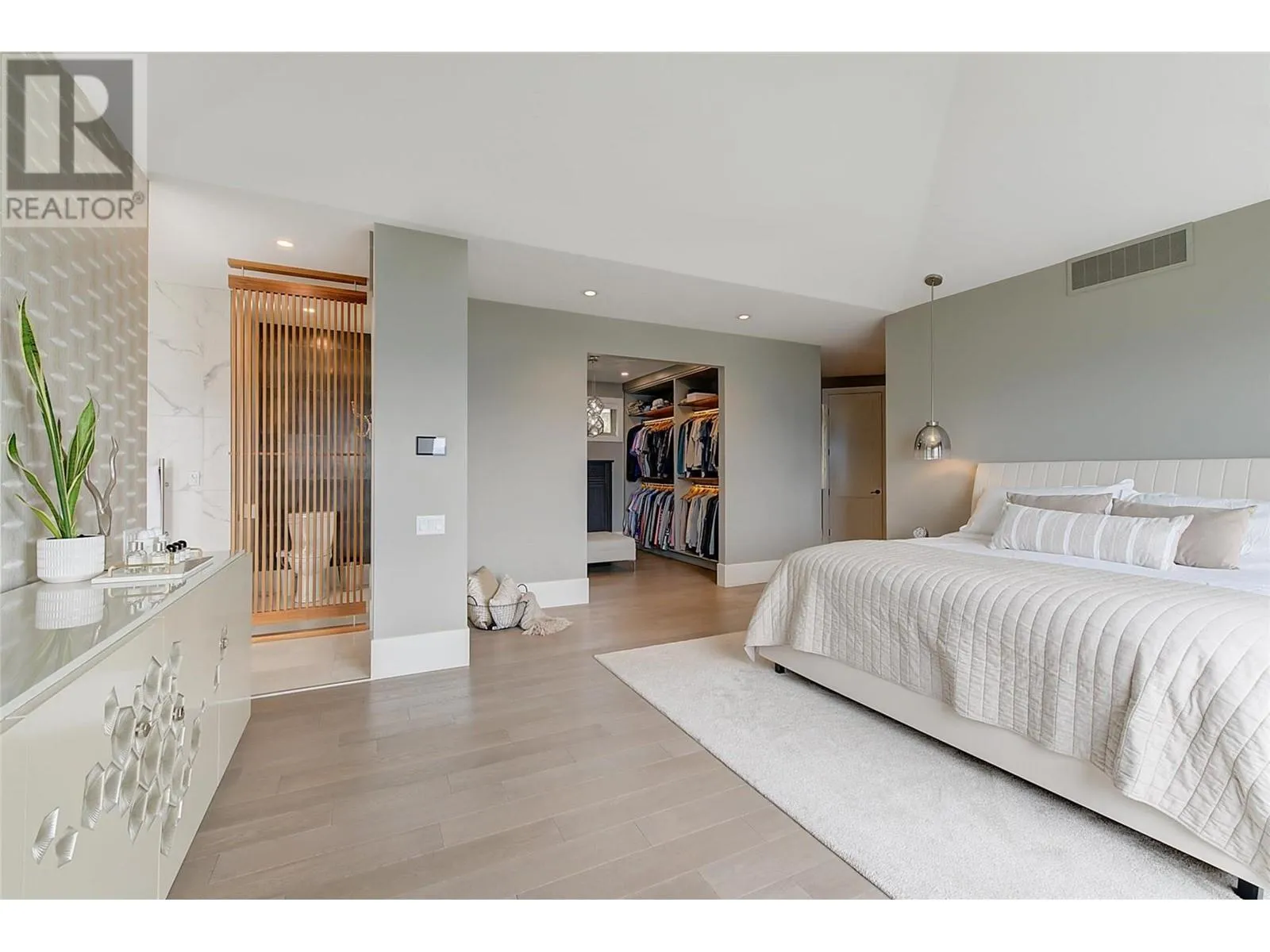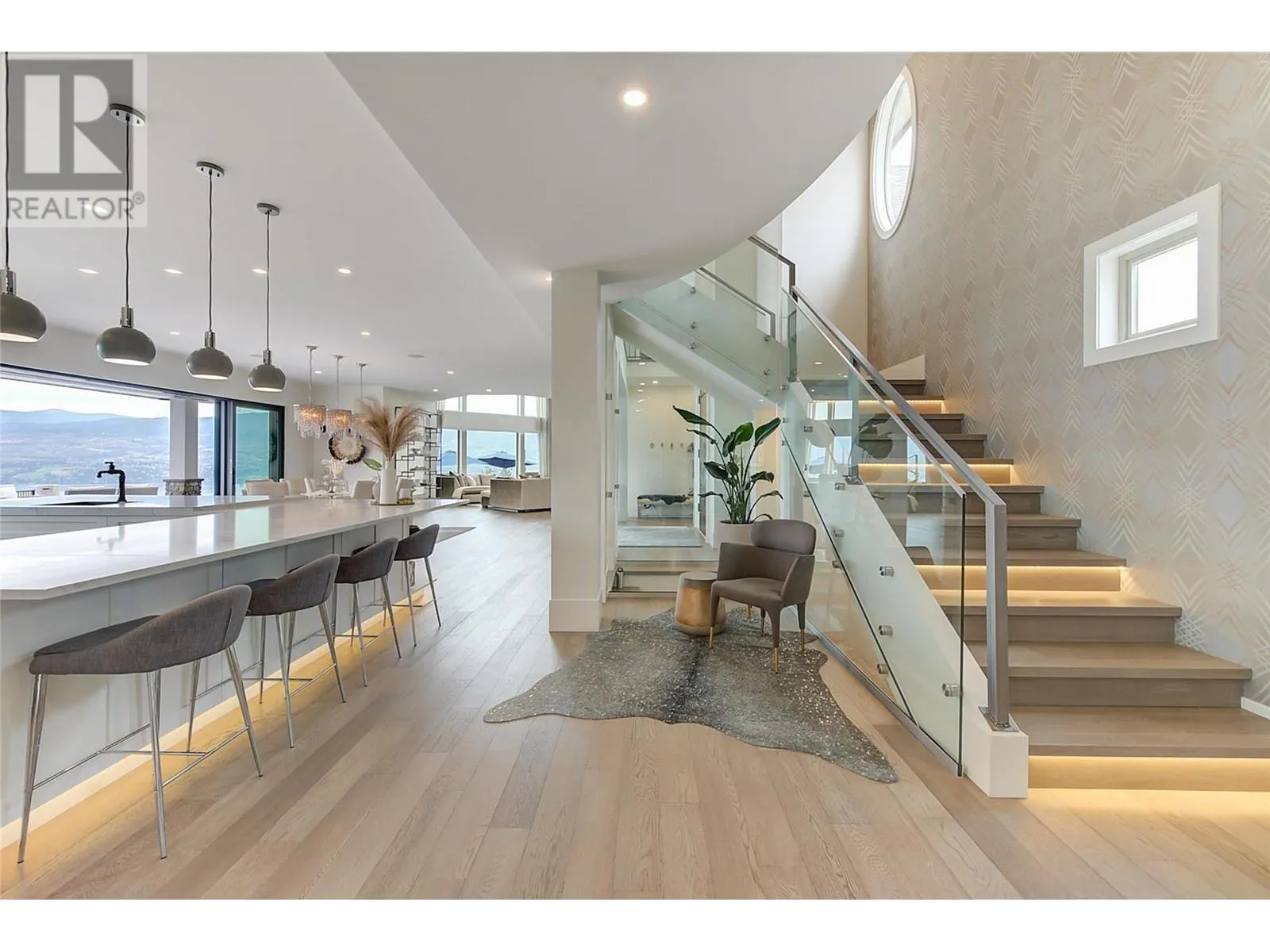 Truly beyond compare! Gorgeous custom home in the desirable private gated neighborhood of Vineyard Estates. From this residence you will enjoy remarkable panoramic views of Okanagan Lake, rolling hills, mountains, & vineyards, including the bell tower at Mission Hill. The outdoor living area is breathtaking with sweeping views, a pool, spacious areas for lounging & an outdoor kitchen is the ideal set up for dining, lounging, and playing outside all summer long. Inside no detail has been spared. The entire home features exceptional customizations creating the perfect backdrop for living & entertaining. Main level is designed to ensure all living spaces take full advantage of the view. From the great room enjoy soaring ceilings, & expansive windows. Flow seamlessly from the dining area to the gourmet kitchen. Prep, & host from the kitchen enjoying access to the outdoor oasis. Kitchen has been customized with a unique L-shaped entertainment-sized island and professional appliances. Unwind in the family room with a luxurious wet bar, tiled fireplace, and room for pool table. Bedroom on the main floor could be used as a home office. The primary retreat is located on the main level & features an opulent en suite & walkâin closet. The upper level offers two additional bedrooms with en suites, a loft flex space & a huge balcony overlooking the lake. Room for all your toys in the 5-car garage. Excellent location minutes to world-class wineries, trail networks & Okanagan Lake. (id:27476)