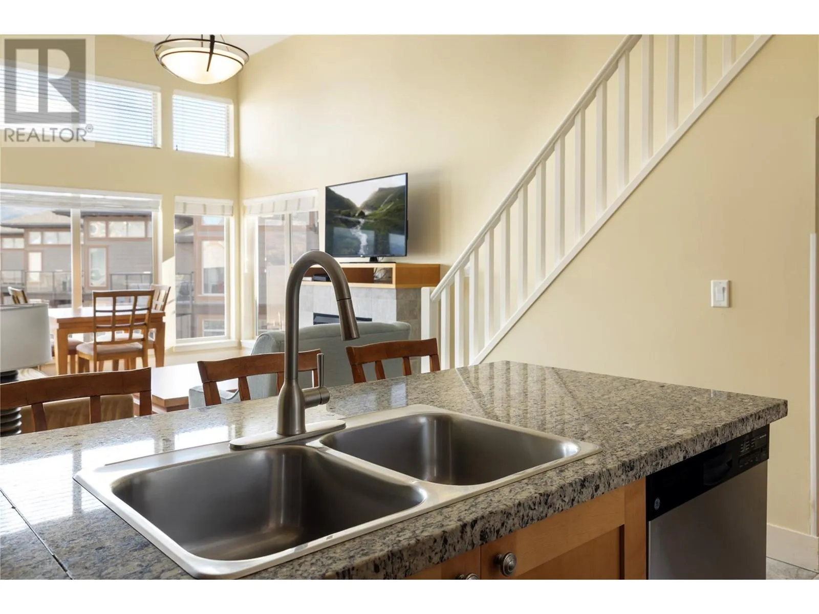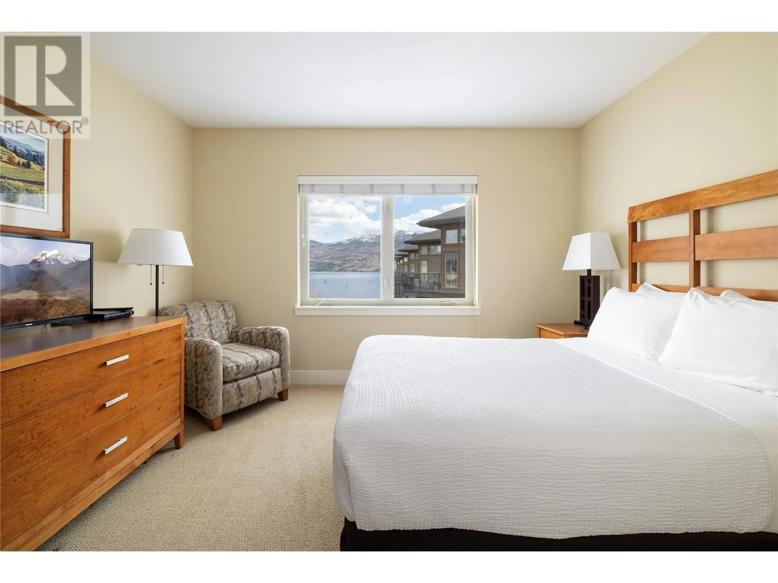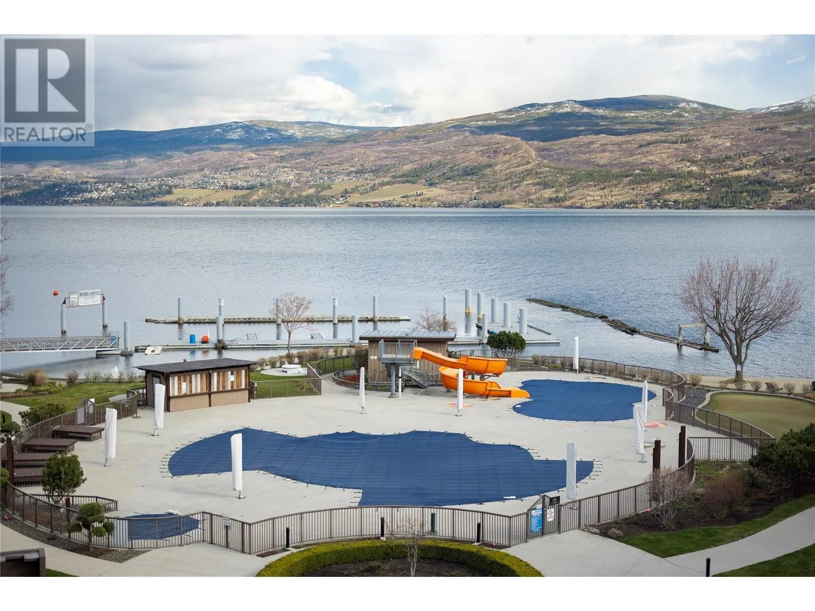 Spectacular Lakefront Living at the Cove Lakeside Resort (with vaulted ceilings and a Loft with a separate lock-off 2nd bedroom ). 1068 SF of indulgent luxury including 2 bedrooms each with an en-suite as well as one additional loft room for maximum flexibility (could be used as an office, bedroom or kids playroom). This top floor unit has vaulted ceilings with exceptional light and over 100 SF of outdoor living space on private unobstructed lake-view deck. A very rare floor plan at the Cove with vaulted ceilings, loft as well as a second lock off bedroom and a half-bath for maximum flexibility, it does not get better than this and units such as this come up rarely at the Cove. Fully furnished and ready for you to enjoy as your own private oasis or allow the Cove Resort to manage all of your bookings for substantial care free rental income. The Cove Lakeside Resort amenities include two outdoor pools (one with a waterslide), and two hot tubs. A 600 foot beach front that highlights almost 6.5 acres of manicured grounds in addition to the private gym, theatre, owners lounge, putting green, tennis courts and on-site dining. (id:27476)