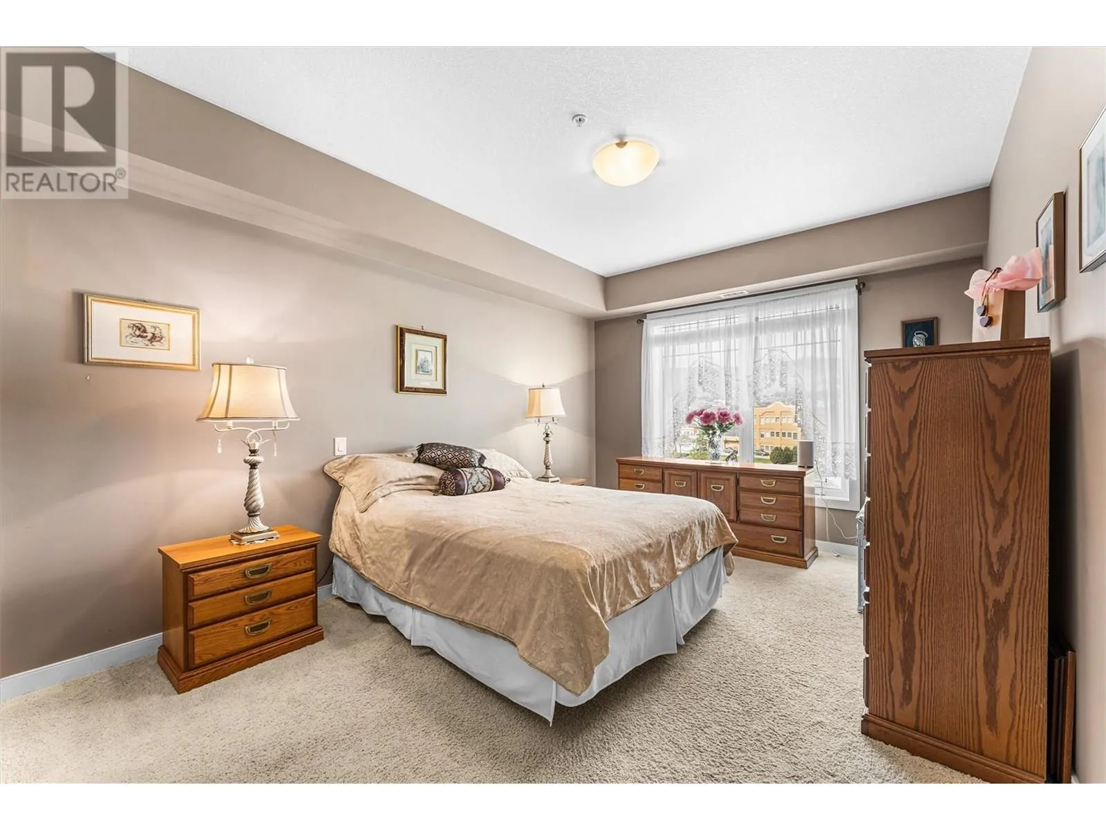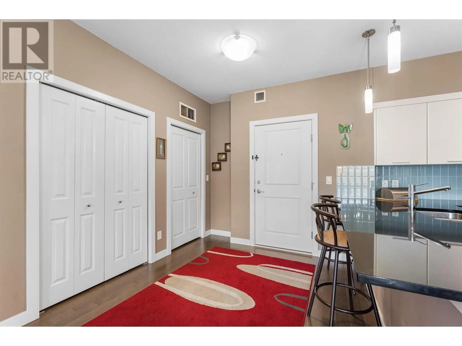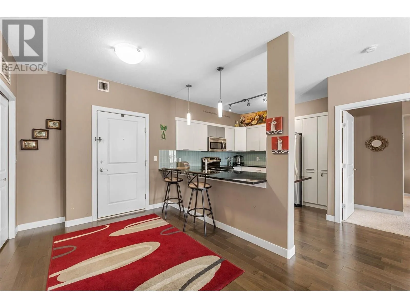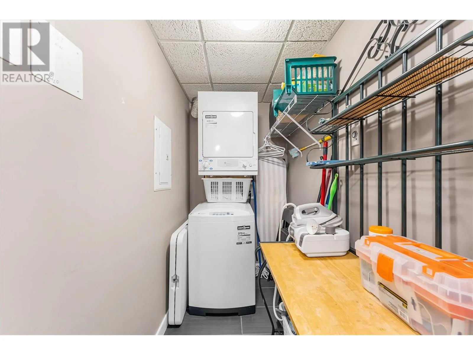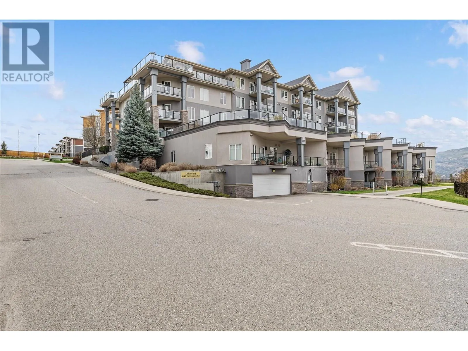 Immaculate and functional 2-bedroom, 2-bath floor plan just steps from the lake, shops, restaurants, and Two Eagles Golf Course. High ceilings, engineered hardwood floors, granite countertops, and stainless-steel appliances lend a polished finish throughout. The open-concept layout features a kitchen with peninsula seating and an electric fireplace in the living room. A covered patio with gas BBQ hookup, mountain and valley views! Bedrooms are thoughtfully separated for privacy. The primary bedroom includes a walk-in closet and 3-piece ensuite. A large in-suite laundry/storage room. This suite also features 2 PARKING STALLS & 2 LARGE PRIVATE STORAGE LOCKERS! Each storage room located in front of each parking stall for quick and easy access! This building features central A/C & heating included in monthly strata fee! Well-located in a quiet central West Kelowna neighborhood! 2 pets permitted, no vicious breeds. (id:27476)