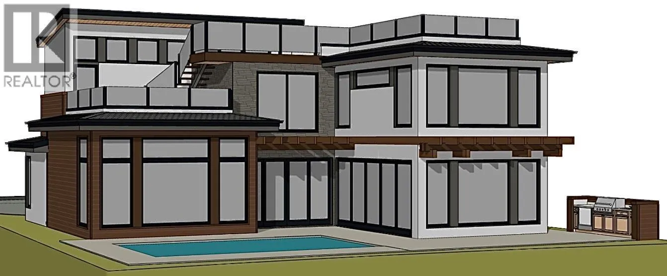 Stunning Luxury Lakeview Home with a gorgeous rooftop patio & elevator! Superior finishings, and pool. The interior, designed by Hannah Katey Designs Inc., showcases an organic modern transitional style that combines neutral and dark tones for a timeless design. The open and airy space is fresh and clean, featuring unique walls and stained wood beams at the ceiling. Floating stairs with a glass railing enhance the open flow of the home, while cozy components provide a comfortable at-home feeling. Quartz and porcelain tiles in the home enhance the overall ambiance with their sophisticated geometric designs. The millwork features a tasteful blend of styles with its combination of natural & painted elements. Large windows allow natural light to fill the space, creating a bright and airy environment. The entire design was meticulously planned from start to finish, ensuring a cohesive aesthetic that offers a timeless look, inviting atmosphere, and comfortable living space. Located just minutes away from renowned wineries like Mission Hill and Quails Gate, popular beaches, diverse hiking trails, schools, and shops! Additionally, there's an opportunity to purchase the lot. Prospective buyers can either work with the current builder to complete the build or bring their own builder to take on the project - MLS# 10337584 Note: Images are of similar properties or are renderings. (id:27476)